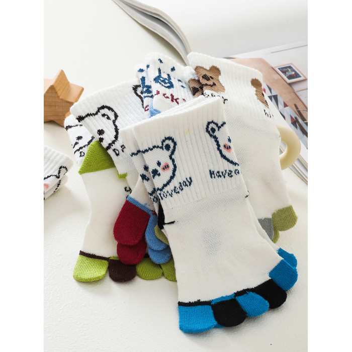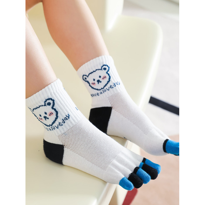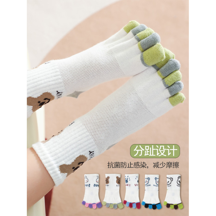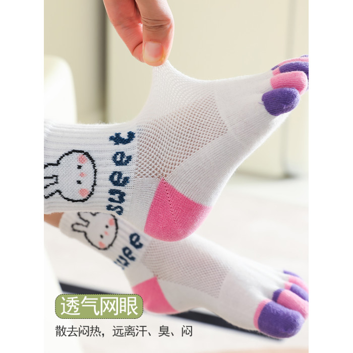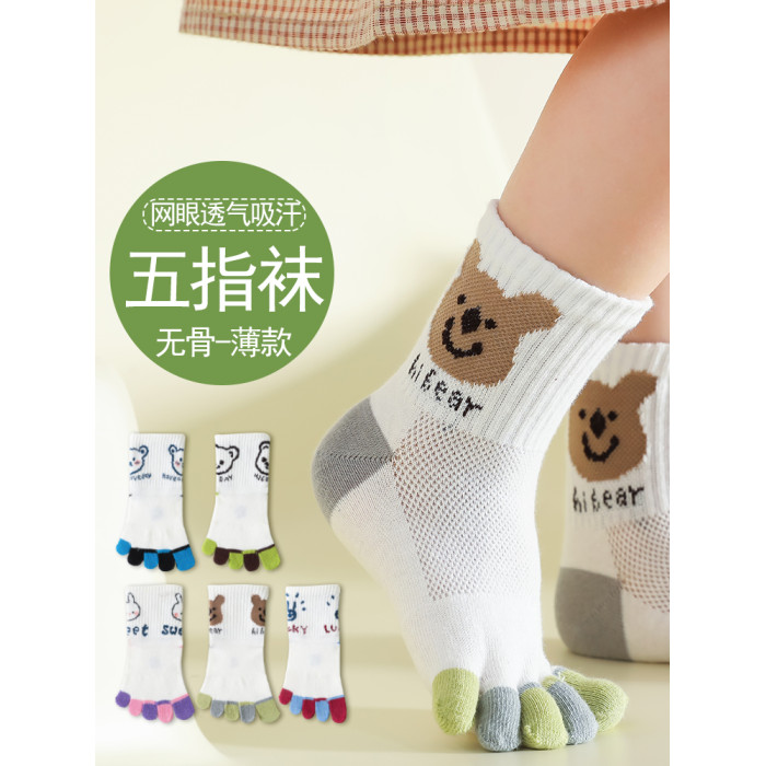 兒童五指襪夏季薄款中筒襪網眼防臭純棉腳趾襪男童女童卡通分趾襪