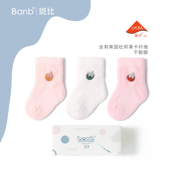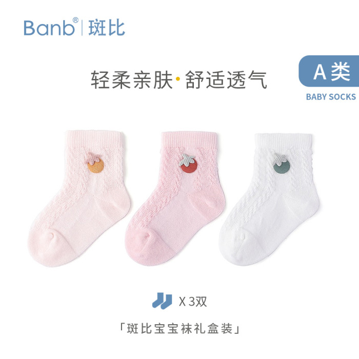 斑比嬰兒襪子春秋薄款棉襪新初生兒棉襪春夏季網眼無骨女寶寶襪子