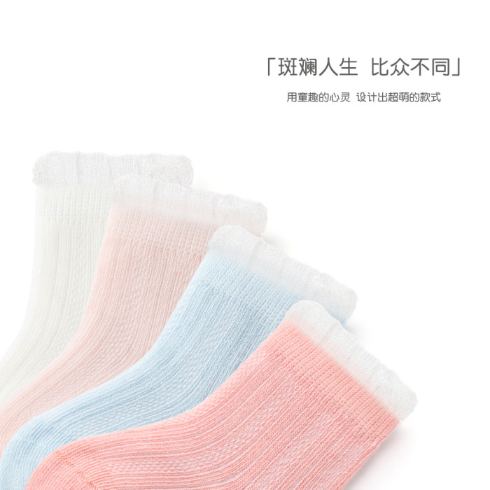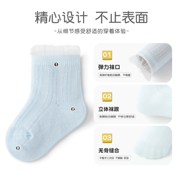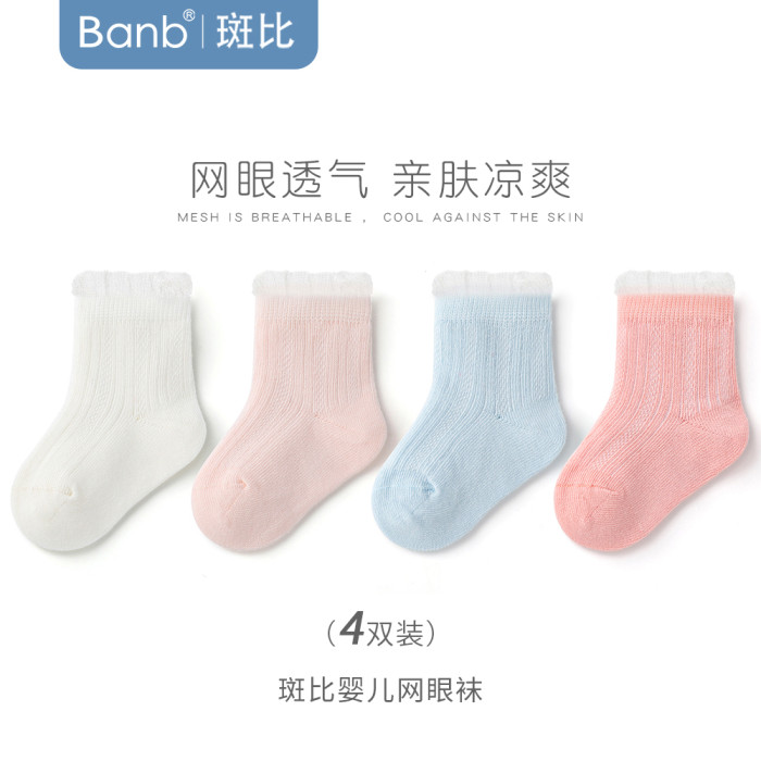 斑比嬰兒襪子夏季網眼透氣棉襪新初生兒短襪春秋薄款可愛女寶寶襪