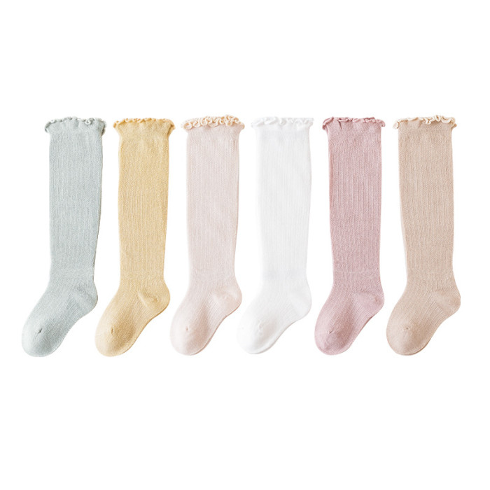 夏季網眼薄款嬰兒長筒襪新生兒無骨松口寶寶襪a類木耳邊棉襪