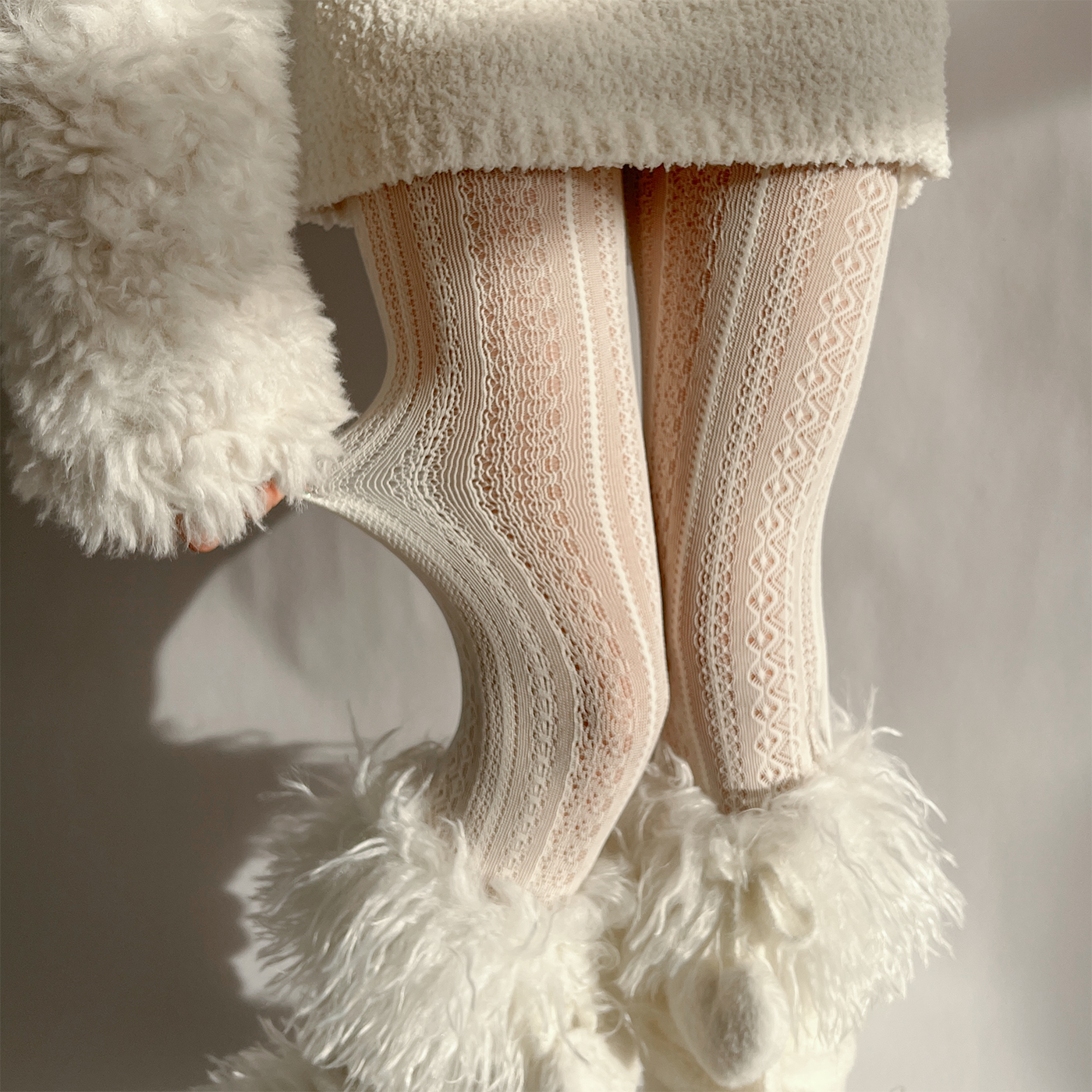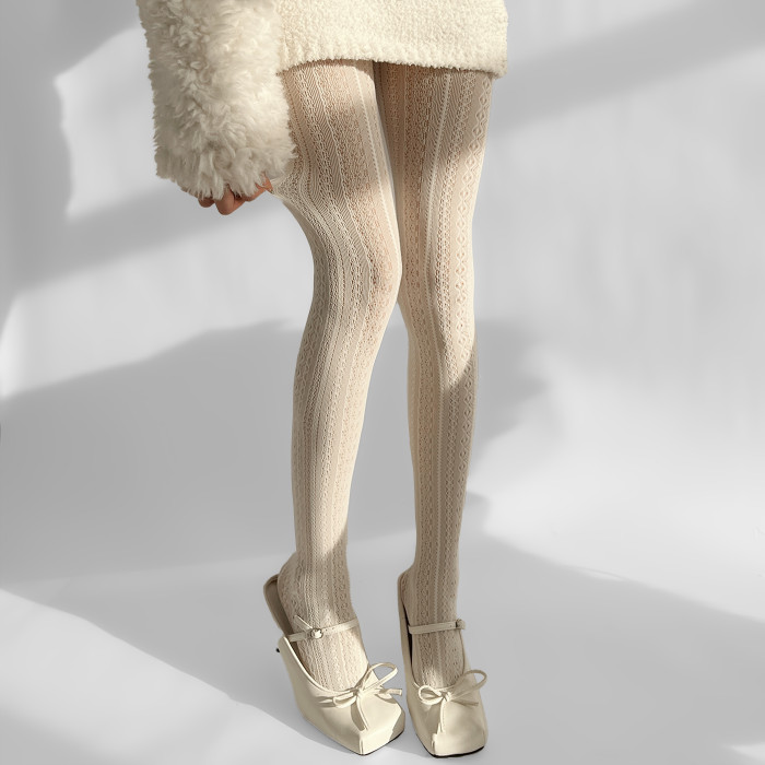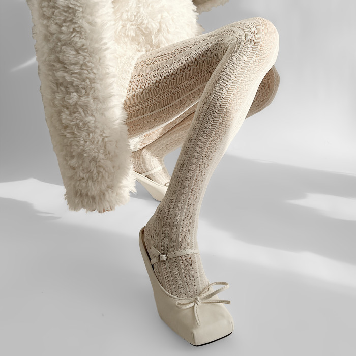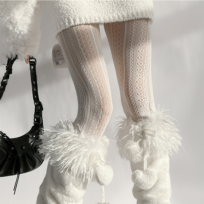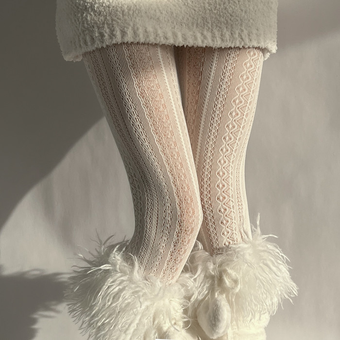 夜間教習室白色連褲襪復古竪條紋蕾絲白絲襪鏤空lolita日系打底褲