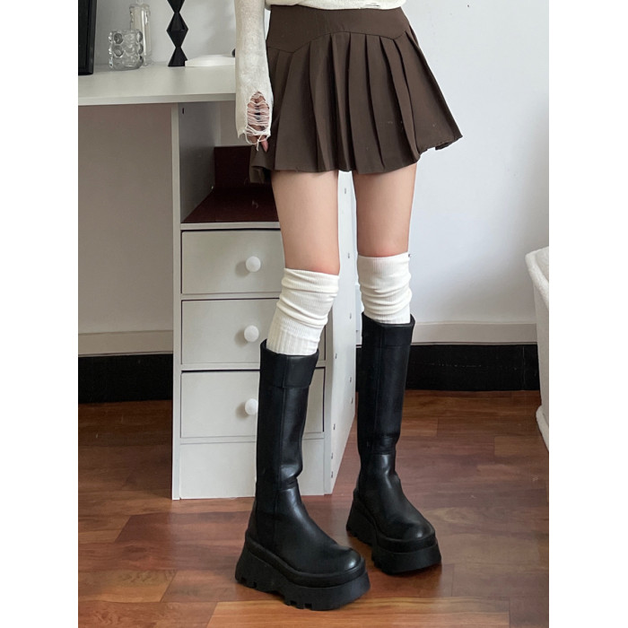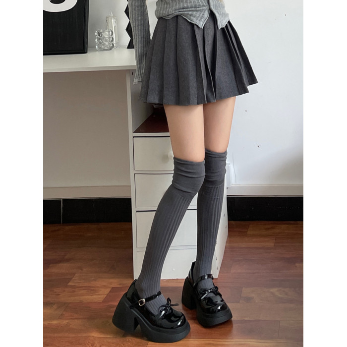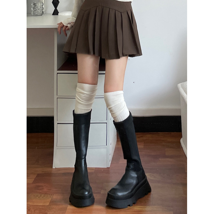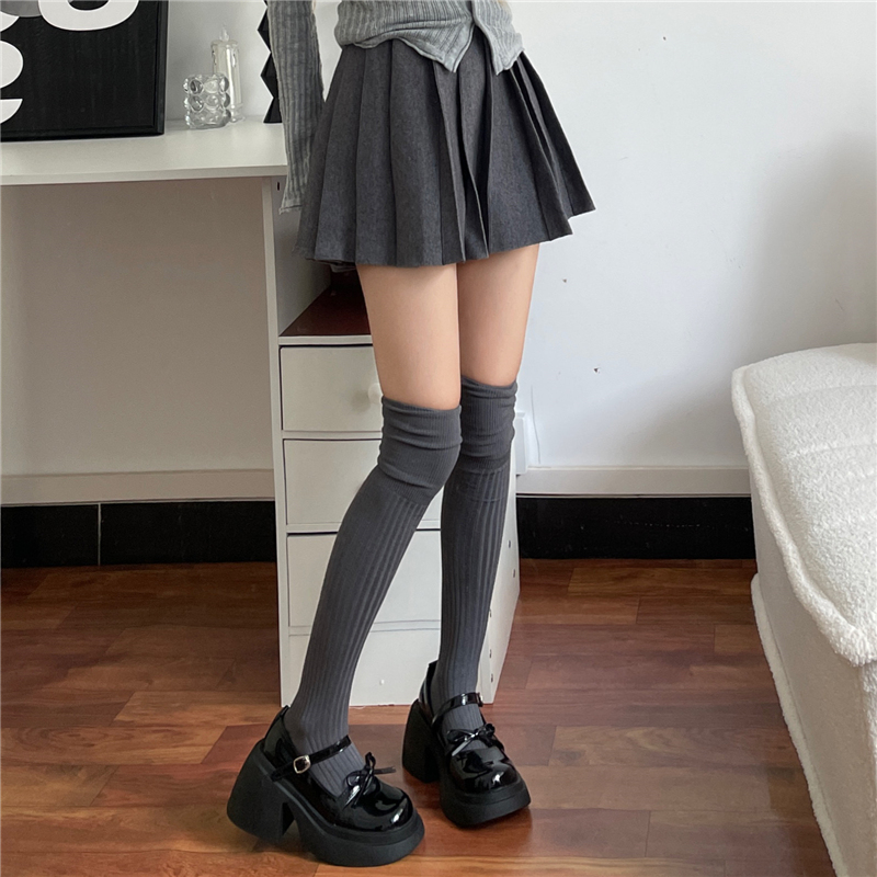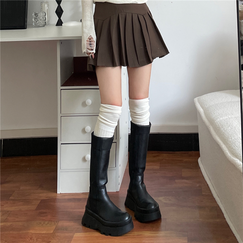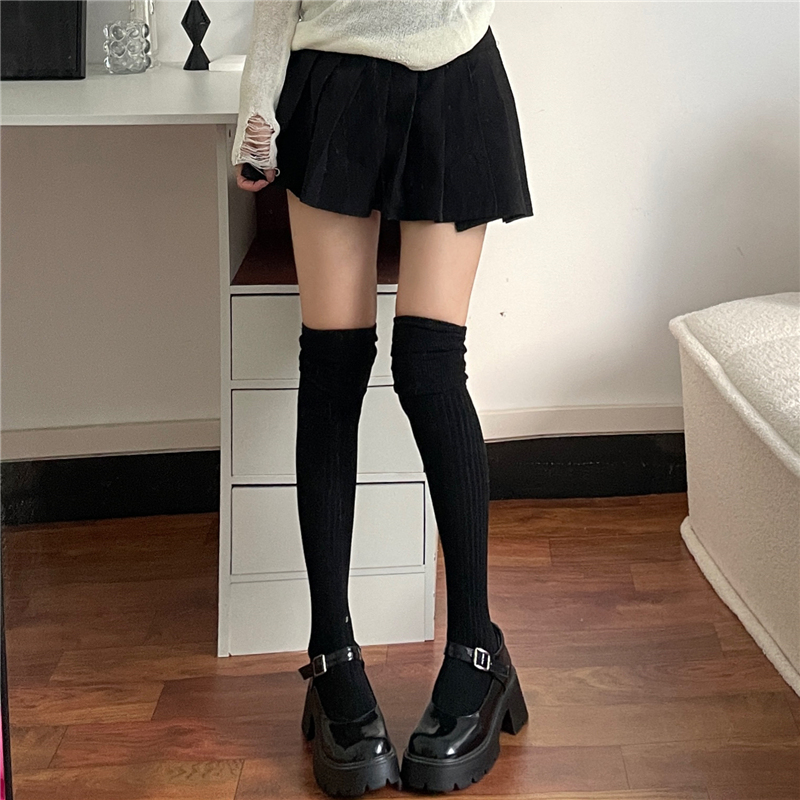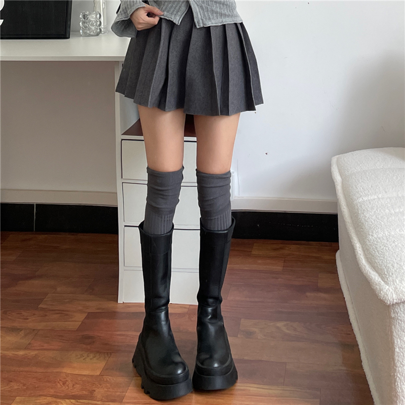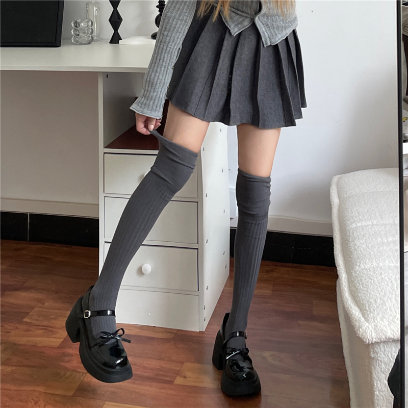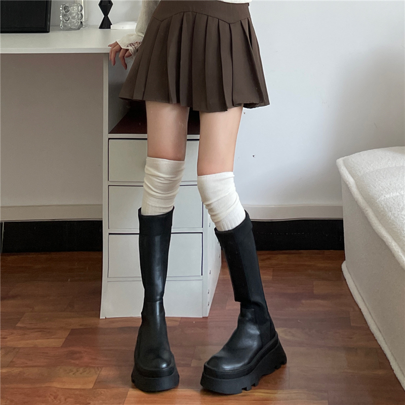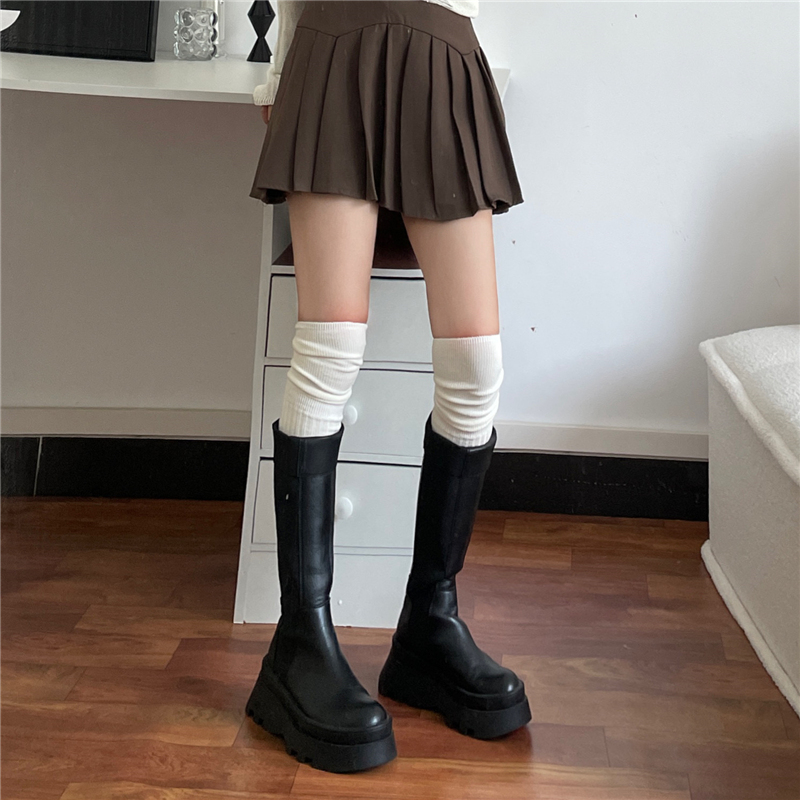 吾等是貓 拼接過膝長筒襪靴襪白色大腿襪網紅ins風棉質雙針堆堆襪