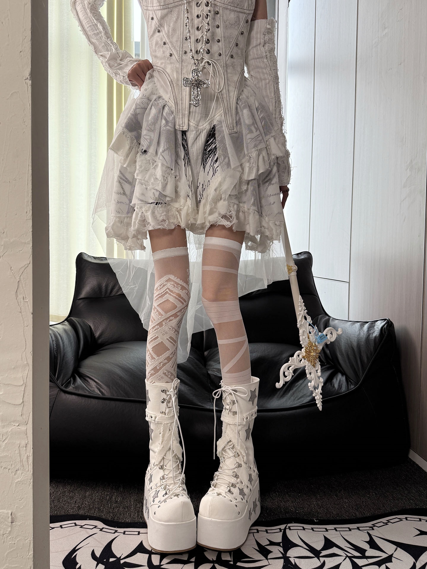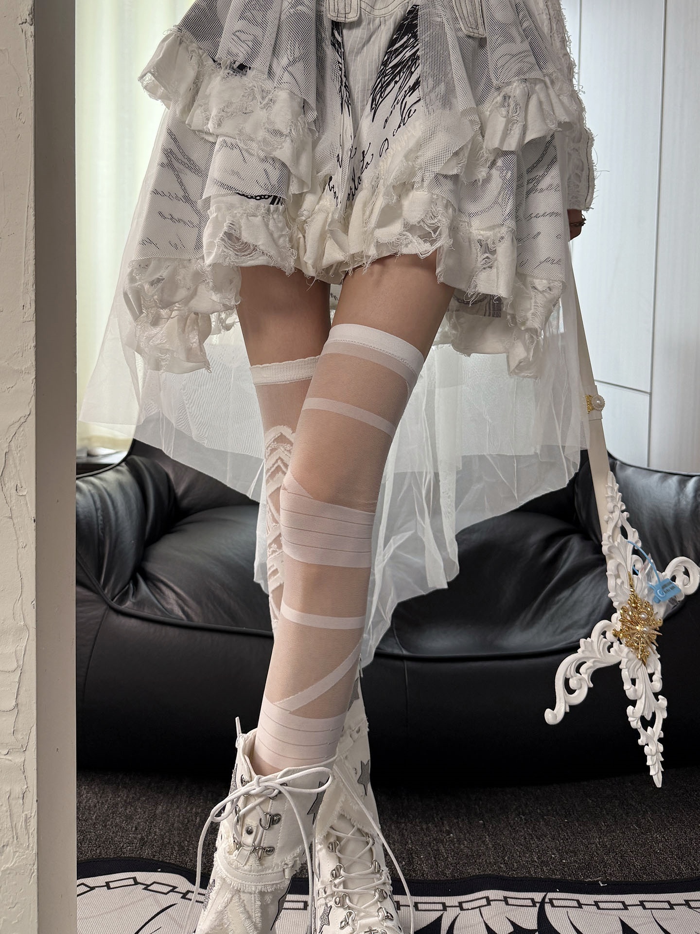 "現實逃避所"白繃帶玻璃絲AB款過膝襪Lolita亞比風y2k白哥特DF