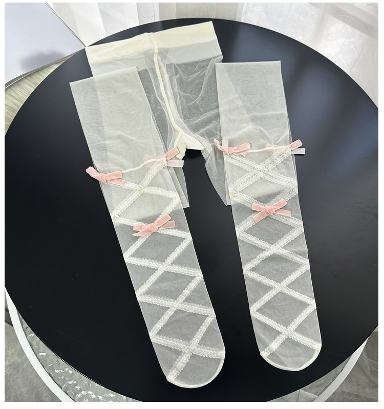 芭蕾少女風蝴蝶結珍珠白絲襪打底襪子日系JK洛麗塔純欲白色連褲襪