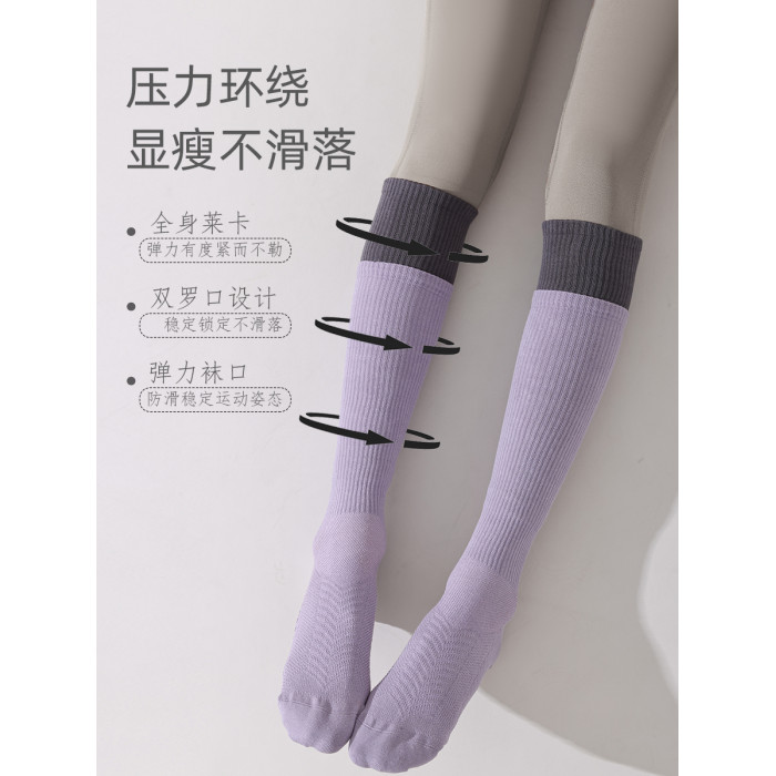 瑜珈襪子女無骨壓力騎行長筒小腿襪跳操健身普拉提專業防滑運動襪