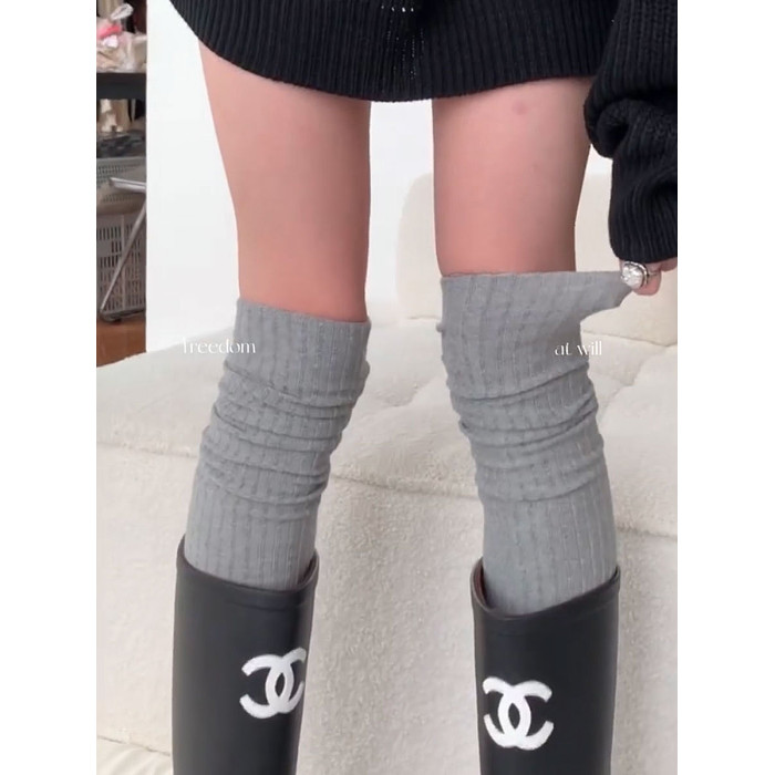 "牢牢鎖住過膝襪!"襪子女長筒純棉秋冬季小腿堆堆靴襪高筒配靴子