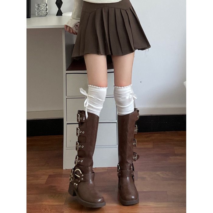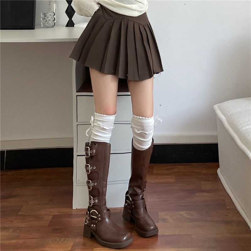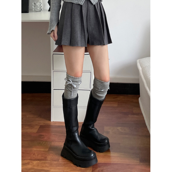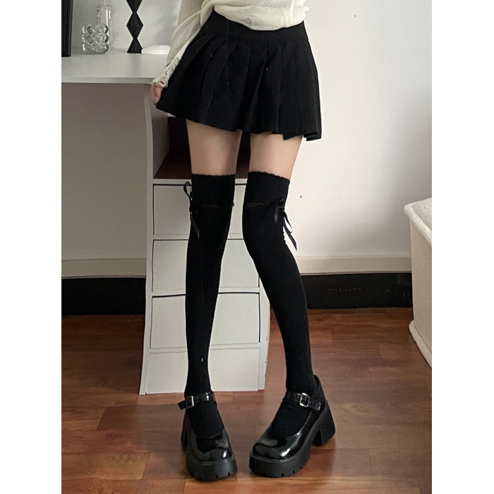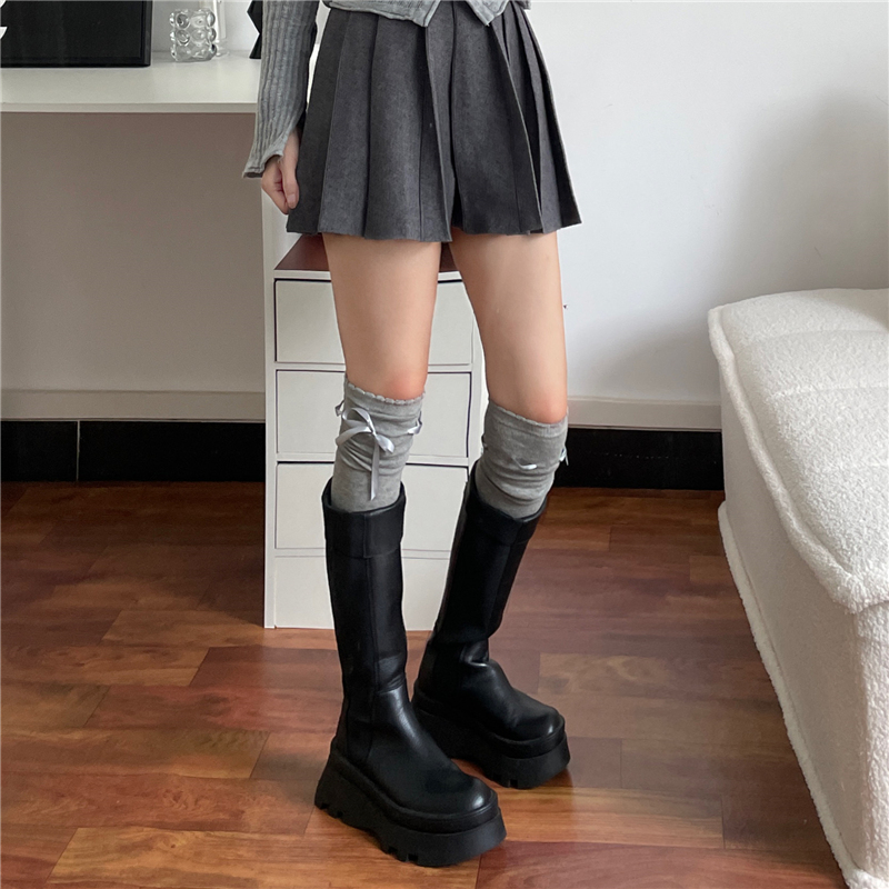 吾等是貓 蝴蝶結絲帶高筒襪綁帶可愛少女風純欲過膝襪棉長筒襪