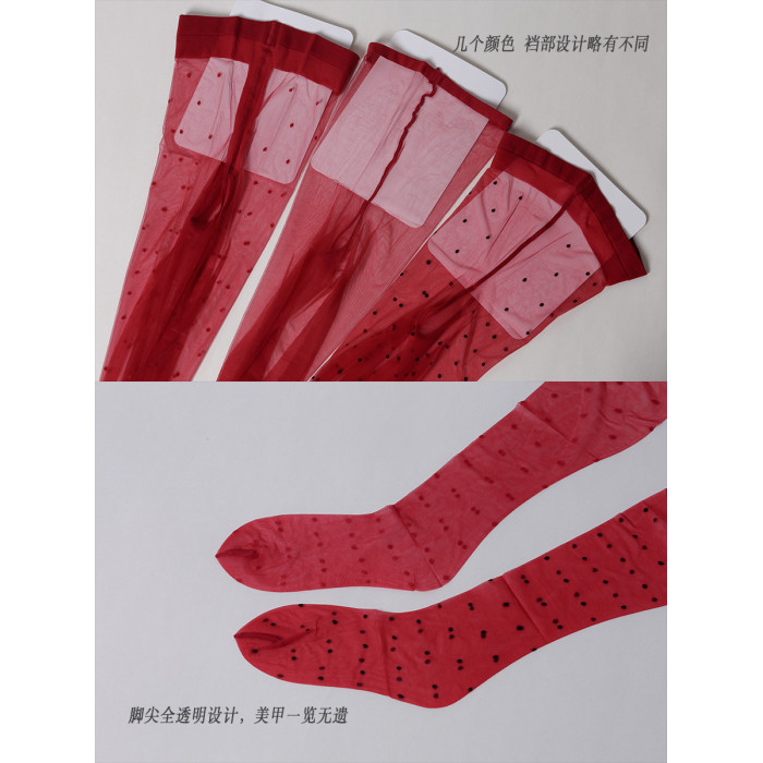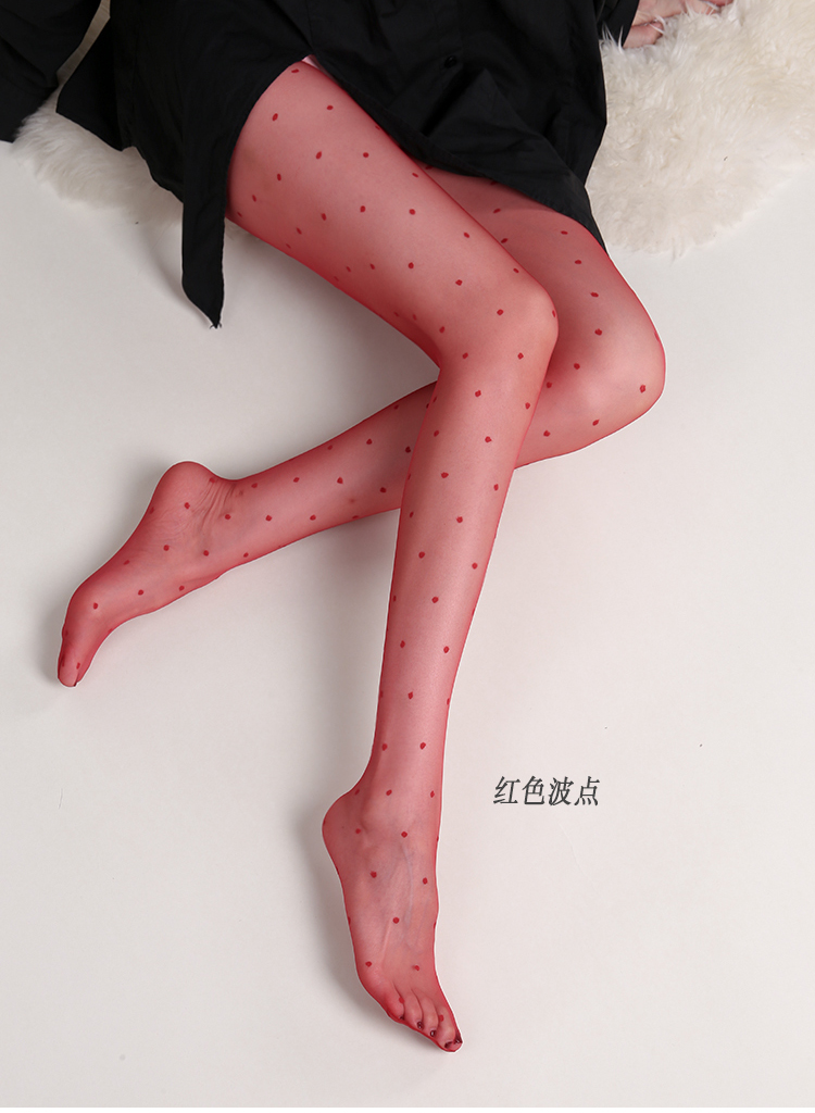 妖怪森林0D黑絲波點絲襪紅色超薄連褲襪高透冪式穿搭圓點性感透明