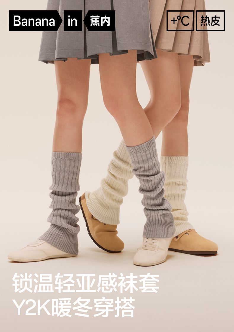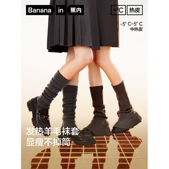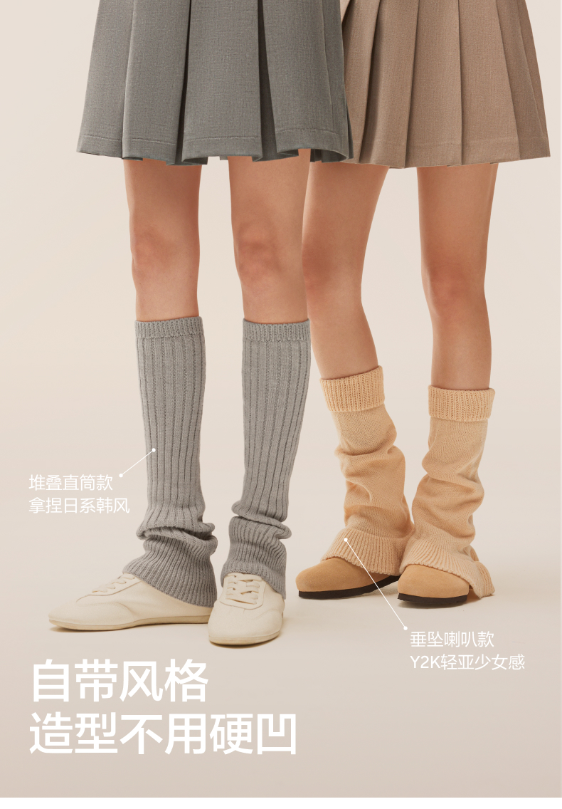 蕉內熱皮502++女士襪套堆堆襪Y2K針織踩腳腿套高筒喇叭襪春夏1雙