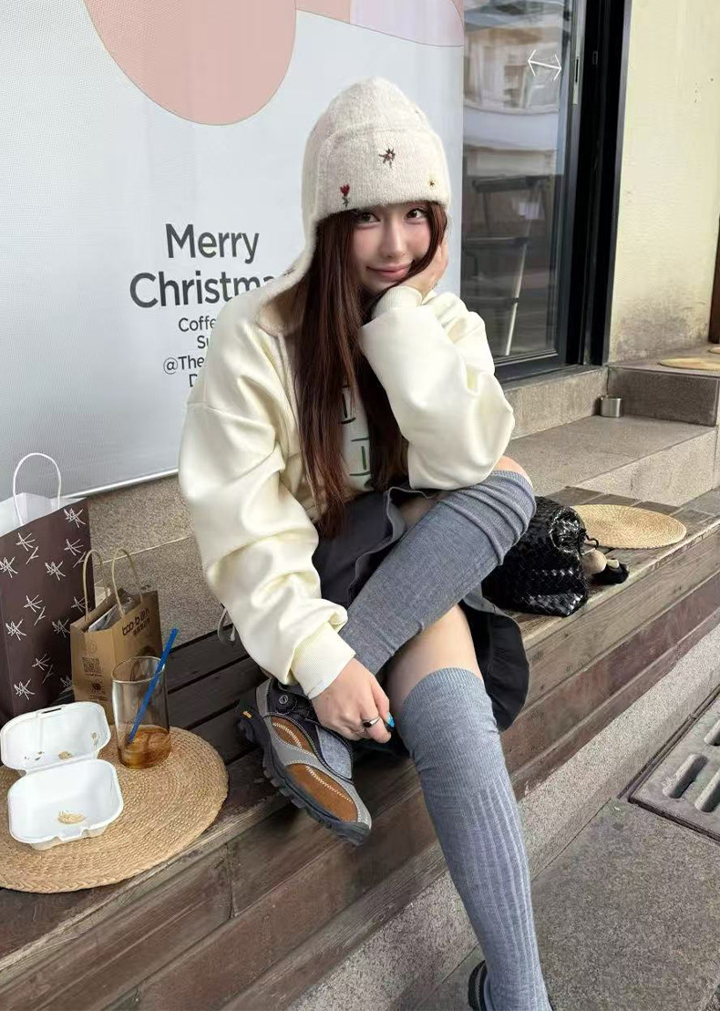 AR美利奴羊毛過膝襪子女秋冬款保暖護膝顯瘦灰色長筒小腿襪miu系