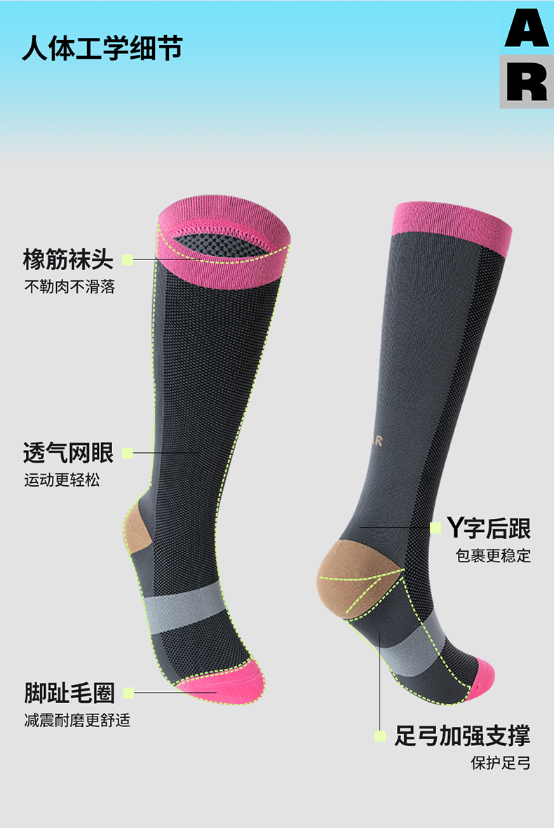 【意大利襪機】AR運動壓力襪登山襪加壓小腿襪壓縮襪白色騎行長襪