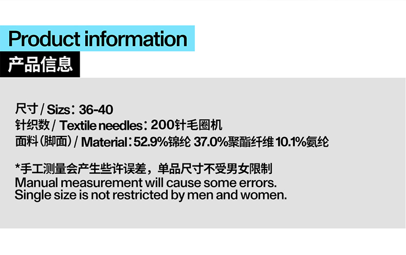 | 面料材質成分 | 聚醯胺纖維(錦綸)52.9% 聚酯纖維37% 聚氨酯彈性纖維(氨綸)10.1% |
