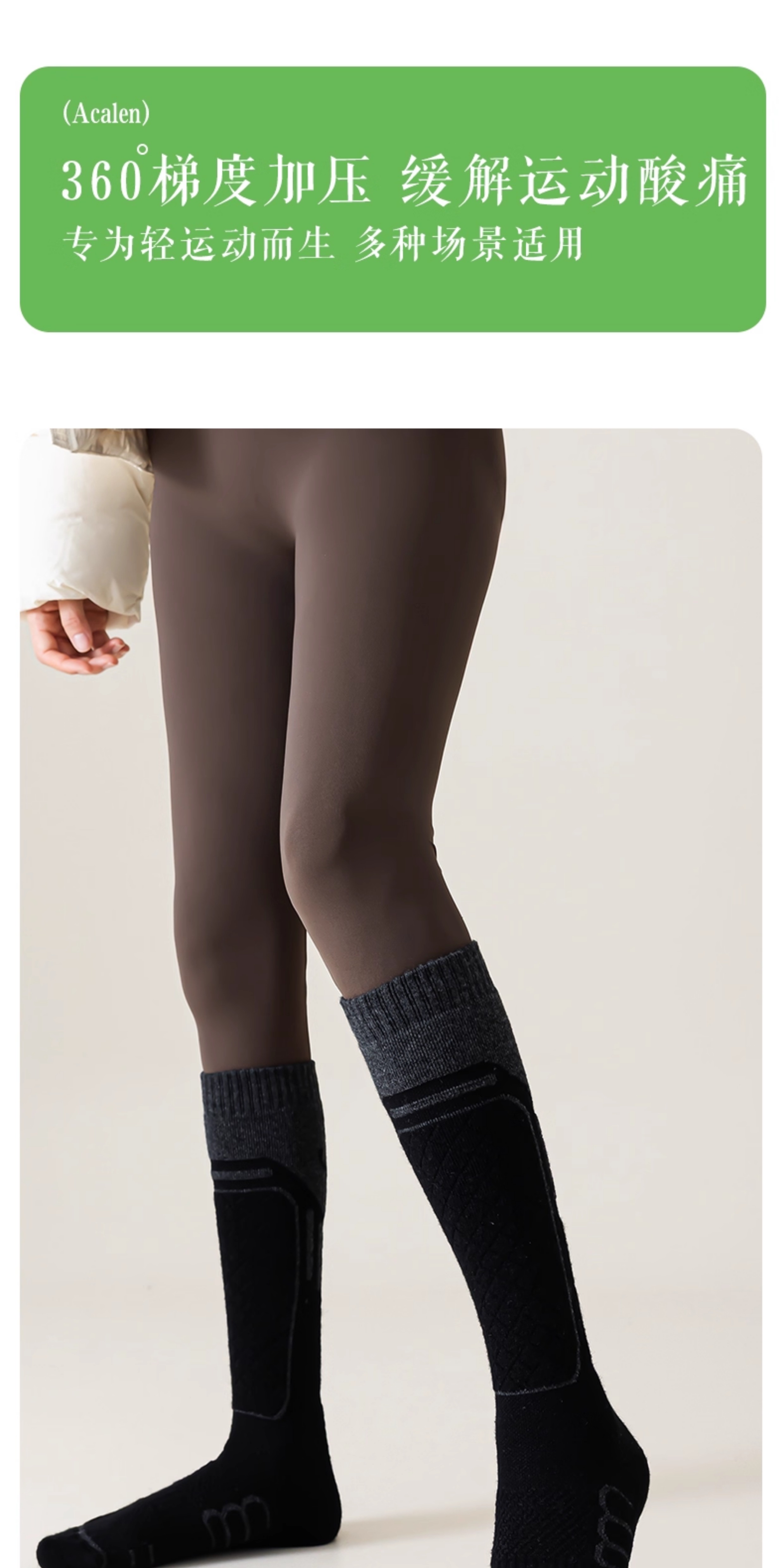 阿卡倫戶外運動長筒襪女秋冬加厚保暖小腿壓力襪專業登山滑雪襪子