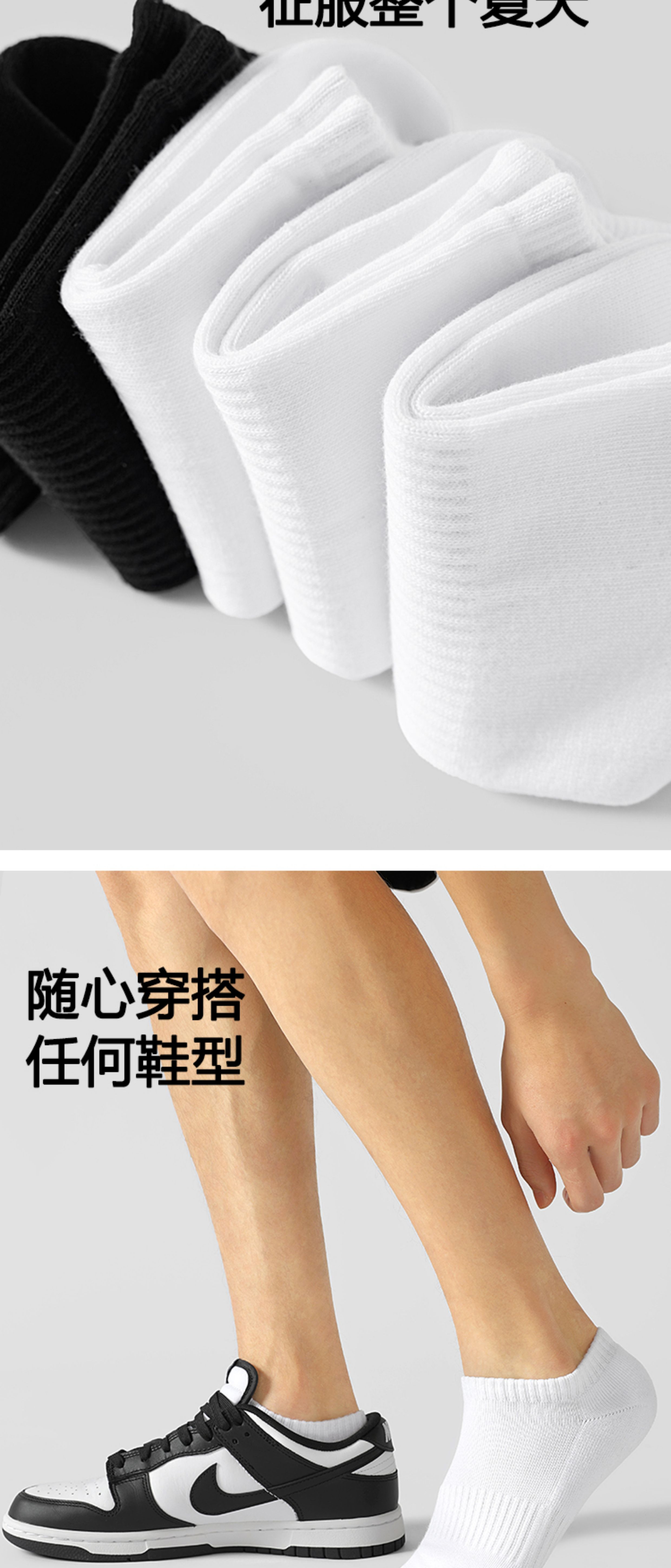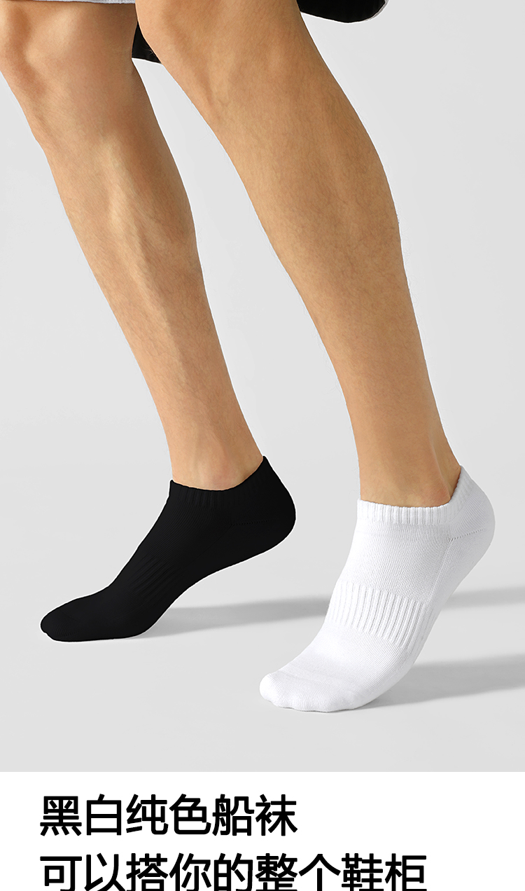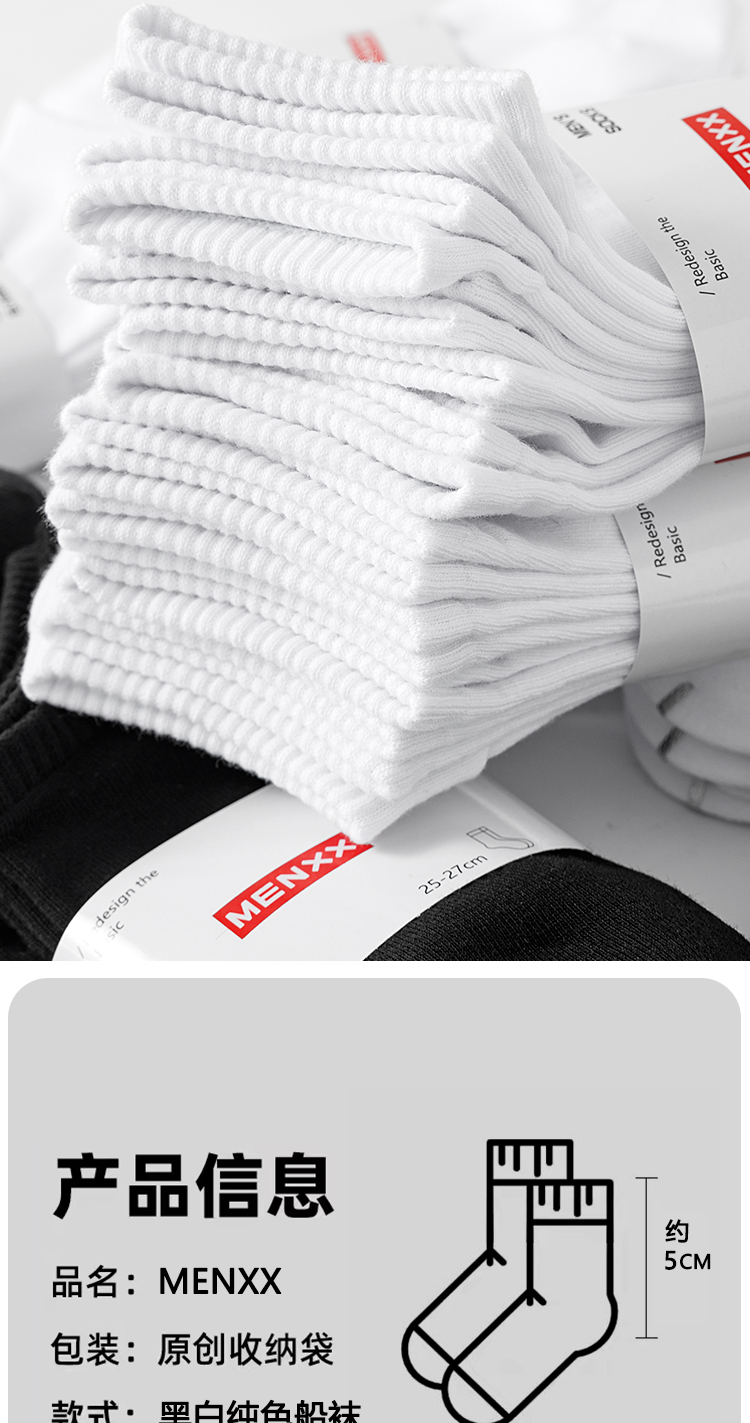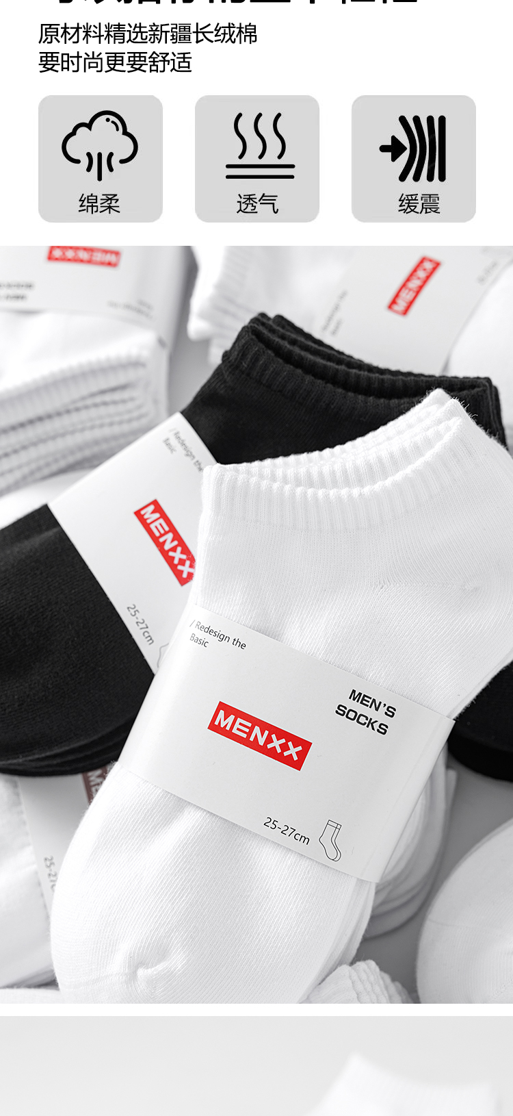 MENXX襪子男純棉船襪黑色秋冬運動防臭吸汗毛巾底白色男生短襪