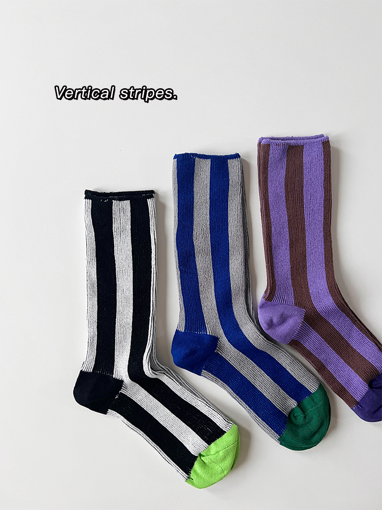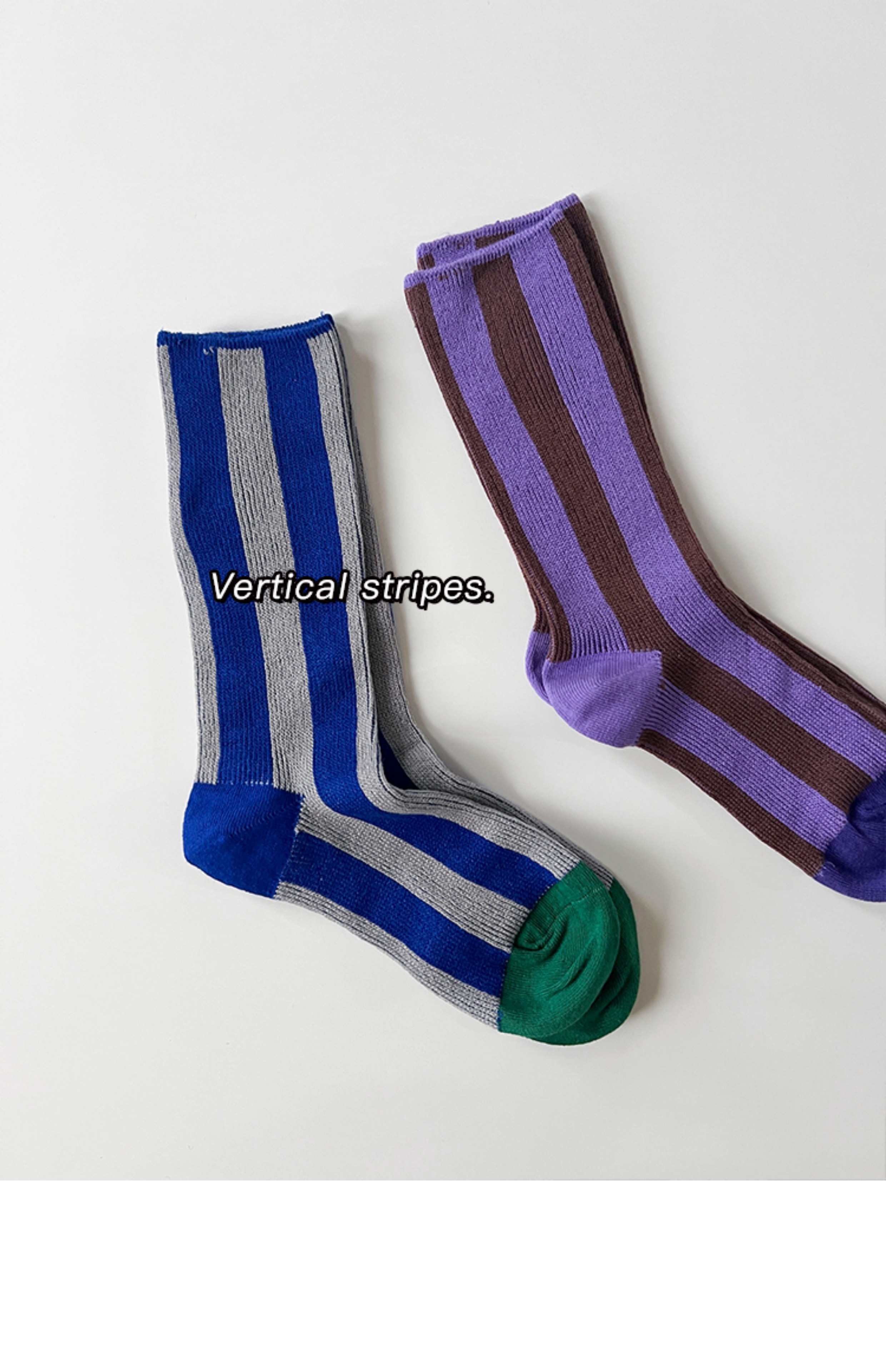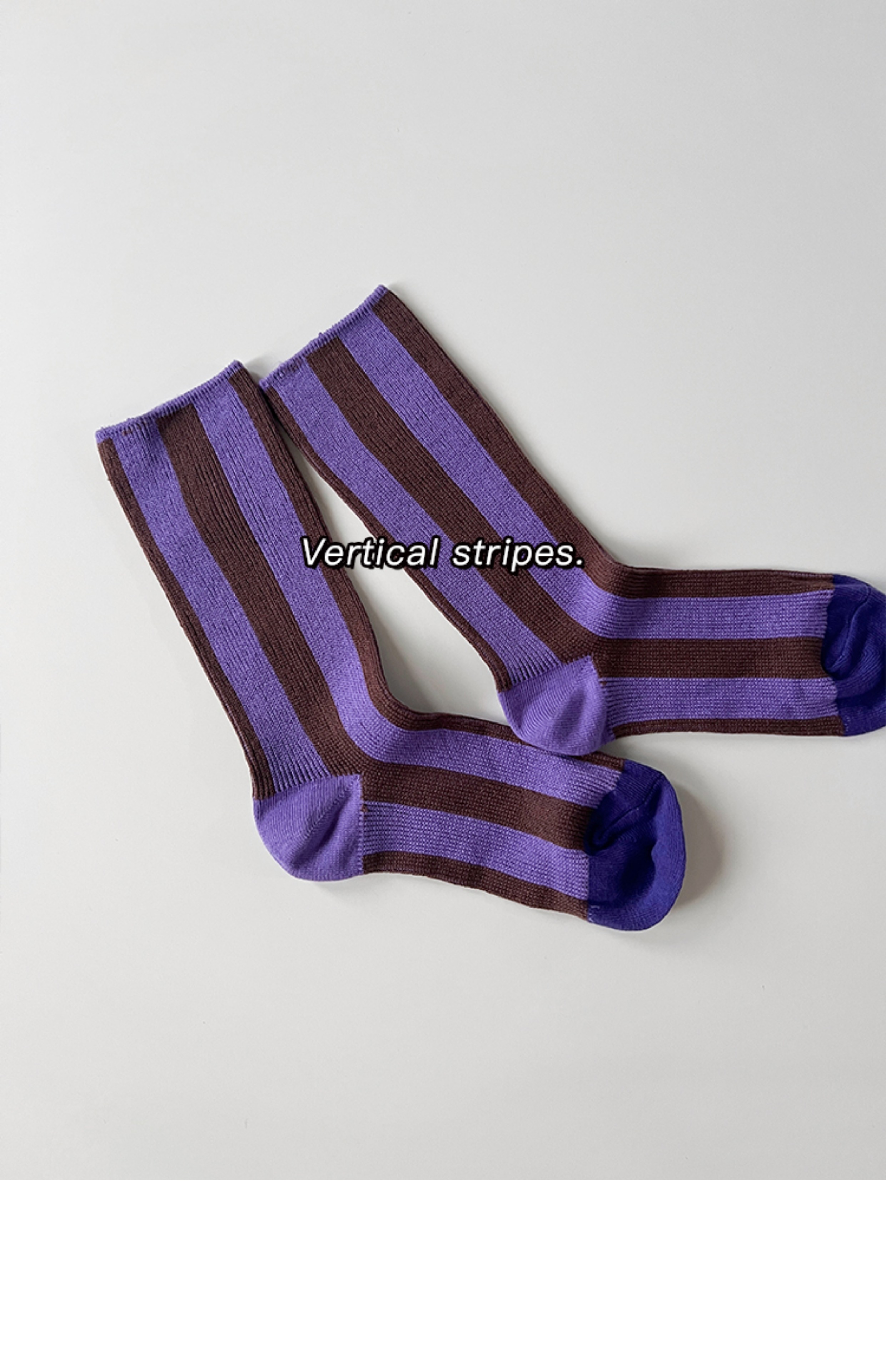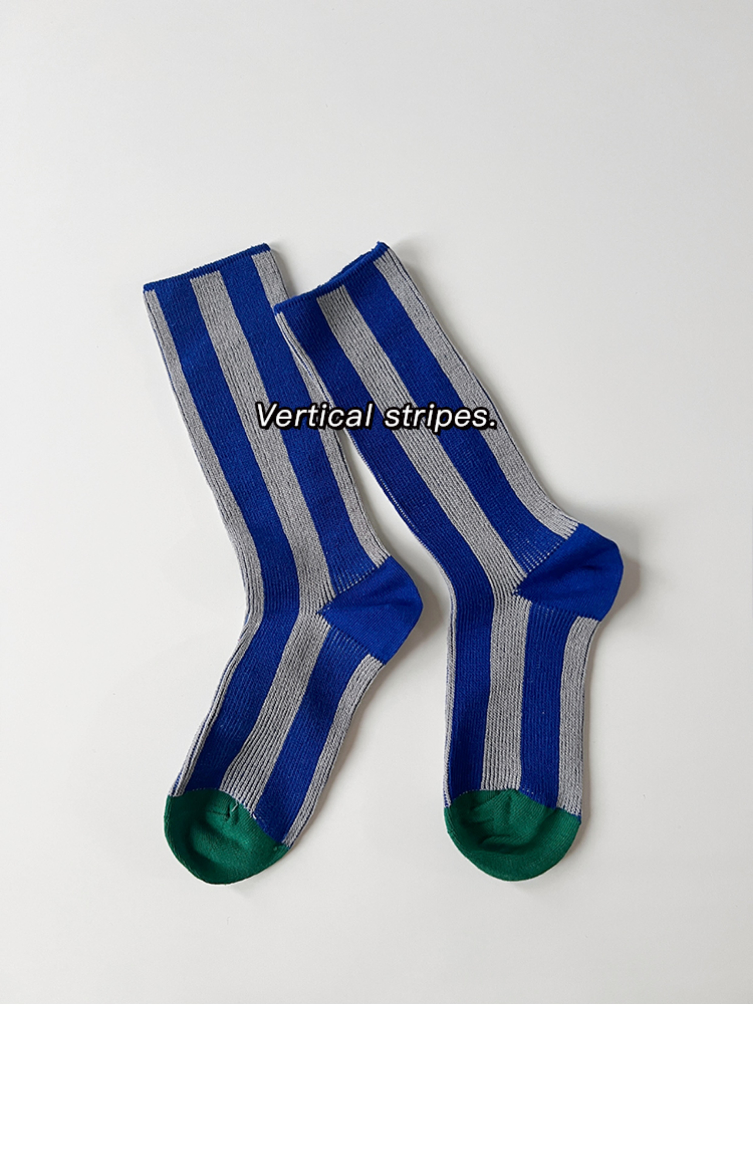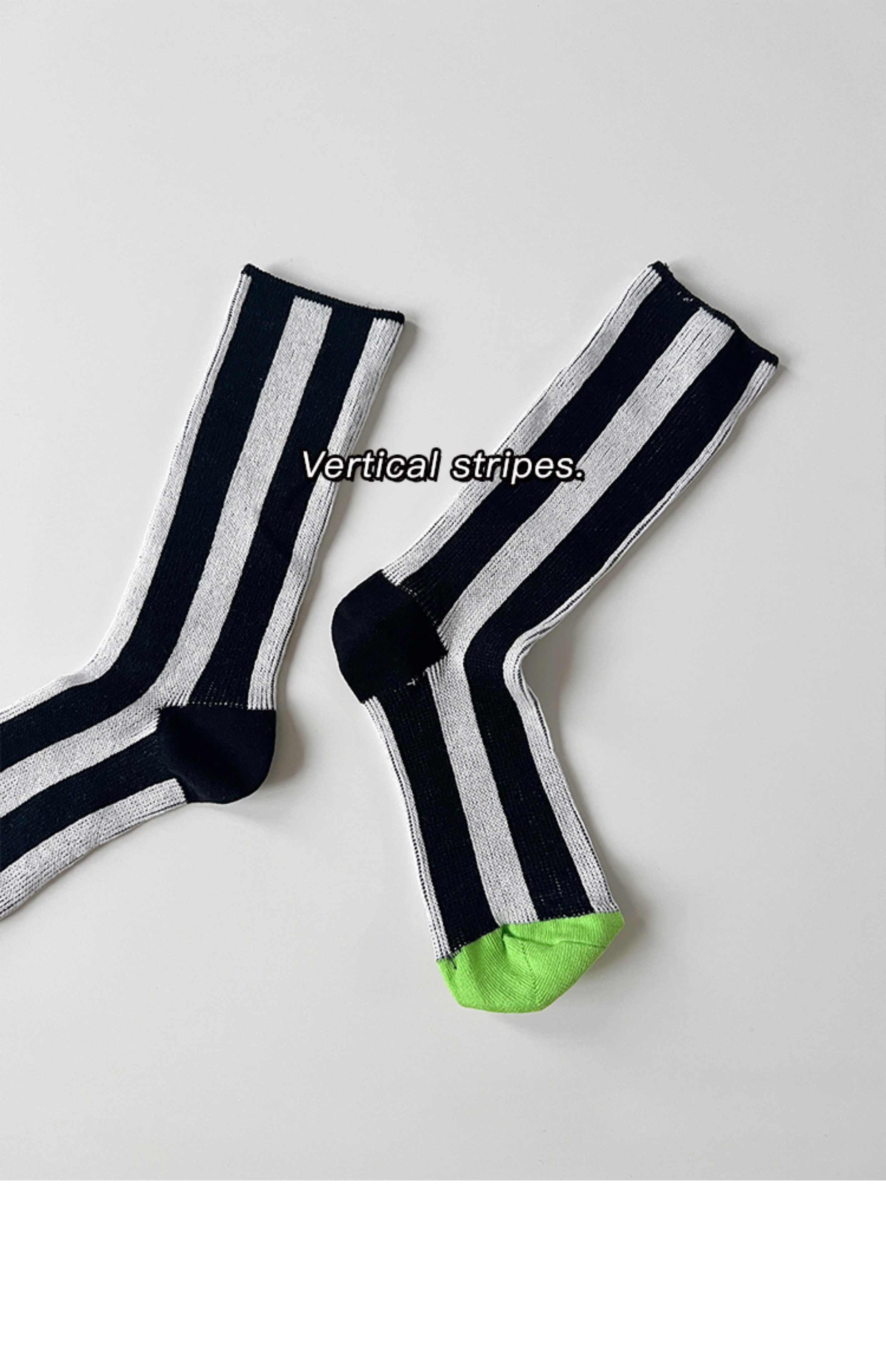 竪條.雙針雙路條紋中筒男女襪子春秋冬季棉吸汗時尚個性網紅四季