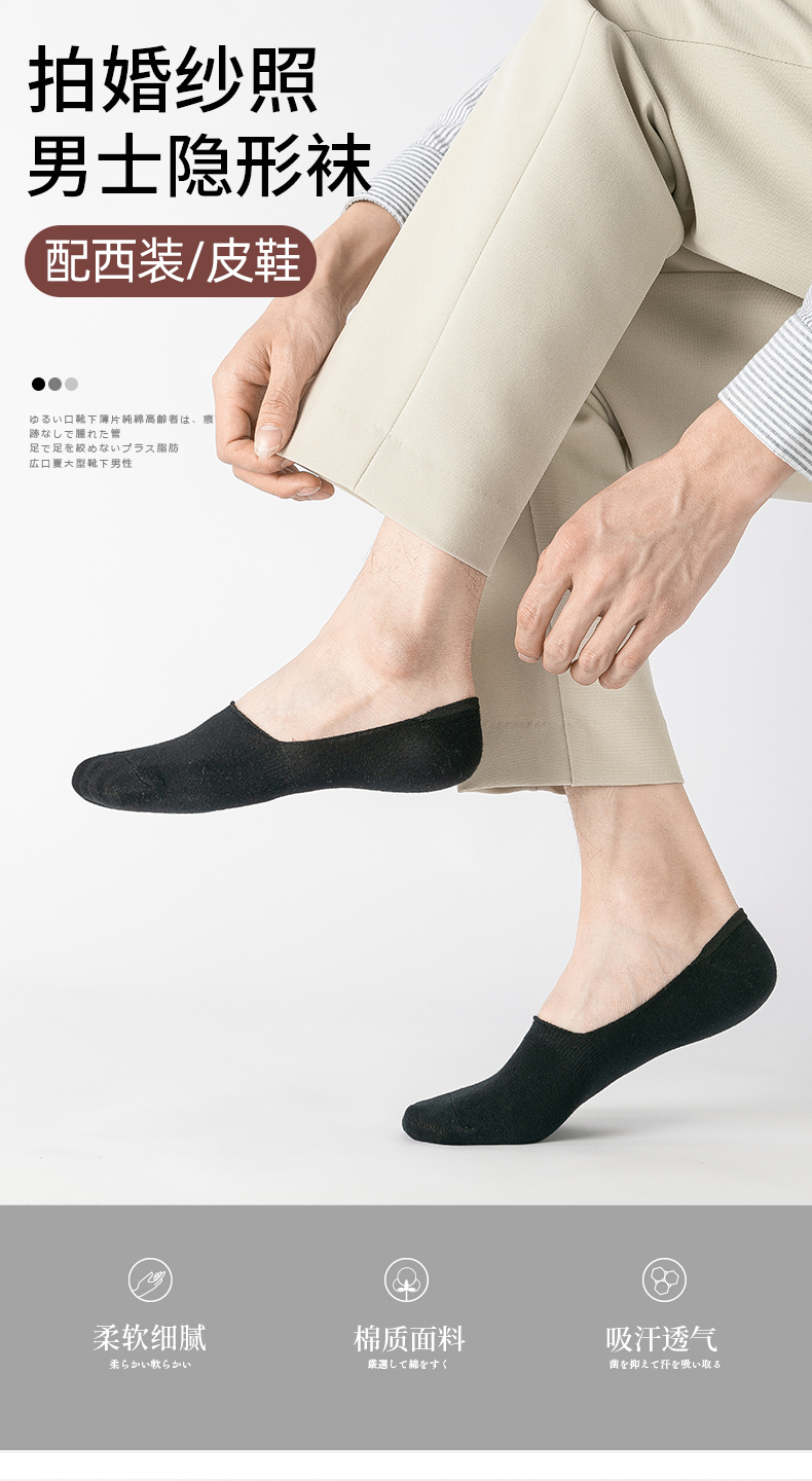 拍婚紗照男士襪子夏款正裝皮鞋船襪純棉防臭西裝黑白色淺口隱形襪