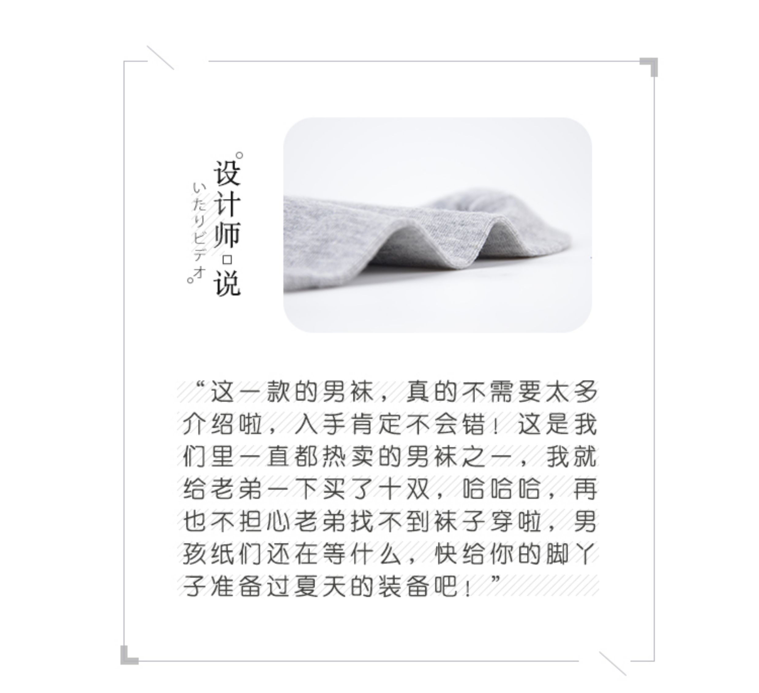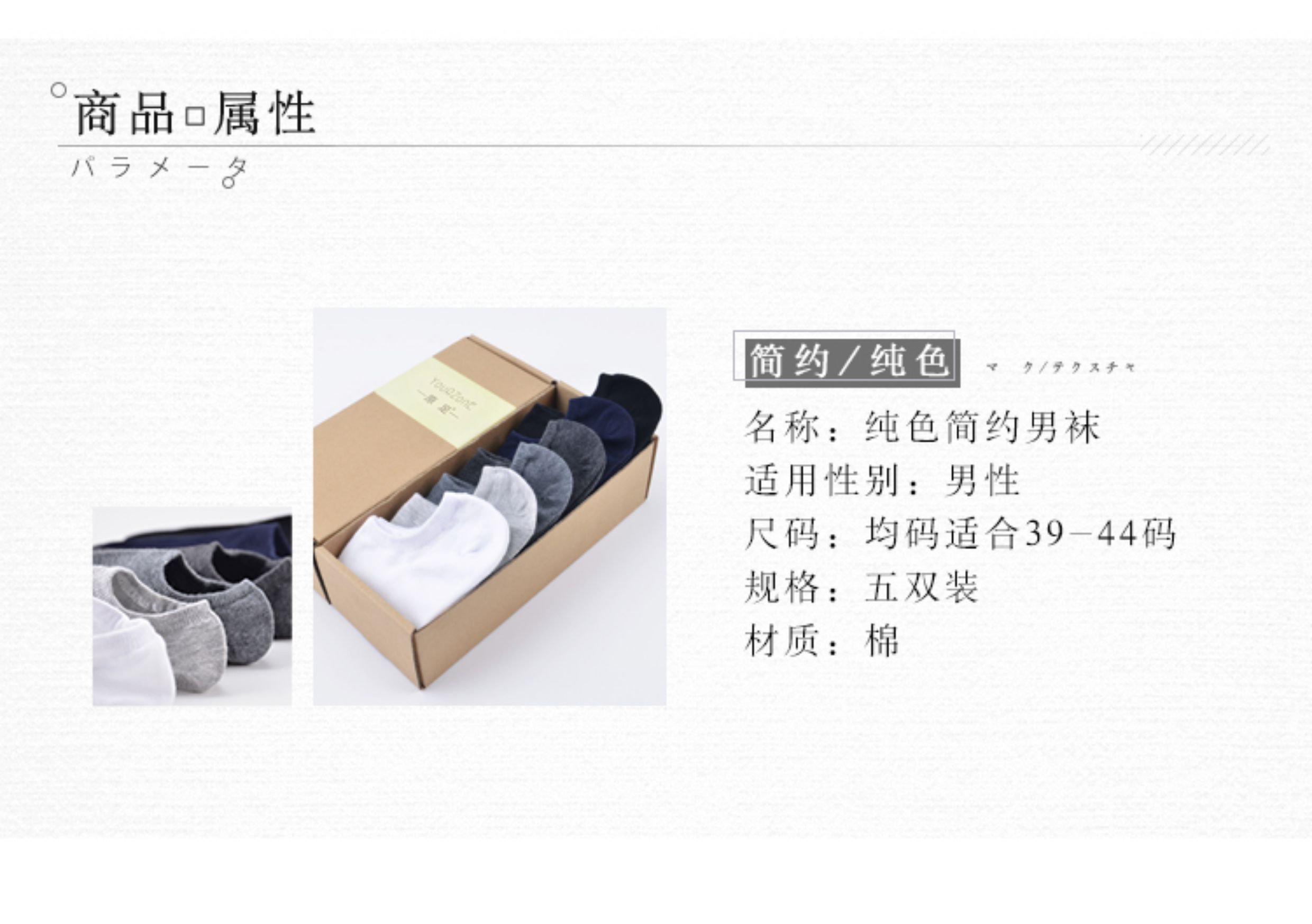 | 服裝款式細節 | 盒裝淺口男襪 |