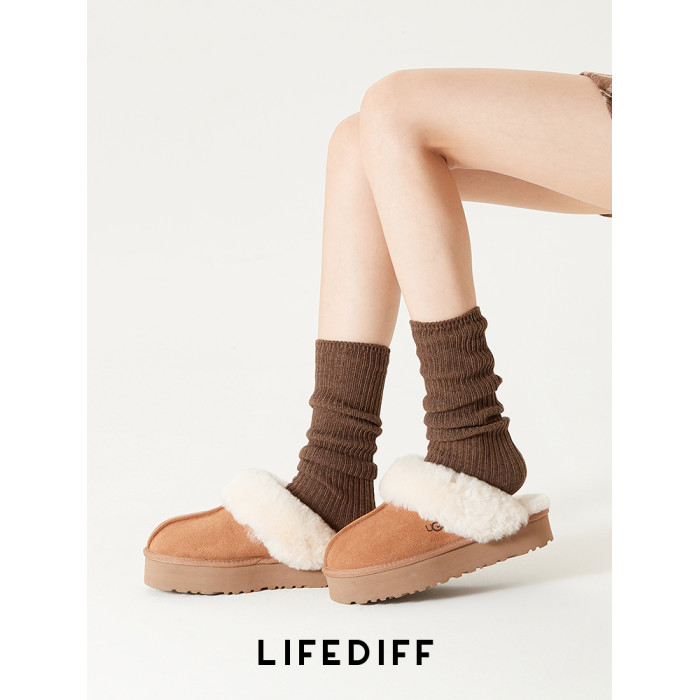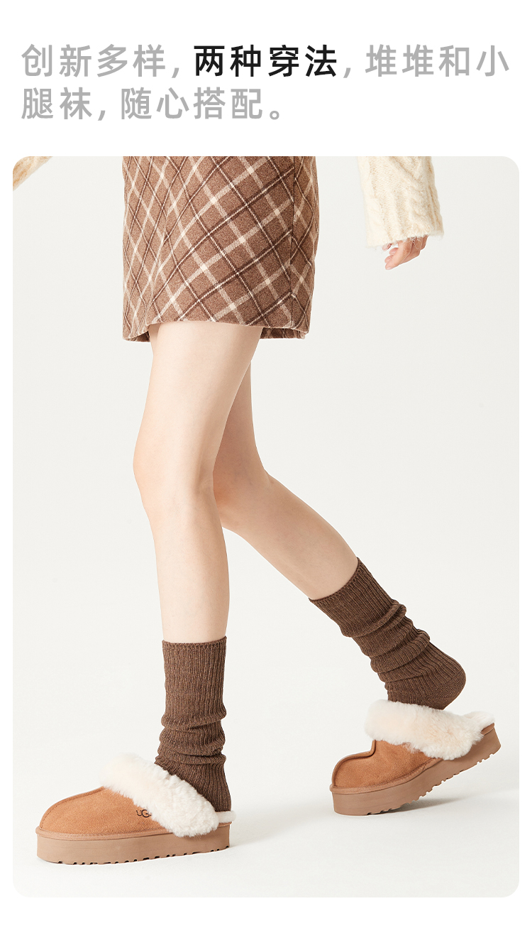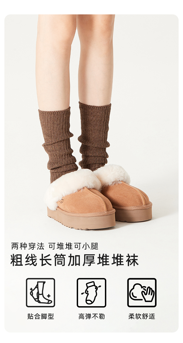 秋冬季加厚堆堆襪女搭配雪地靴咖色棉襪襪子女粗線中筒小腿襪長襪