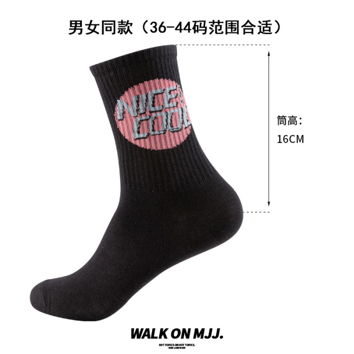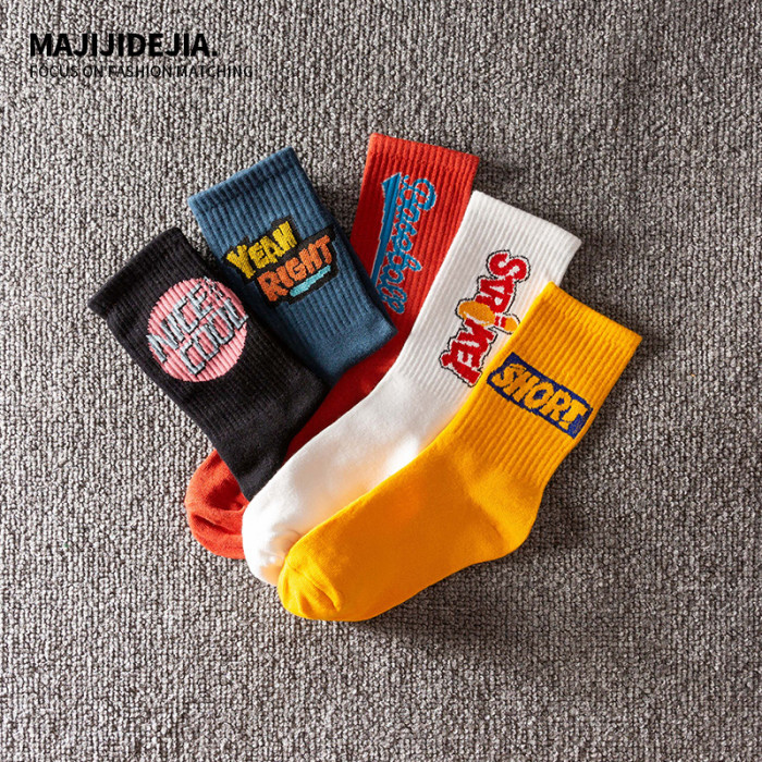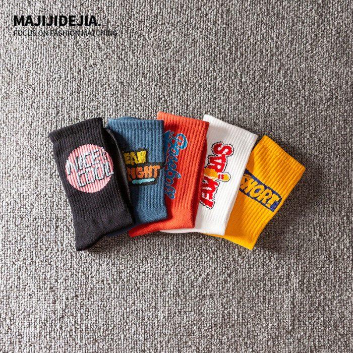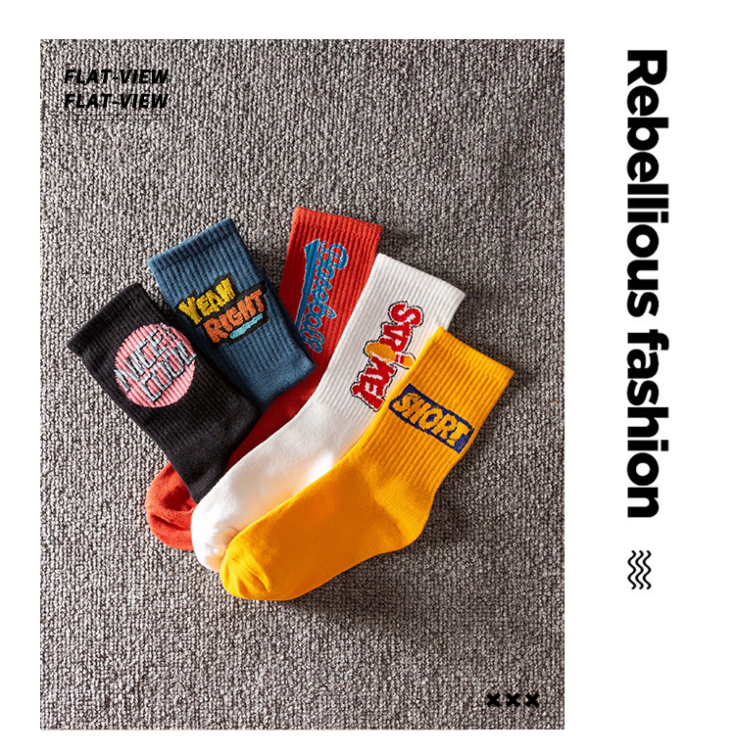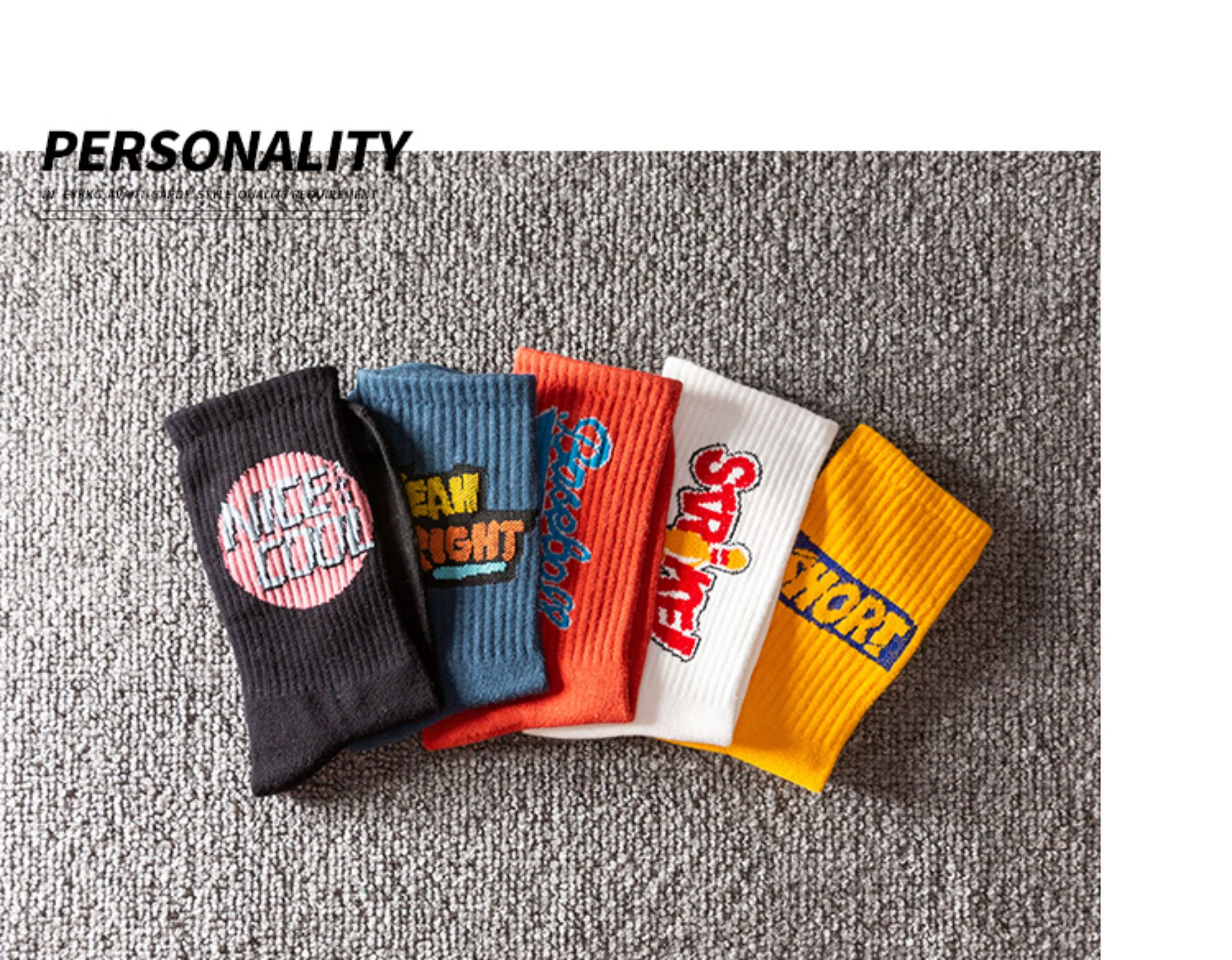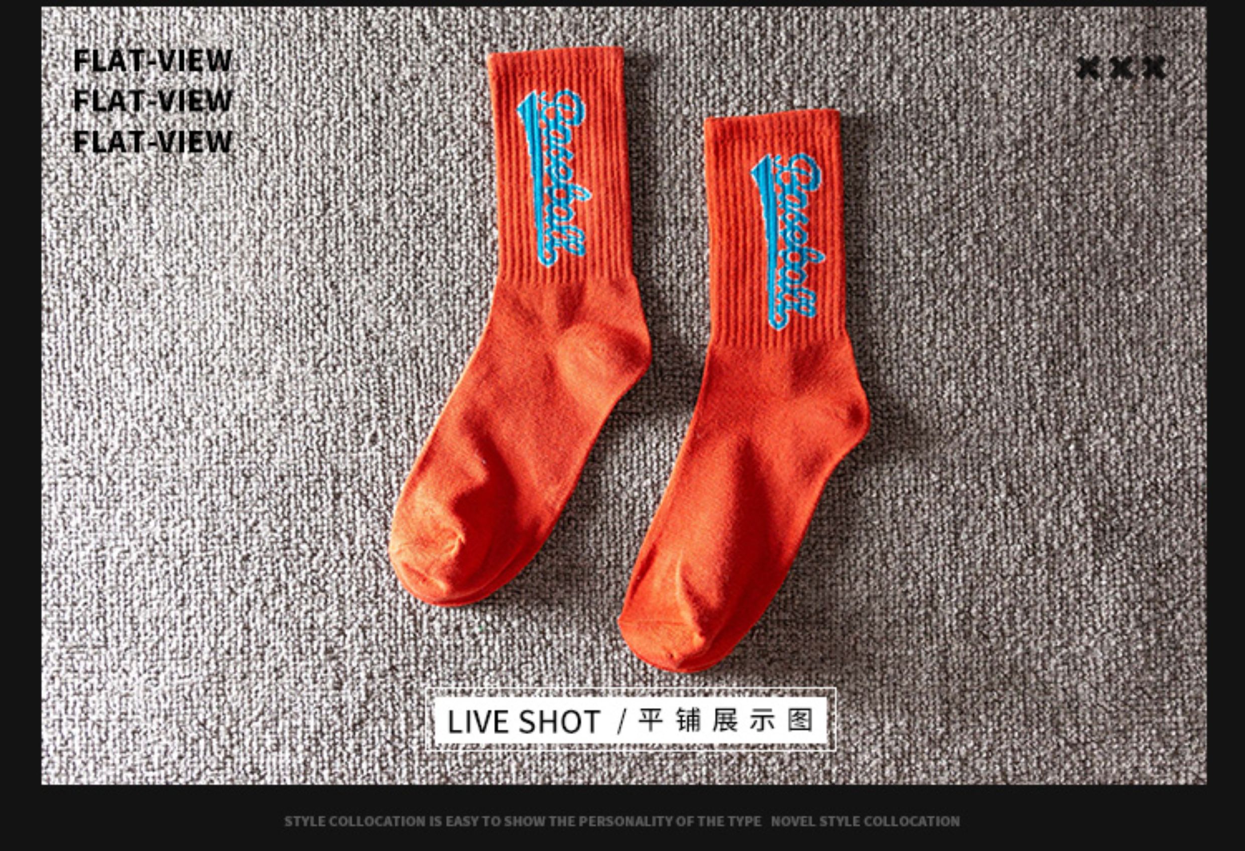 美式風潮牌襪子男款秋冬季長襪純棉滑板中筒襪女潮男生彩色運動襪