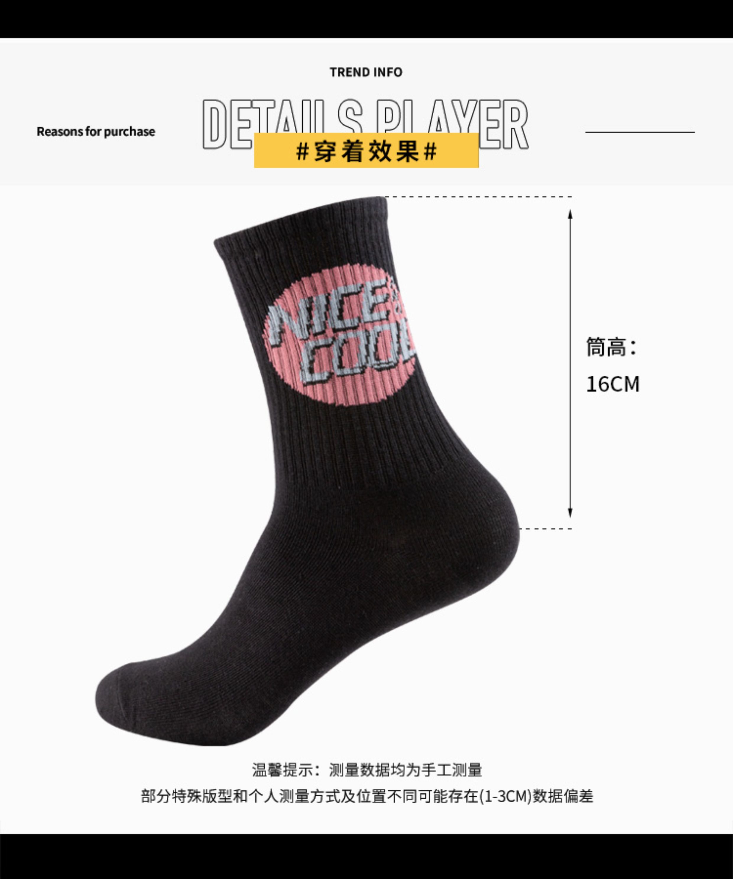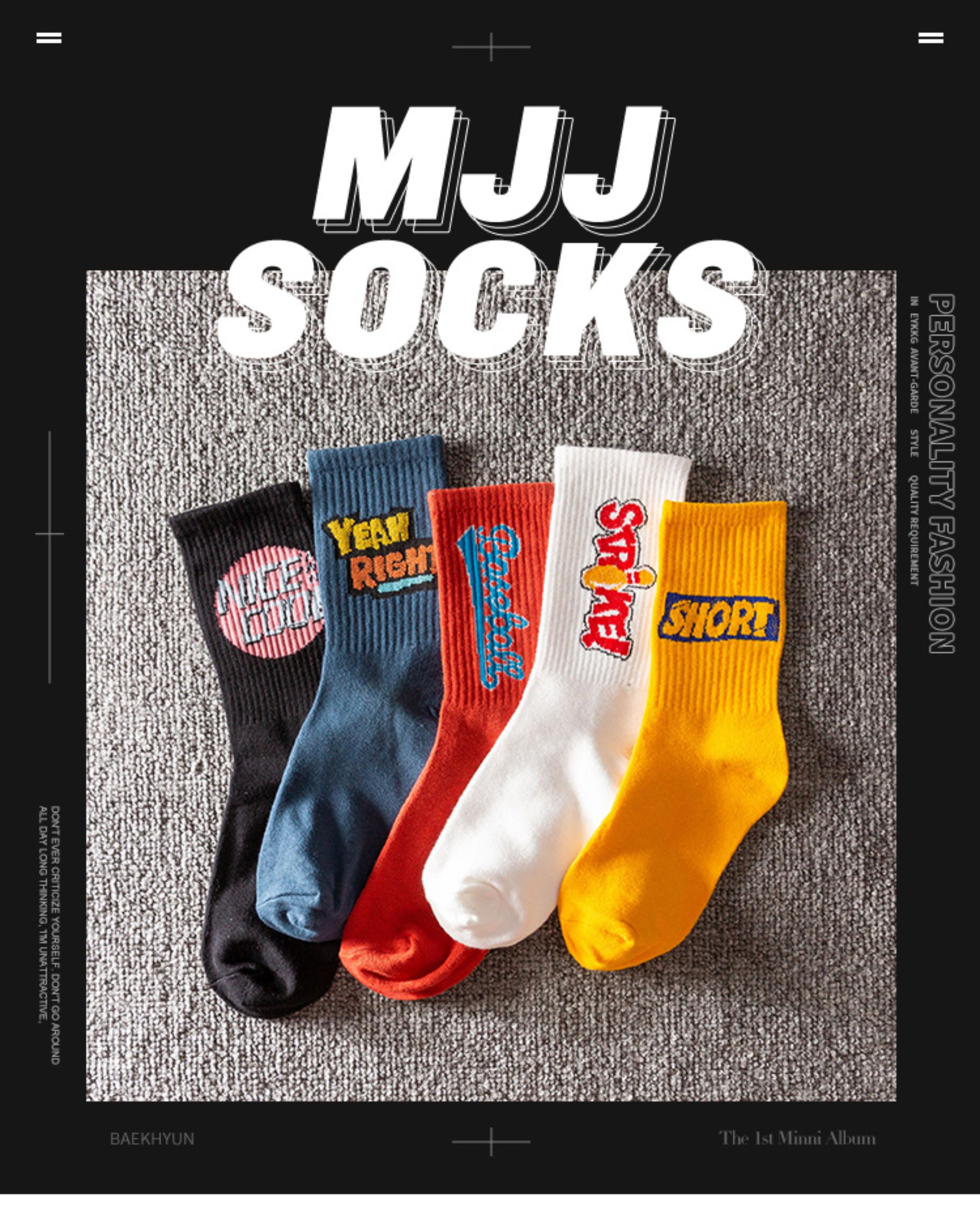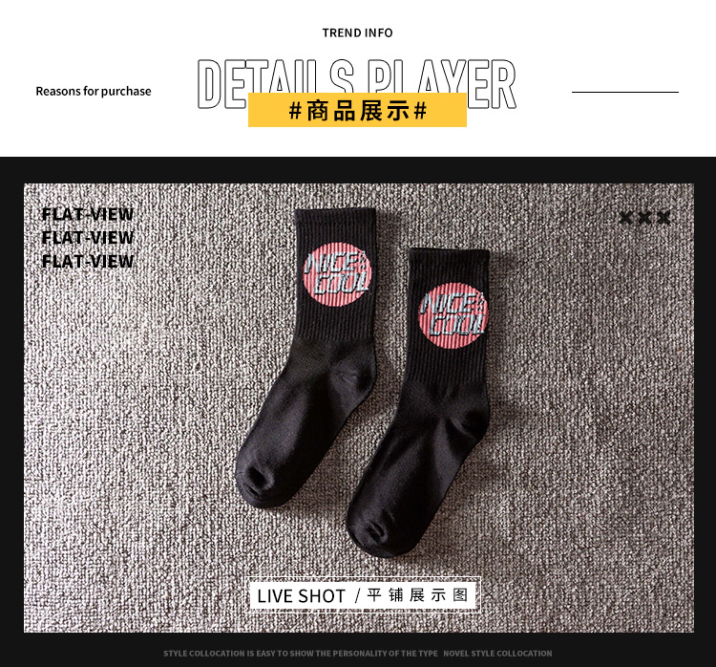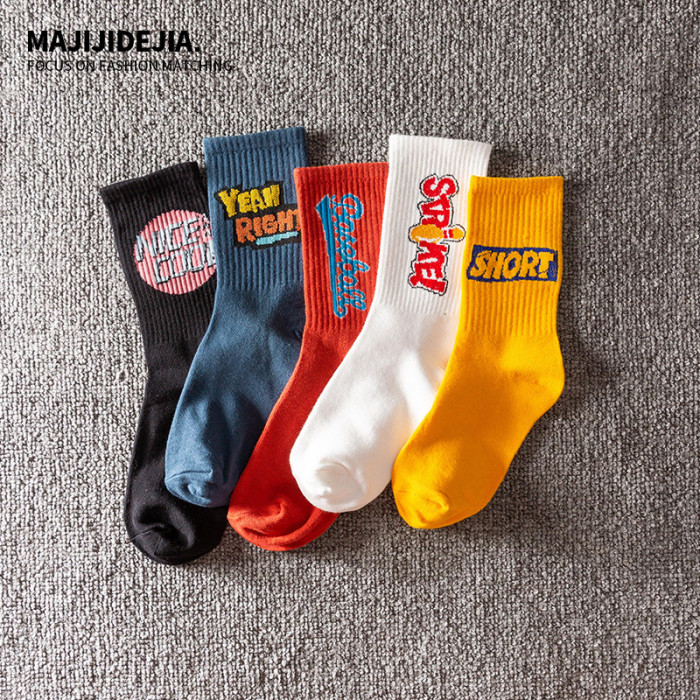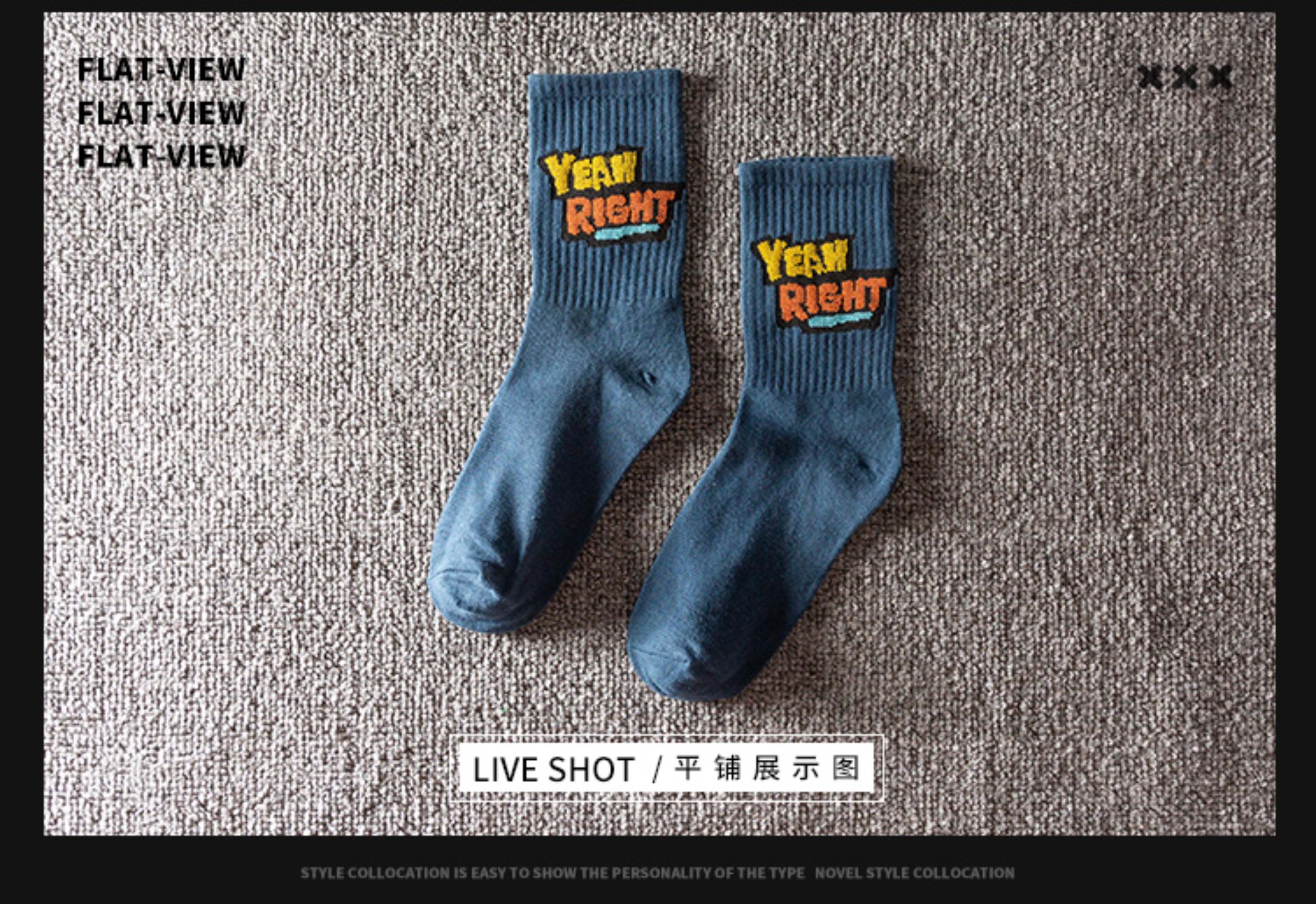 美式風潮牌襪子男款秋冬季長襪純棉滑板中筒襪女潮男生彩色運動襪