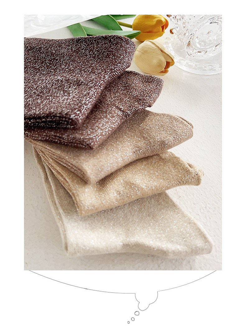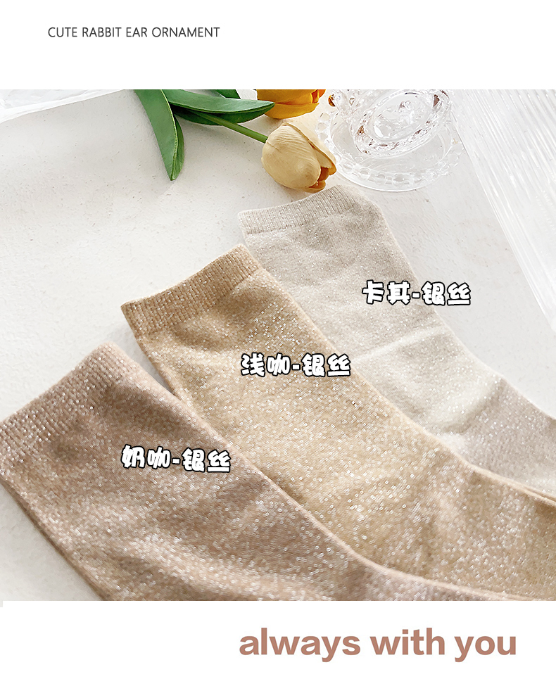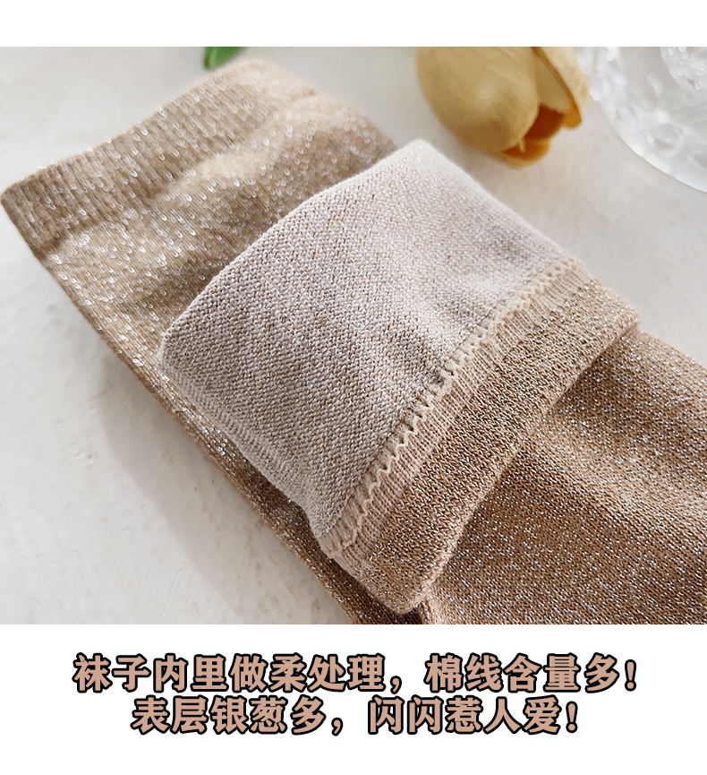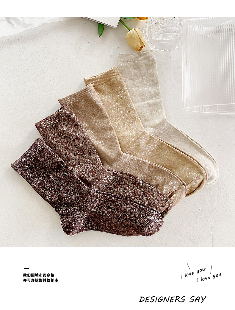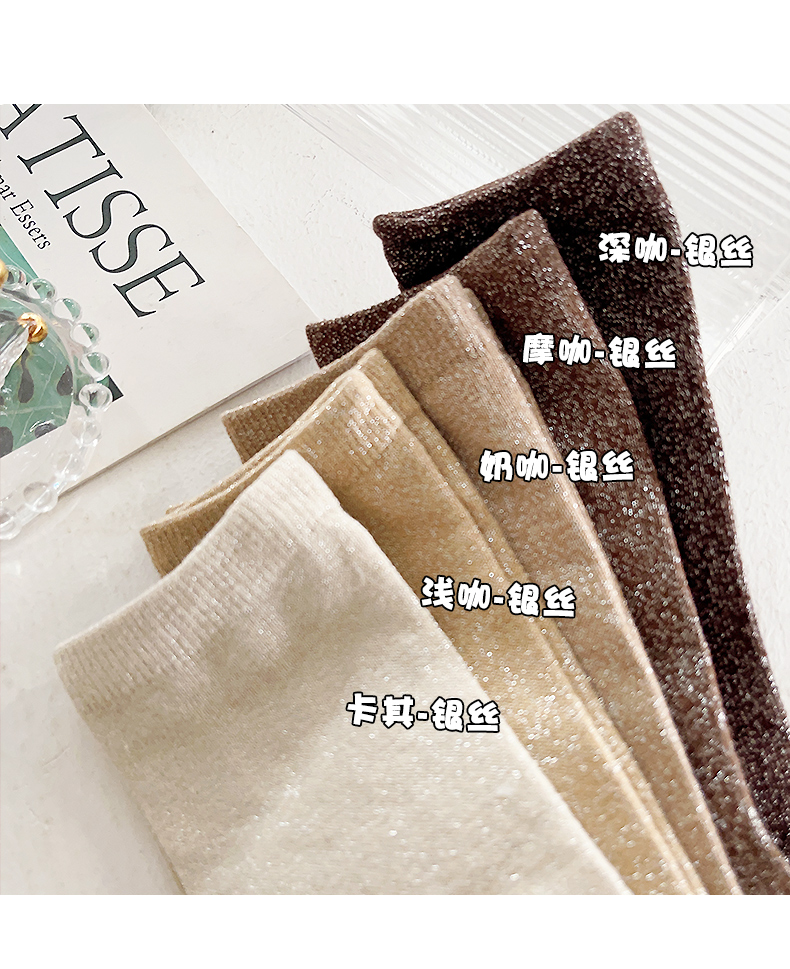 咖色系亮絲銀蔥襪子女ins潮時裝閃閃珠光金銀絲黑色純棉堆堆襪
