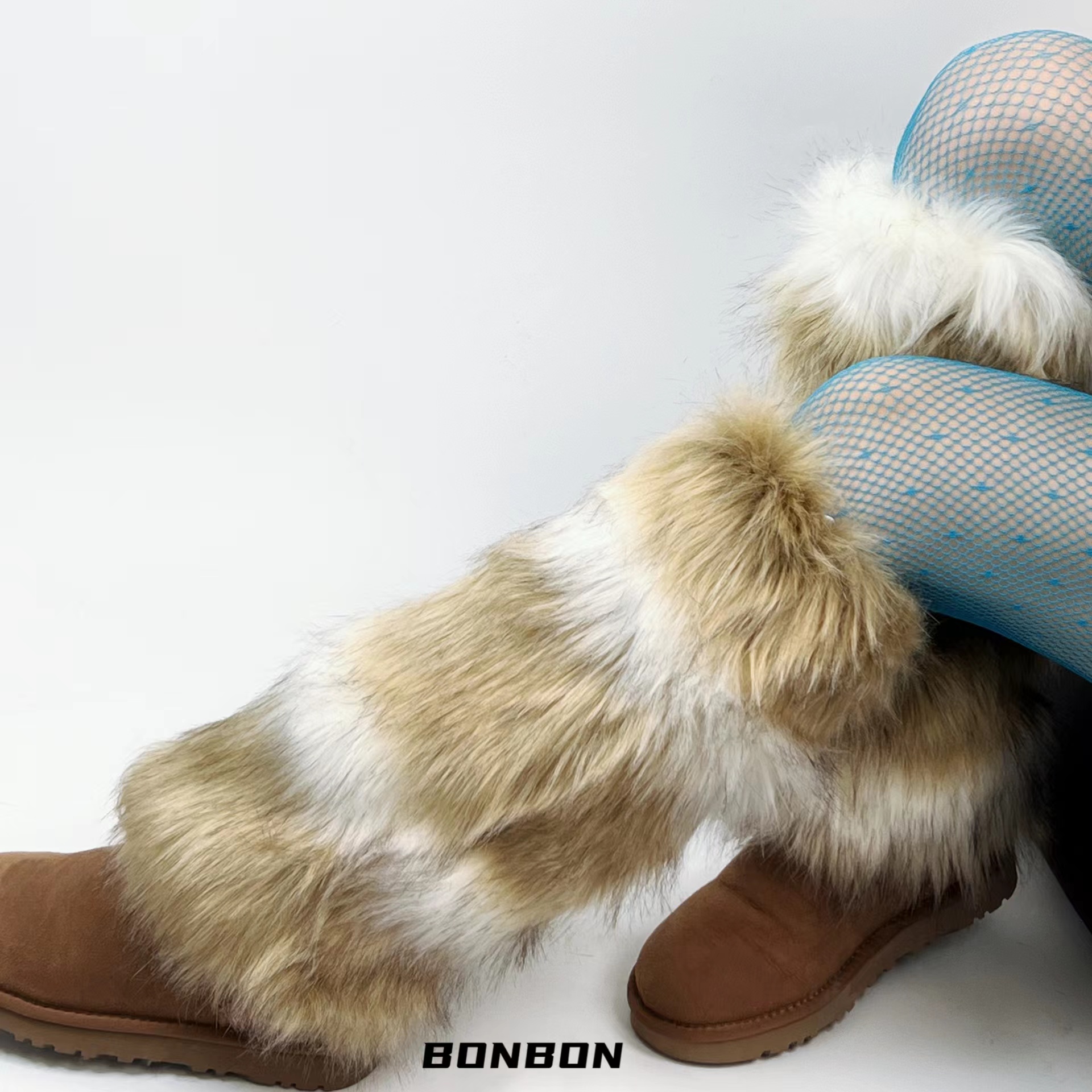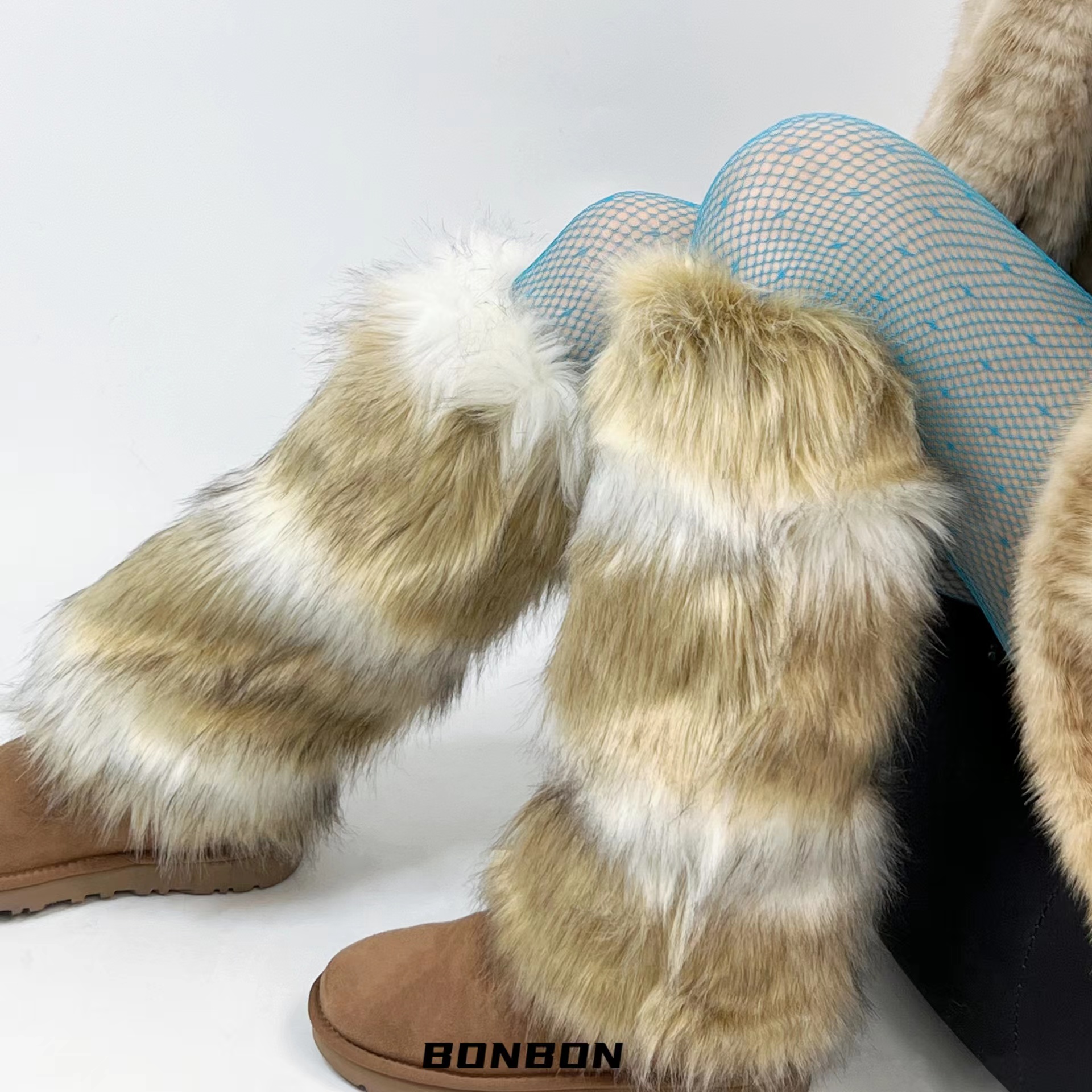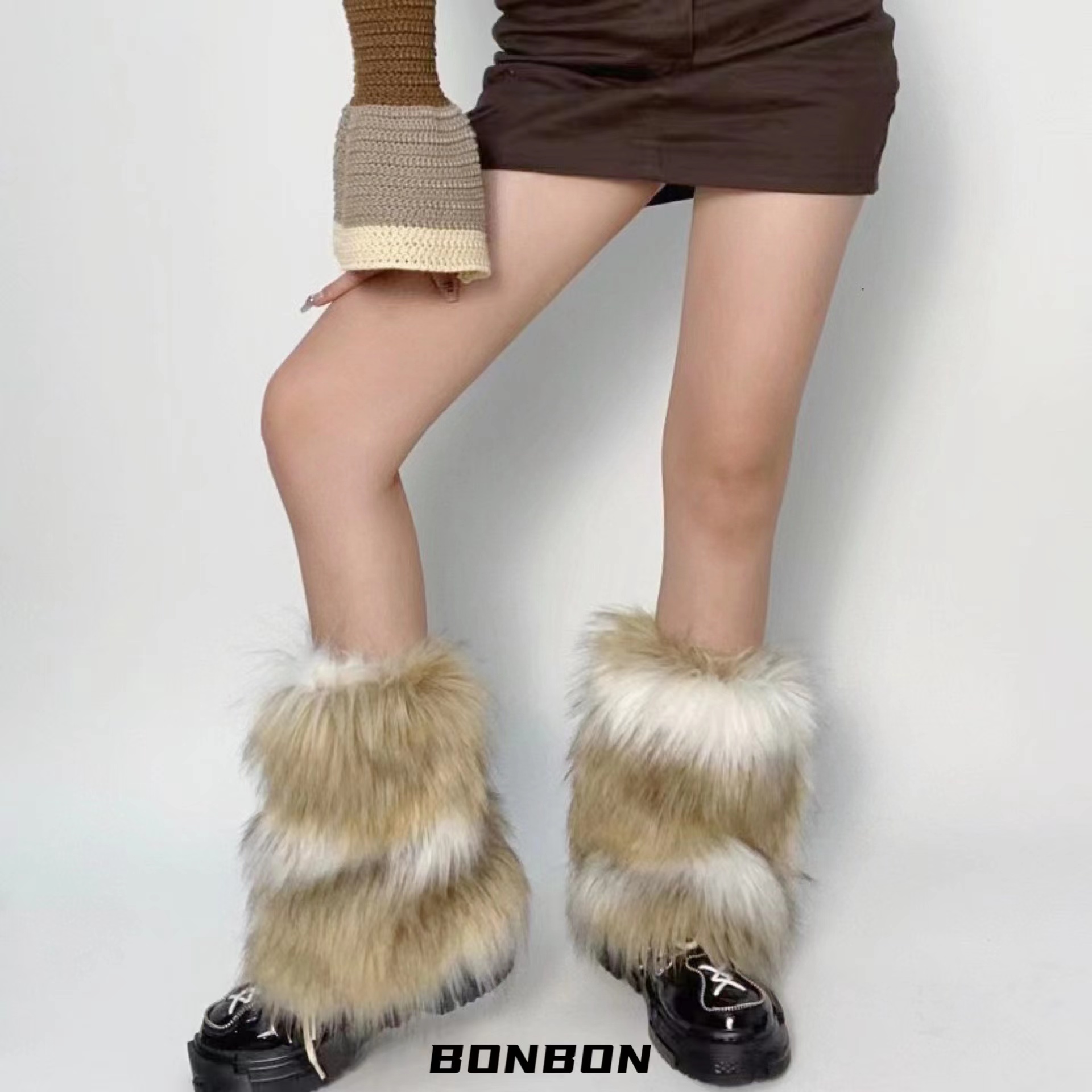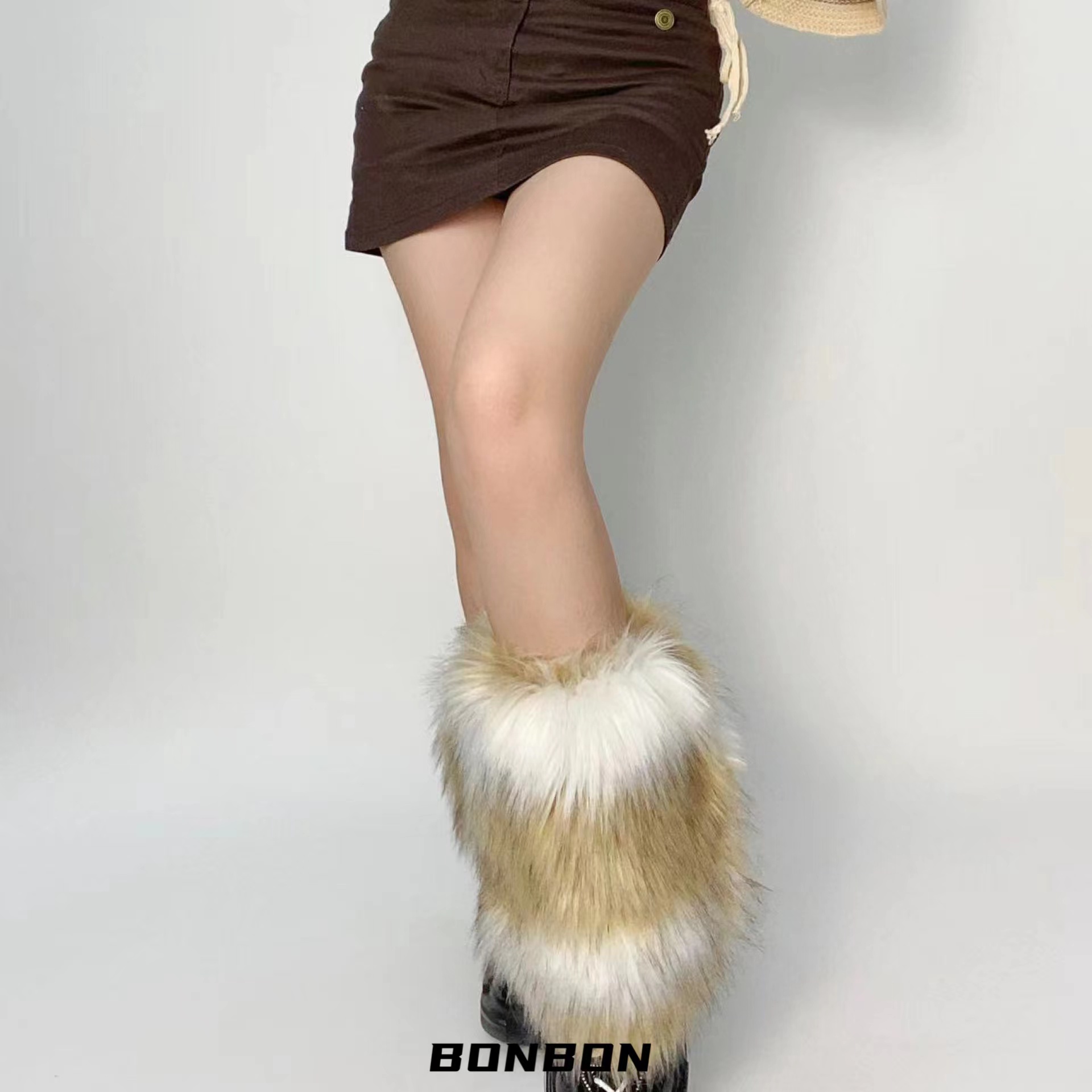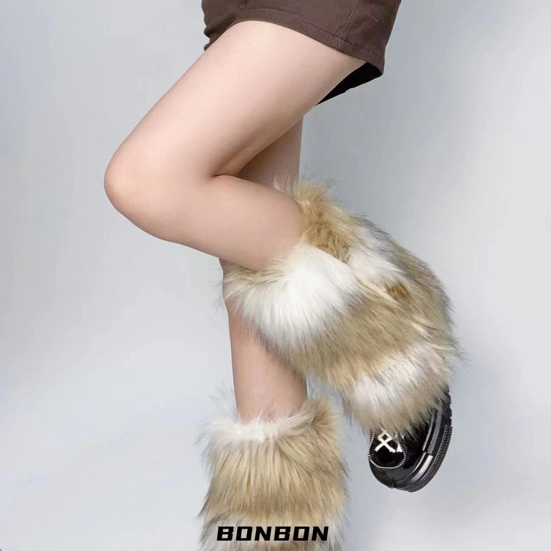 BON 復古摩登咖色毛毛鞋套仿皮草靴子襪套千禧風辣妹腿套y2k秋冬