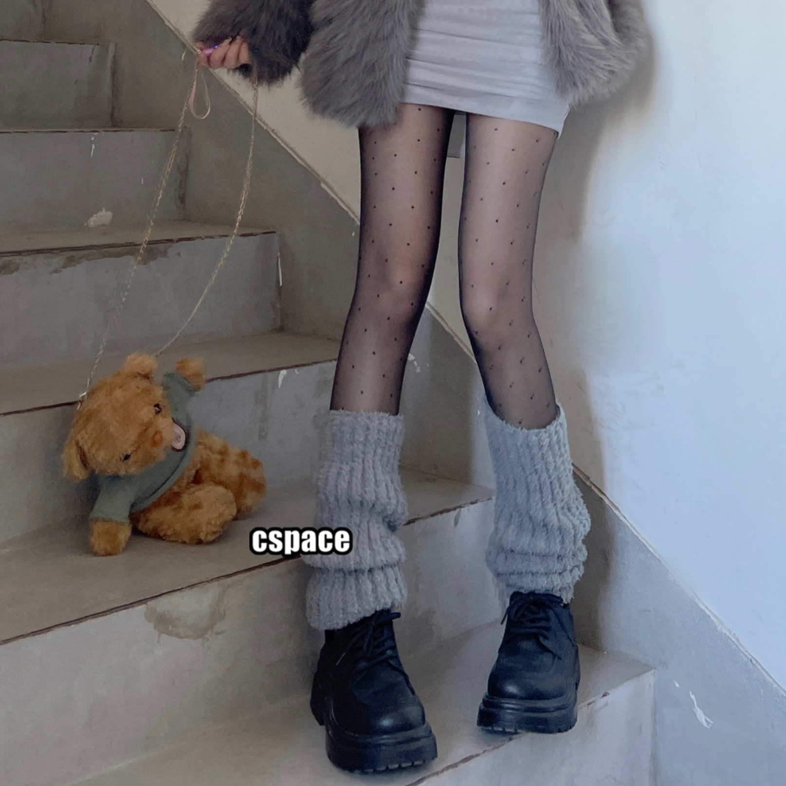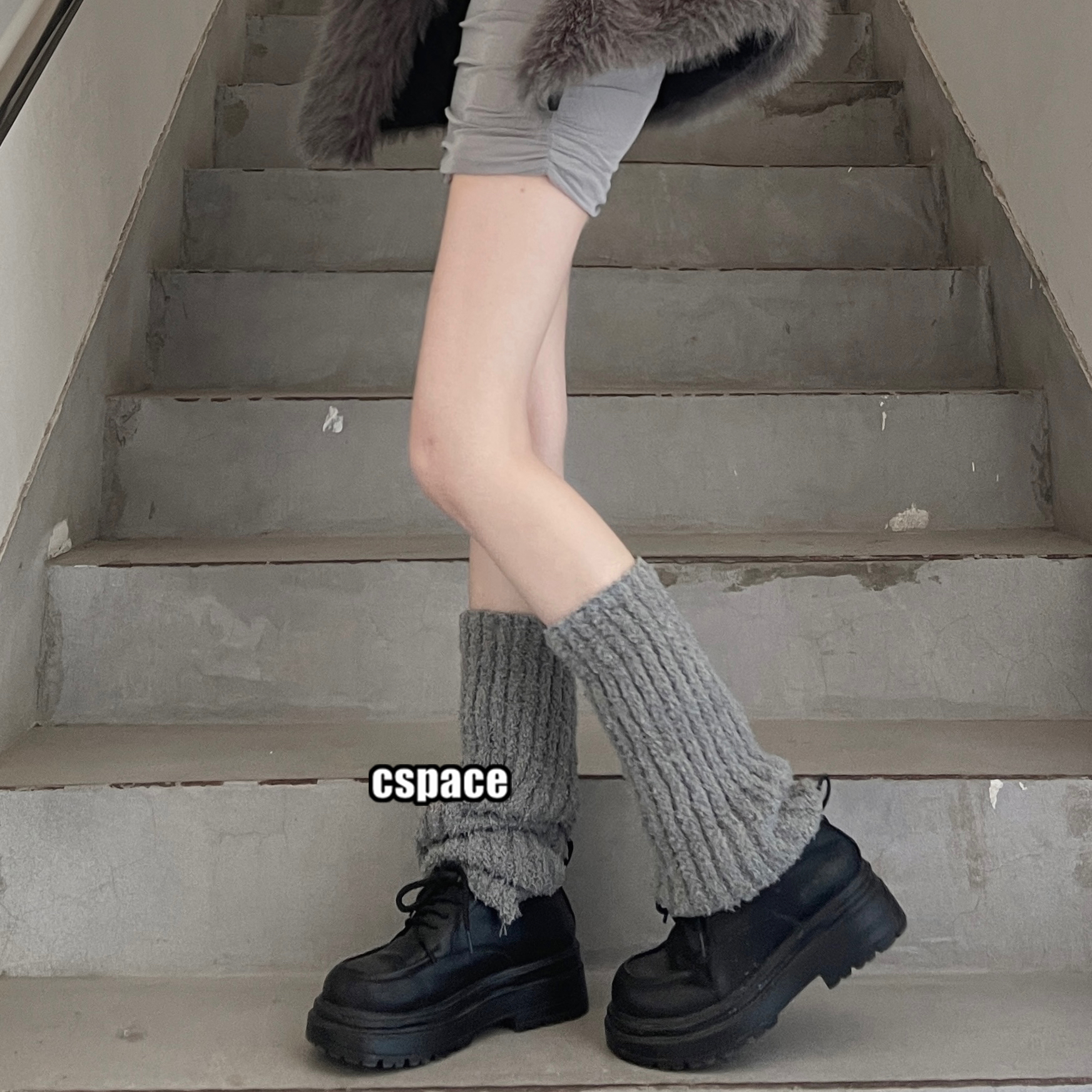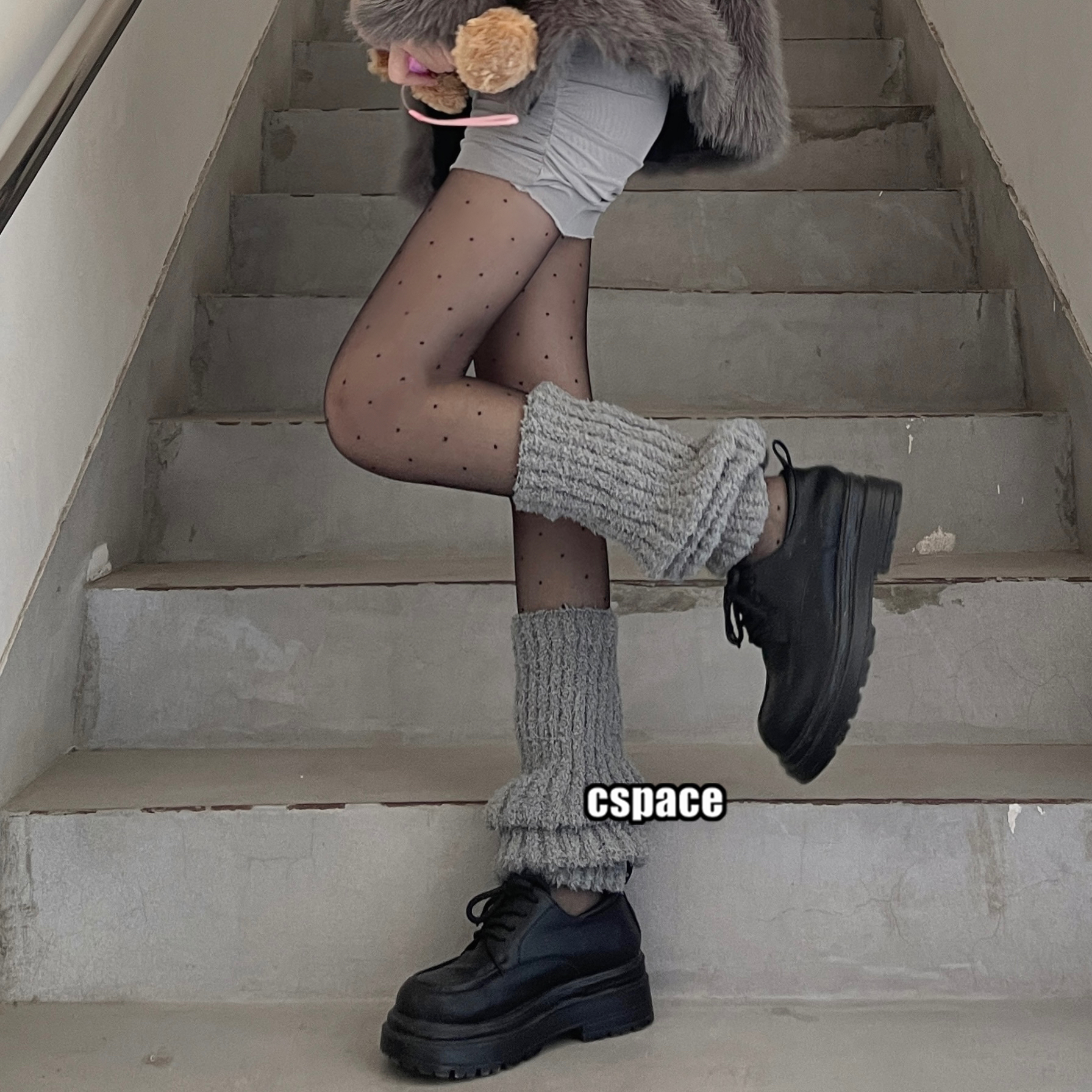霧裡町 復古灰辣妹毛茸茸襪套加厚灰色絨毛保暖堆堆基礎腿套黑絲