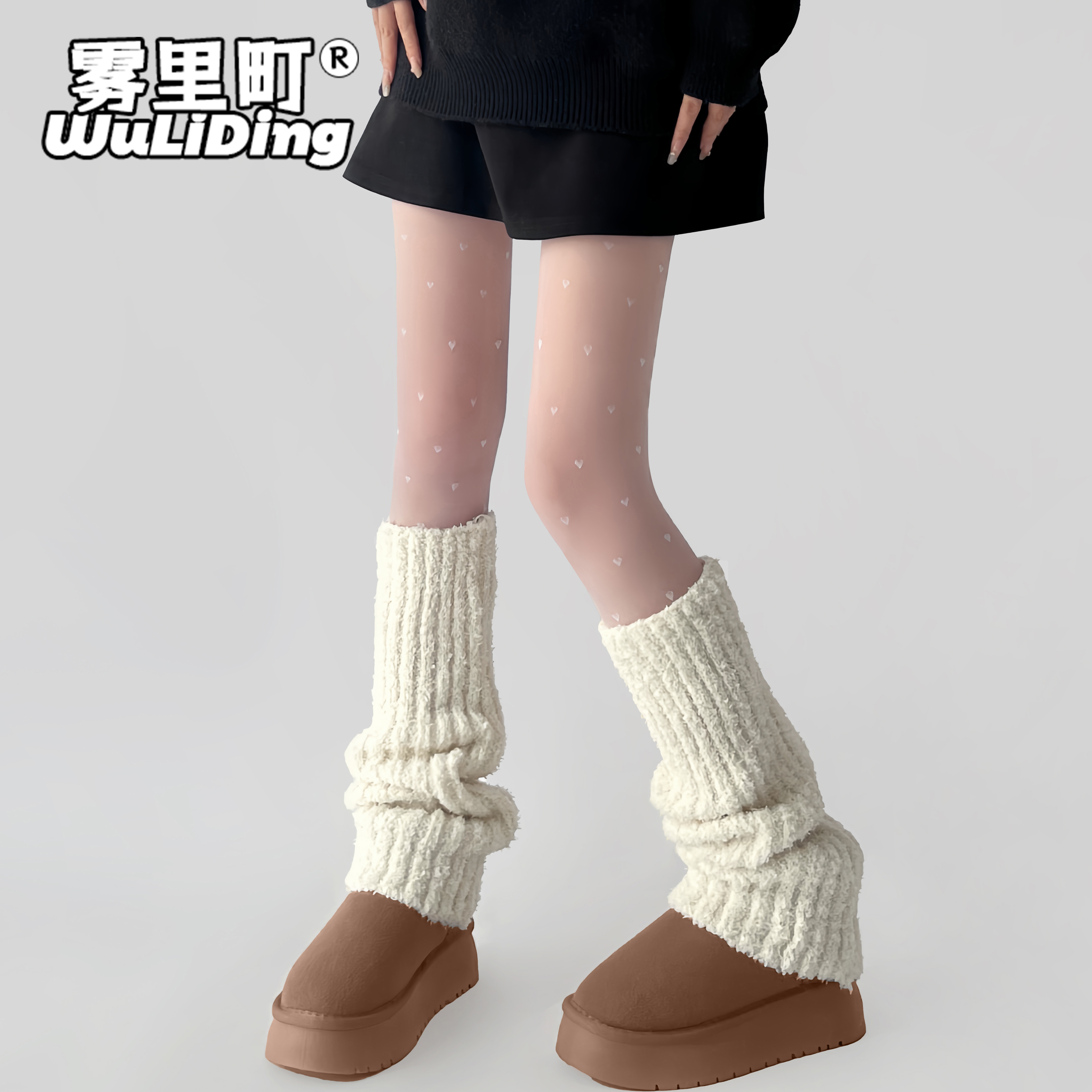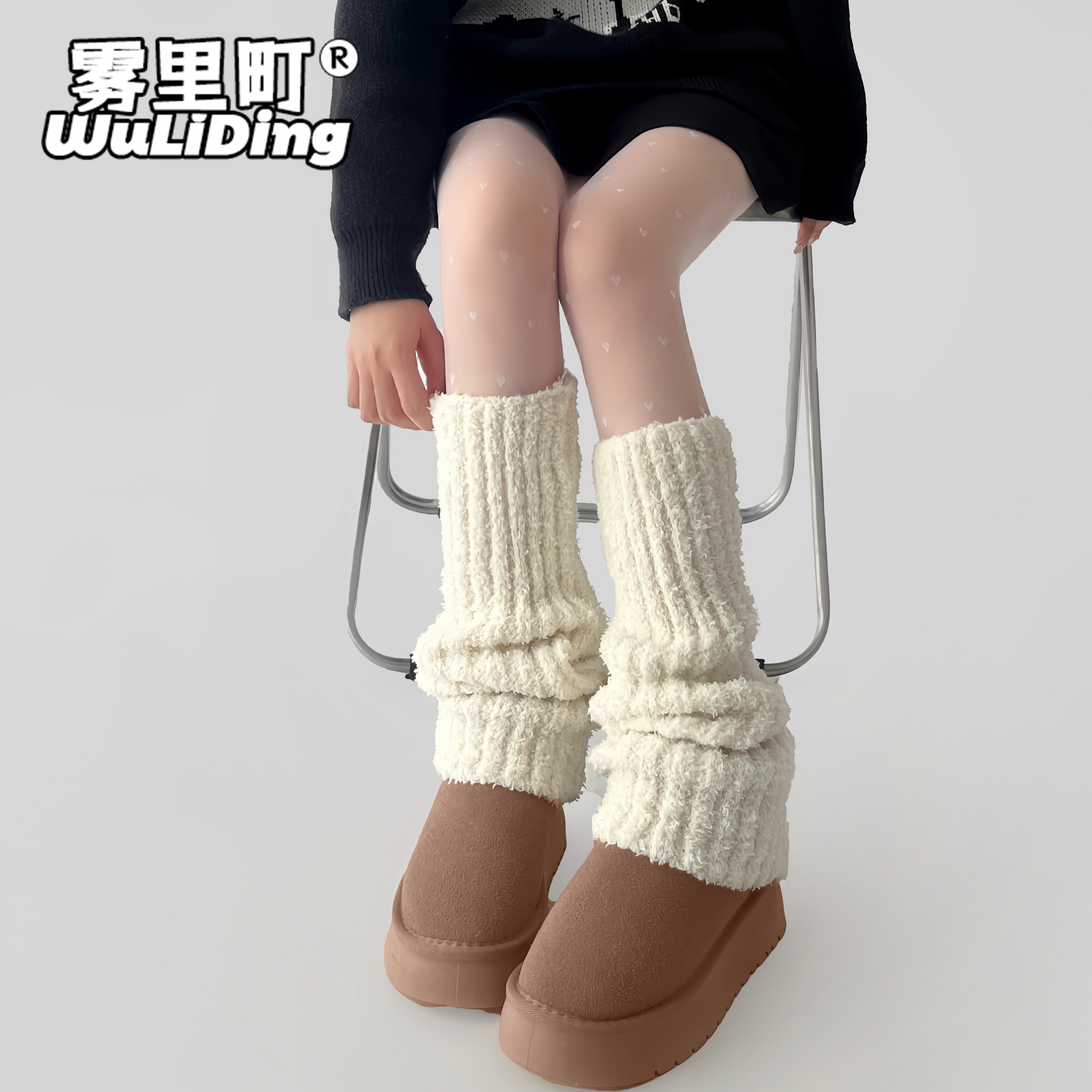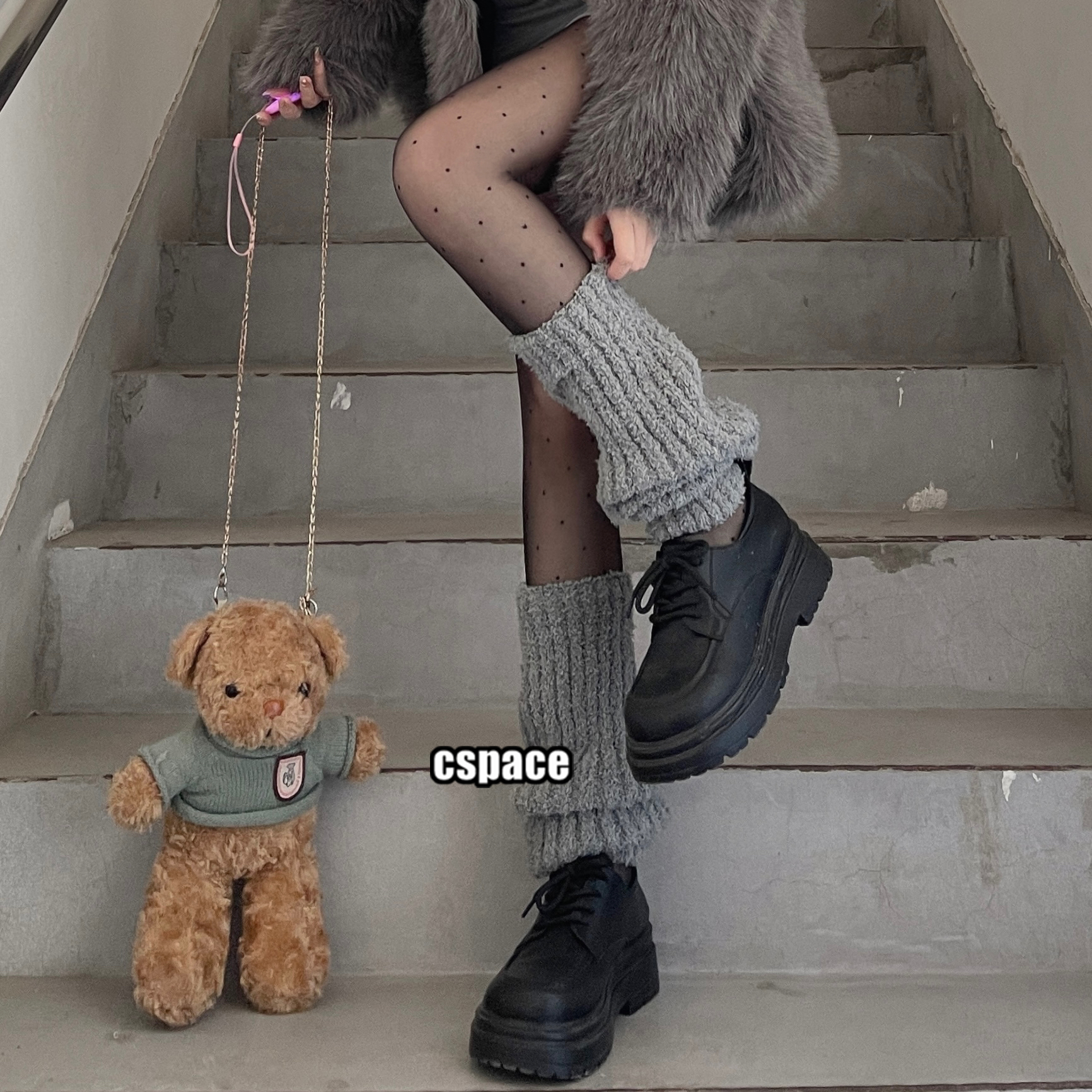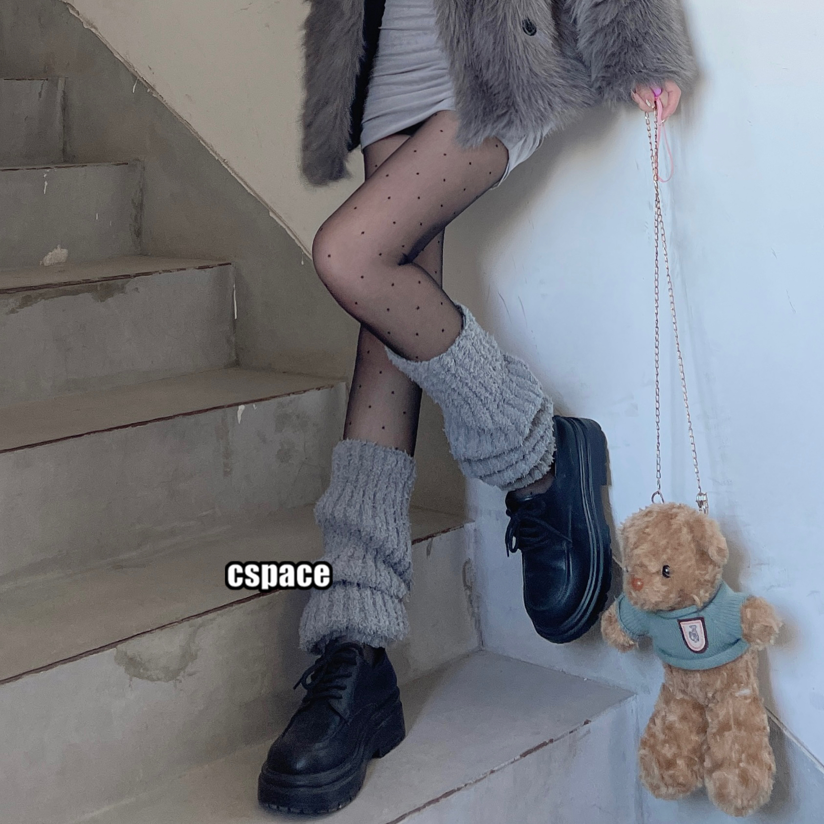 霧裡町 復古灰辣妹毛茸茸襪套加厚灰色絨毛保暖堆堆基礎腿套黑絲