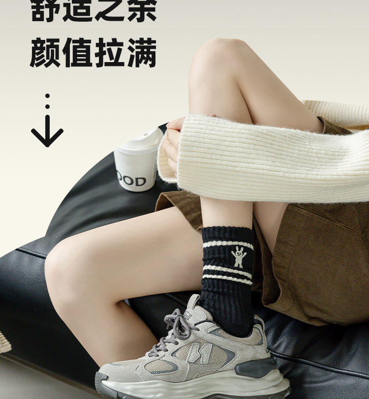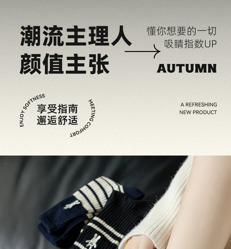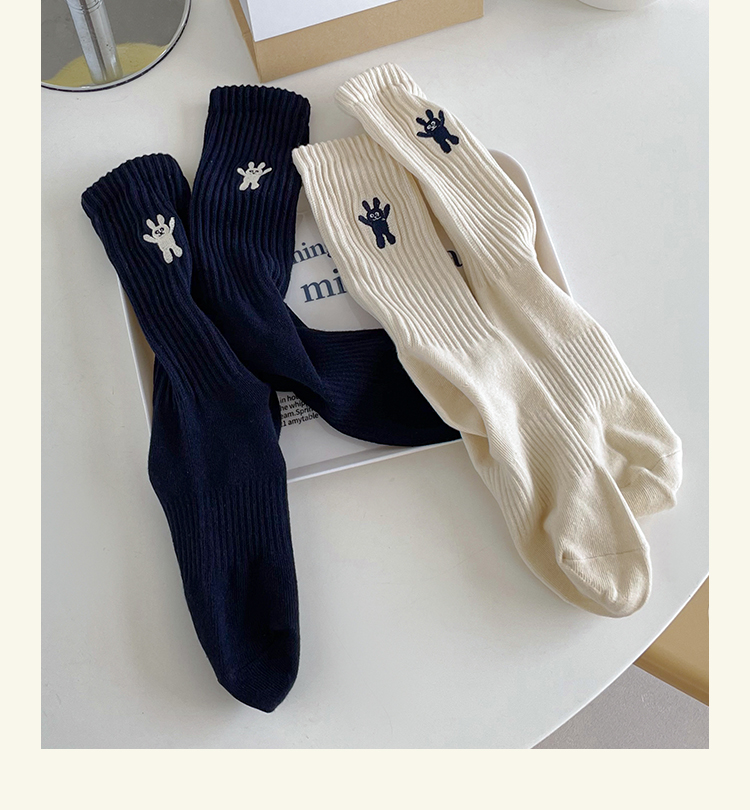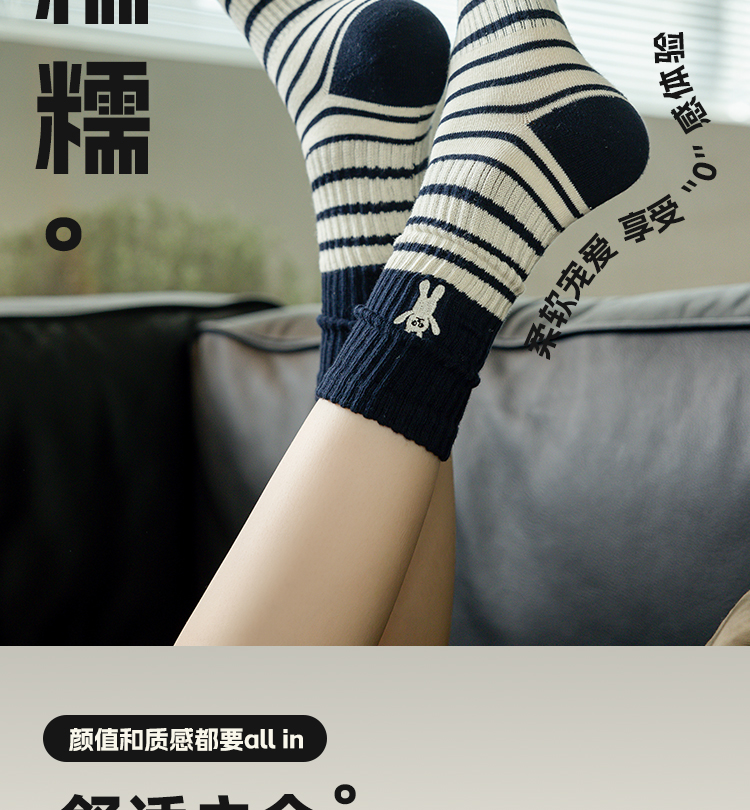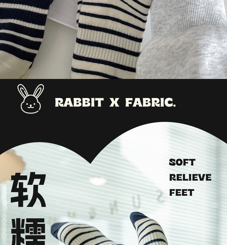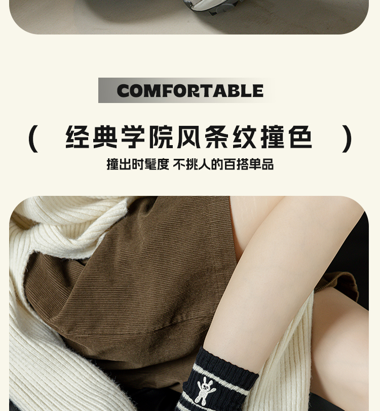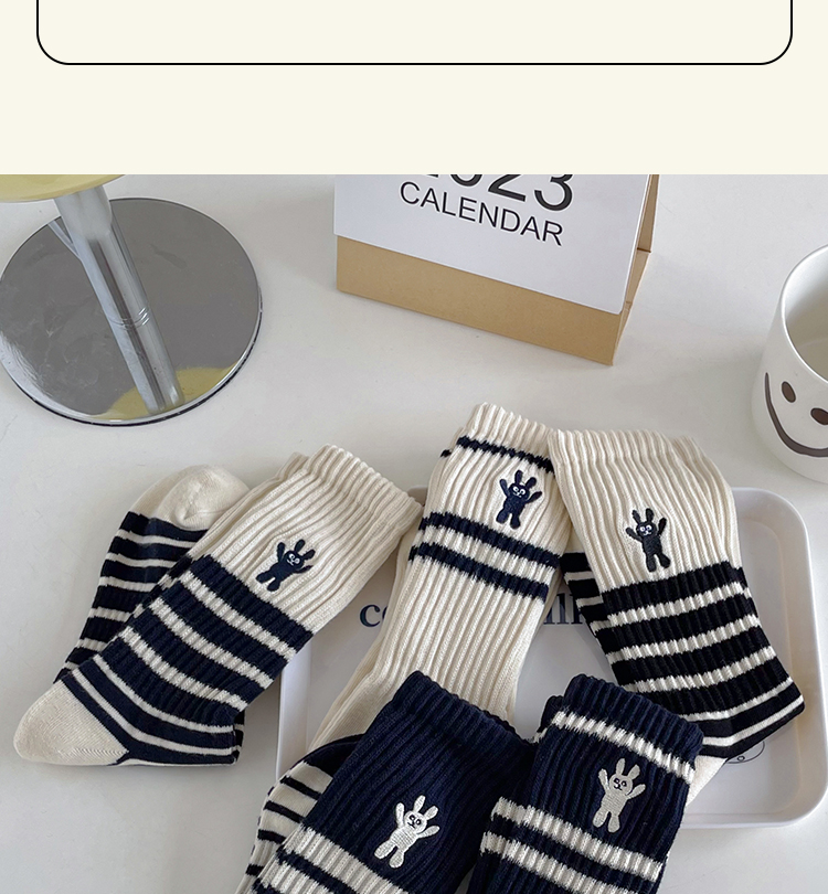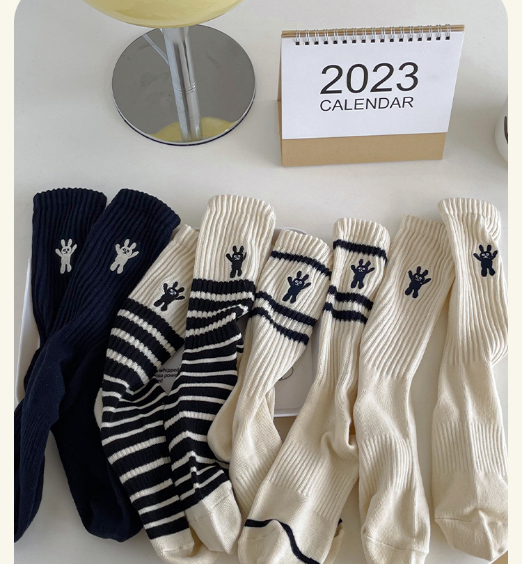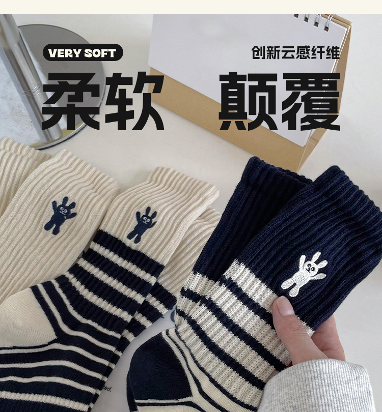 條紋兔子襪子女中筒襪純棉ins潮春秋季日系可愛運動秋冬堆堆長襪