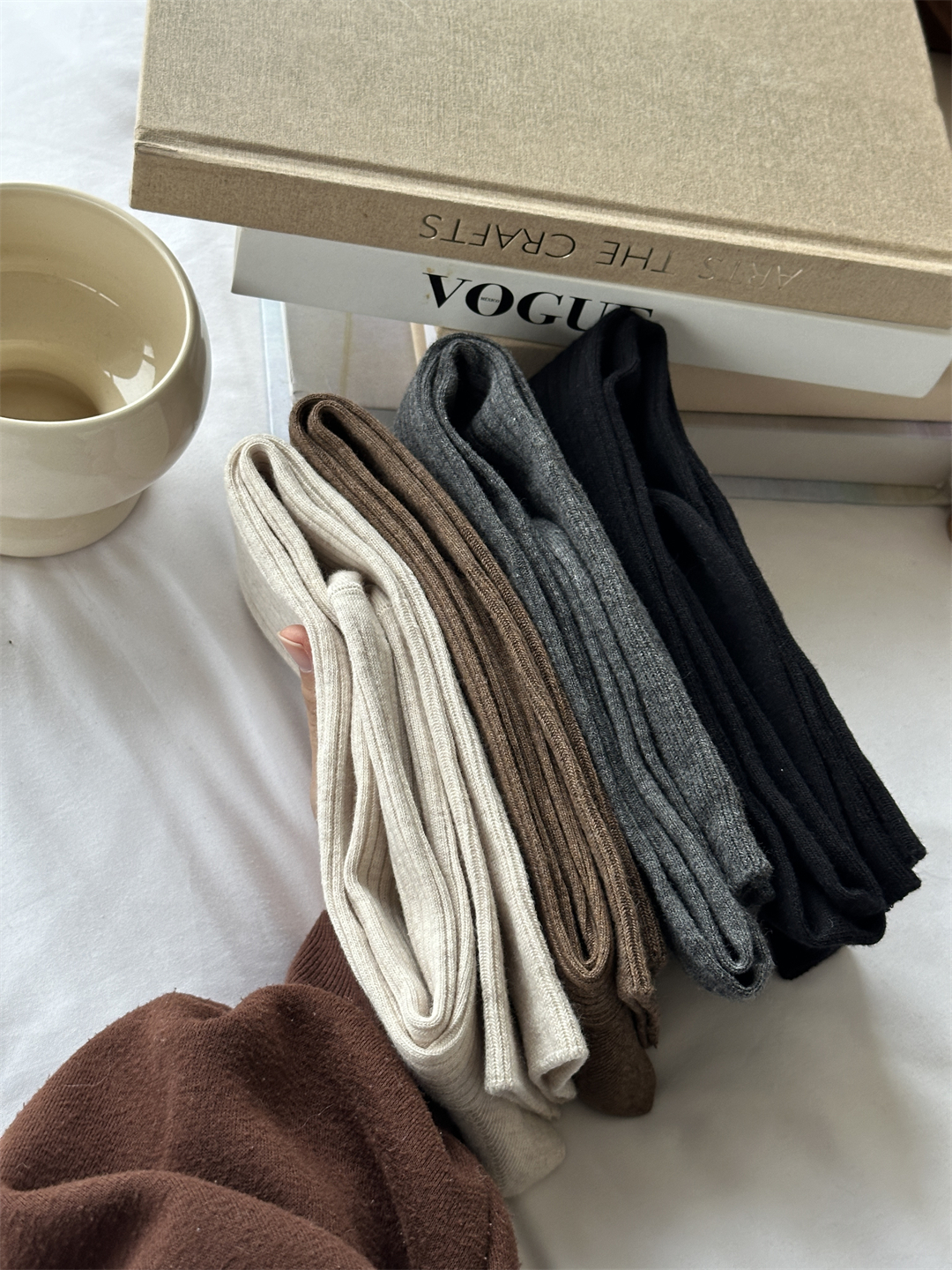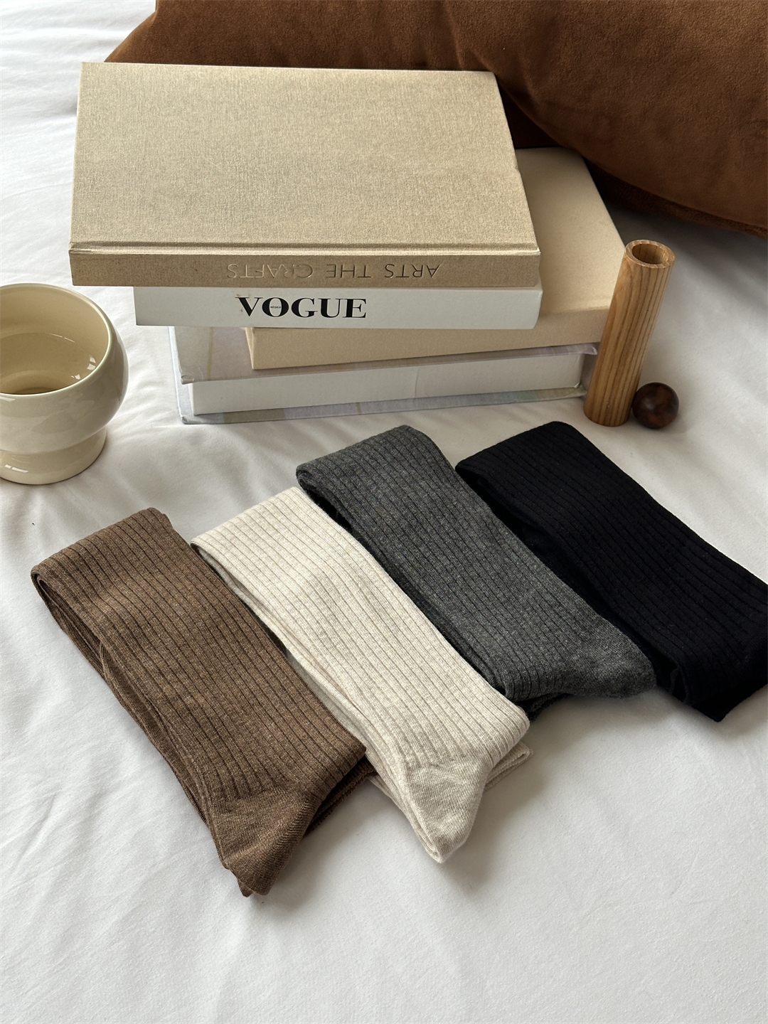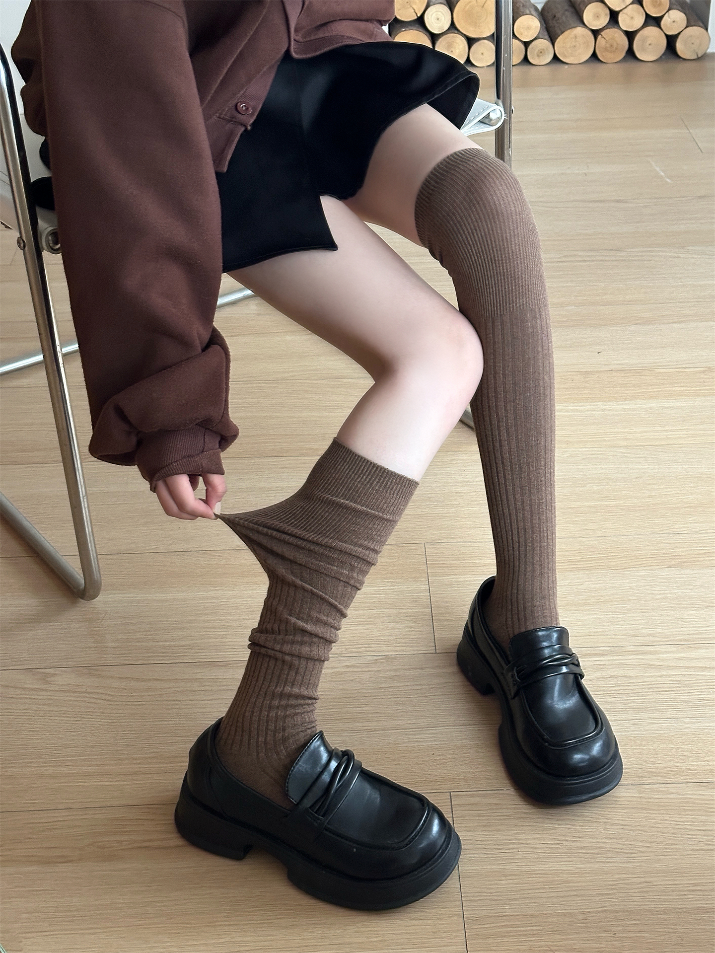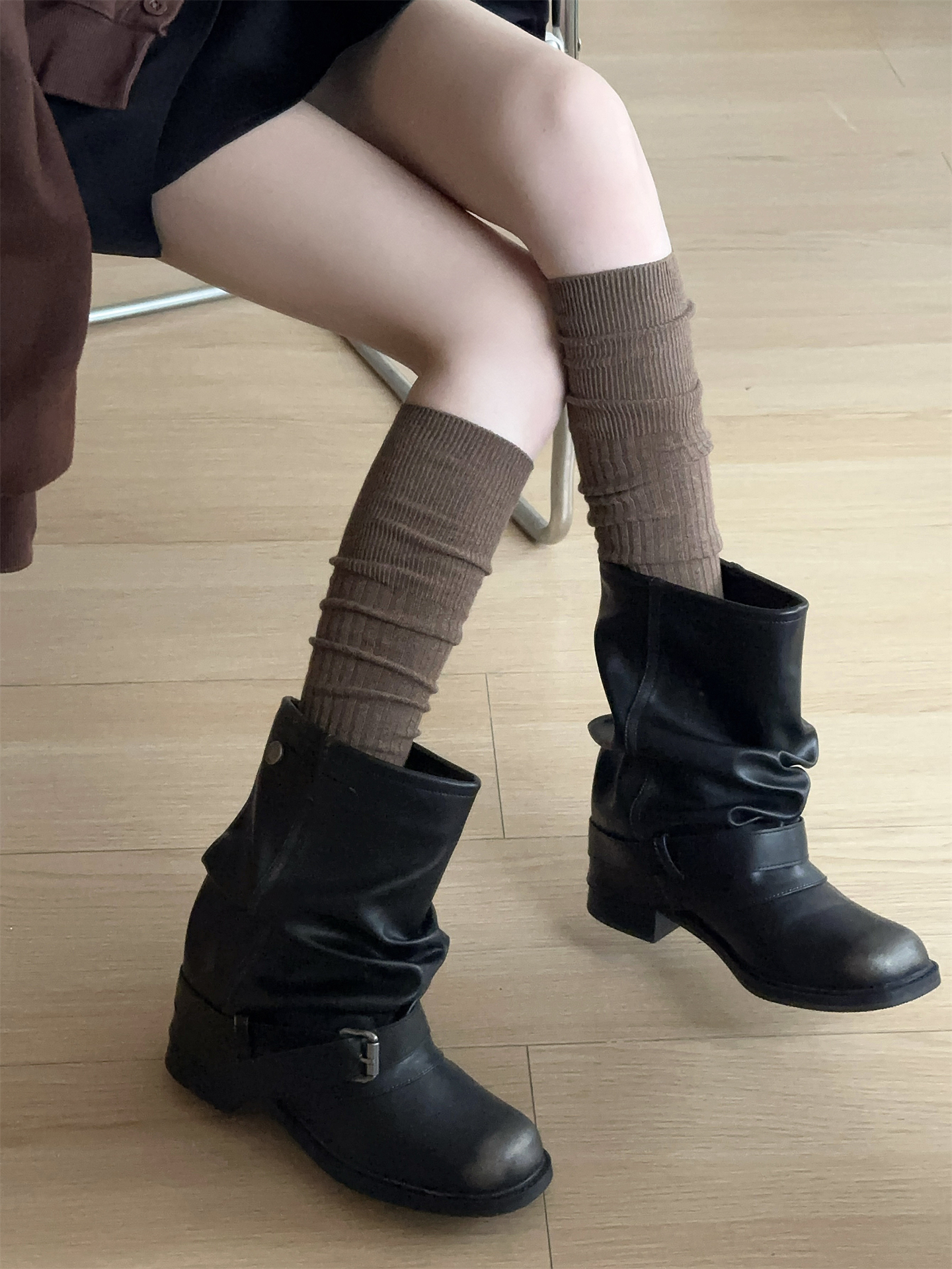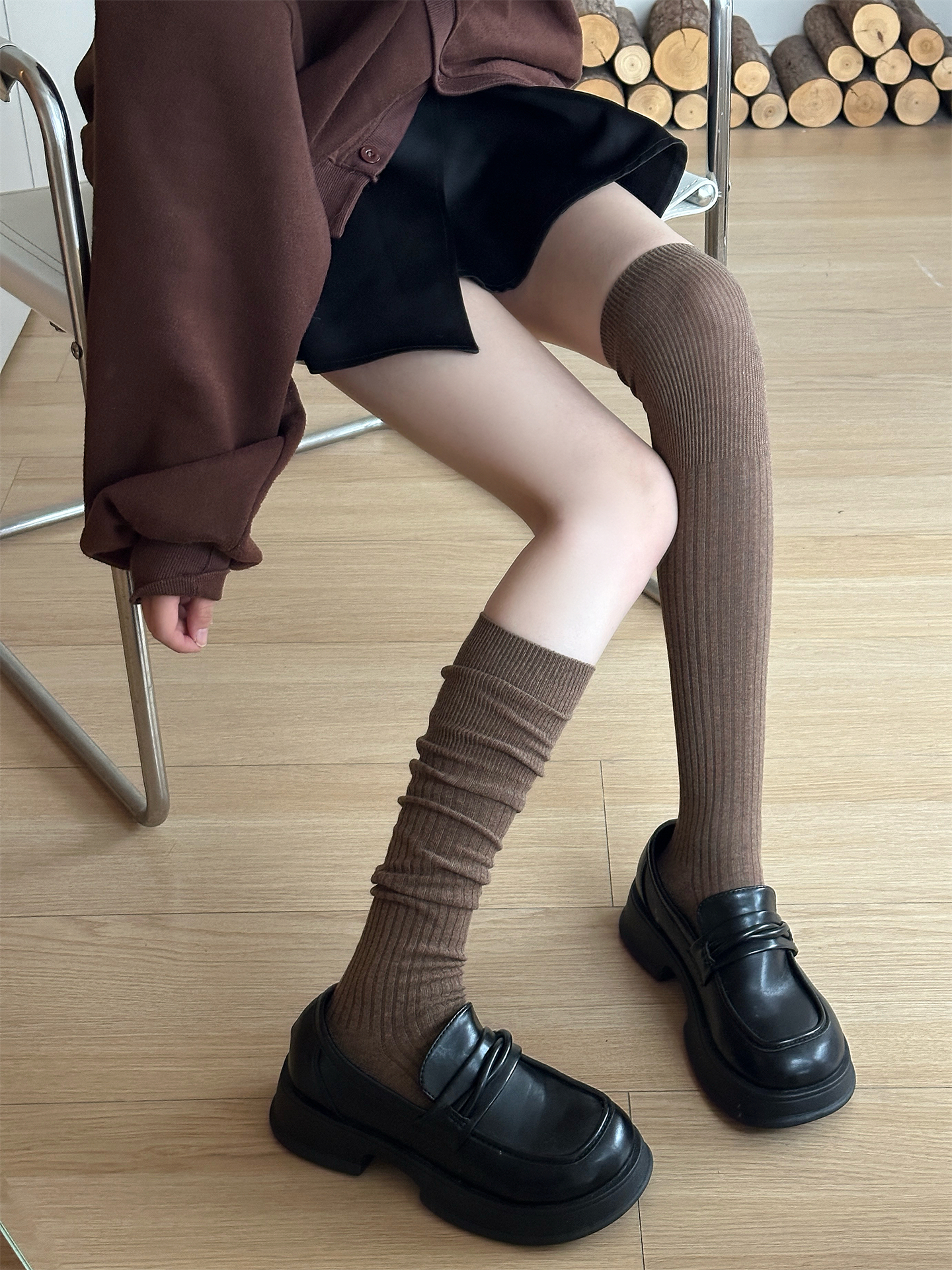 2025春秋長筒過膝堆堆襪女咖啡miu風曡穿竪條顯瘦配靴子的襪子棉