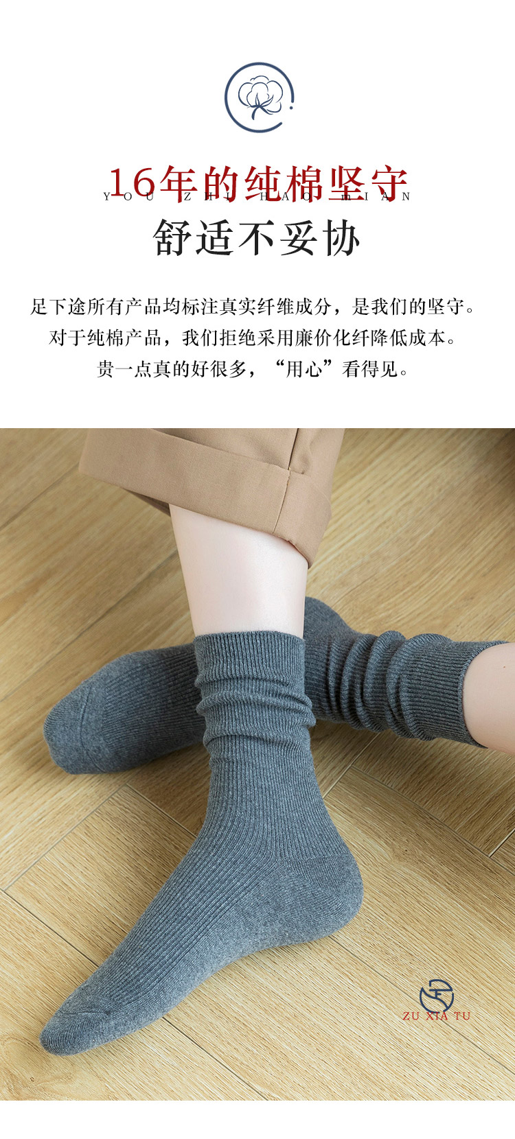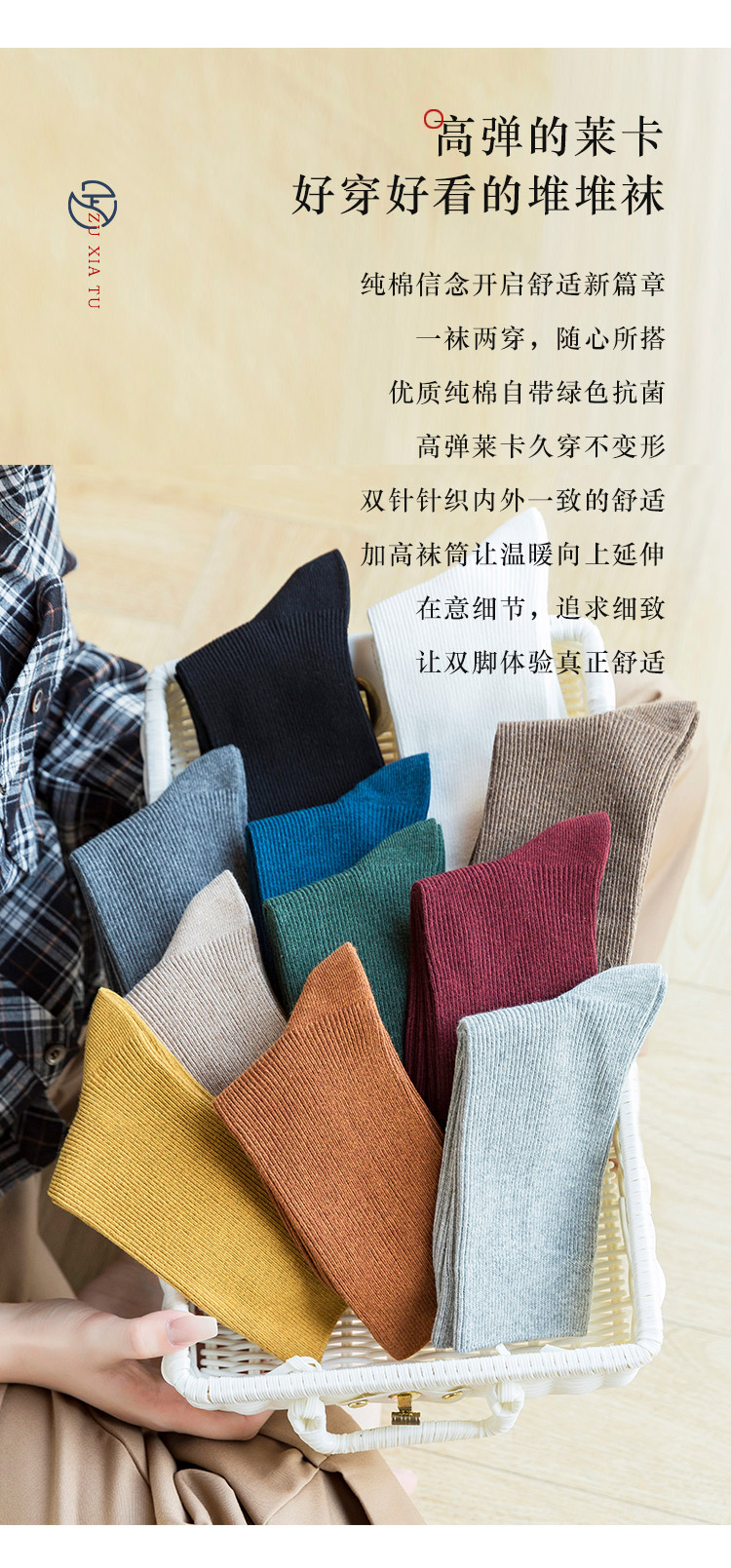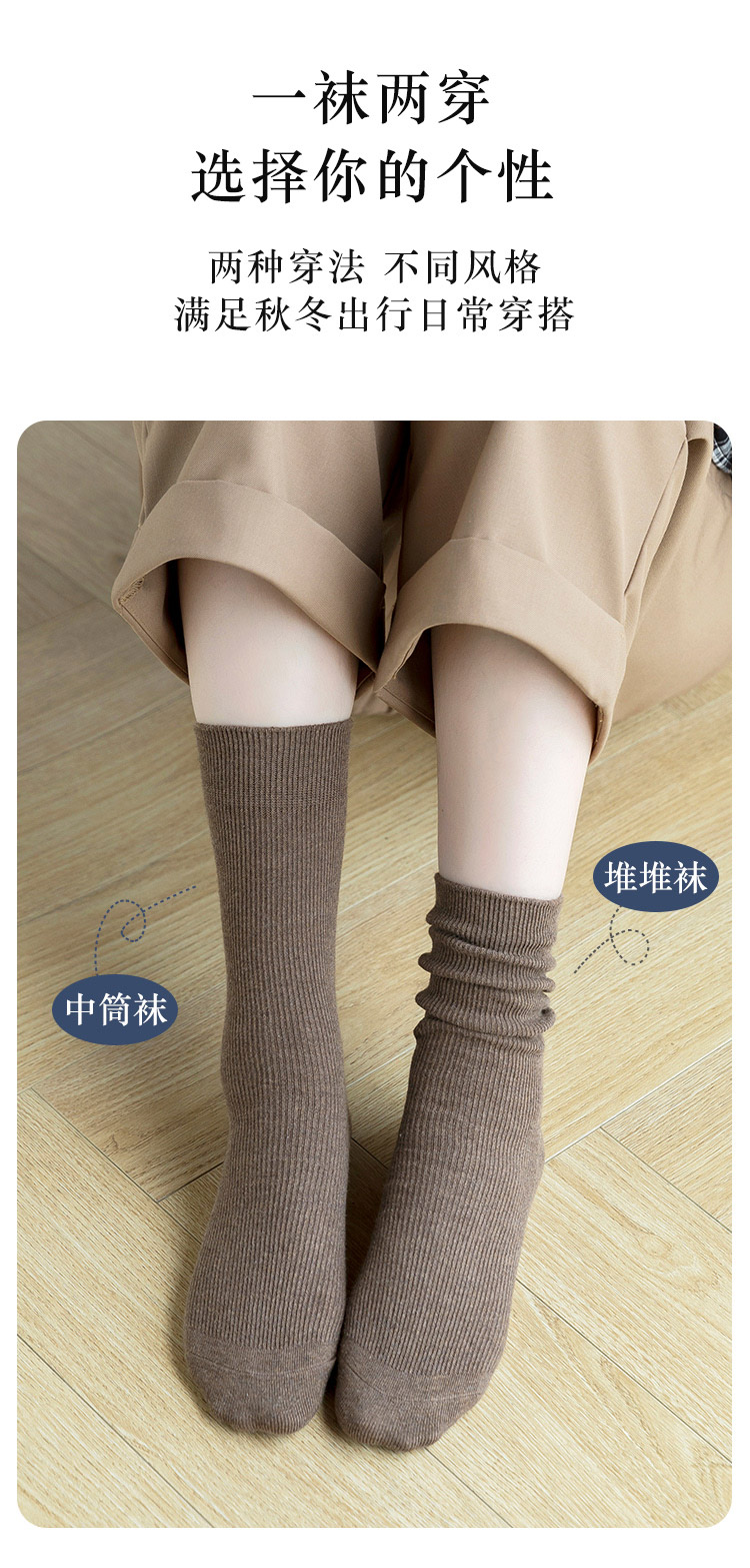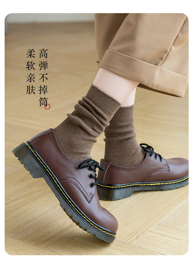 長筒堆堆襪子女黑色100%純棉春秋季條紋搭配小皮鞋潮中筒推推長襪