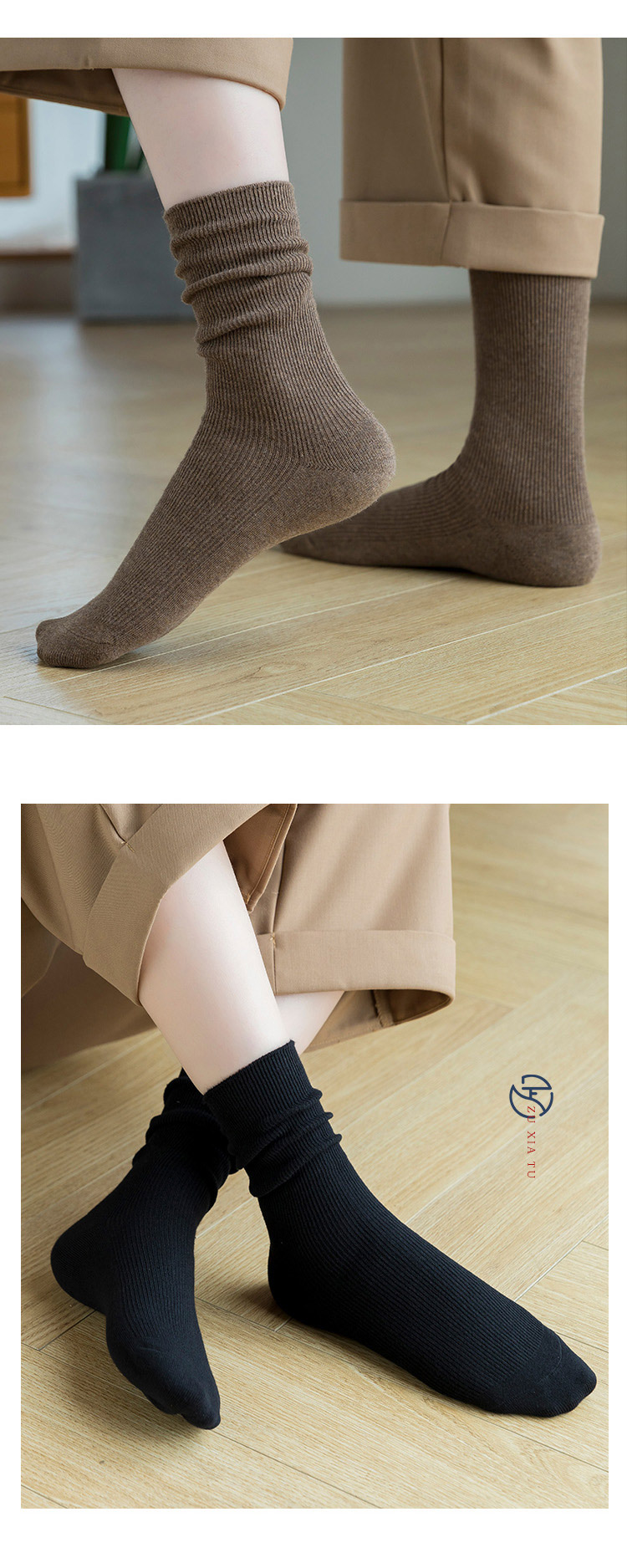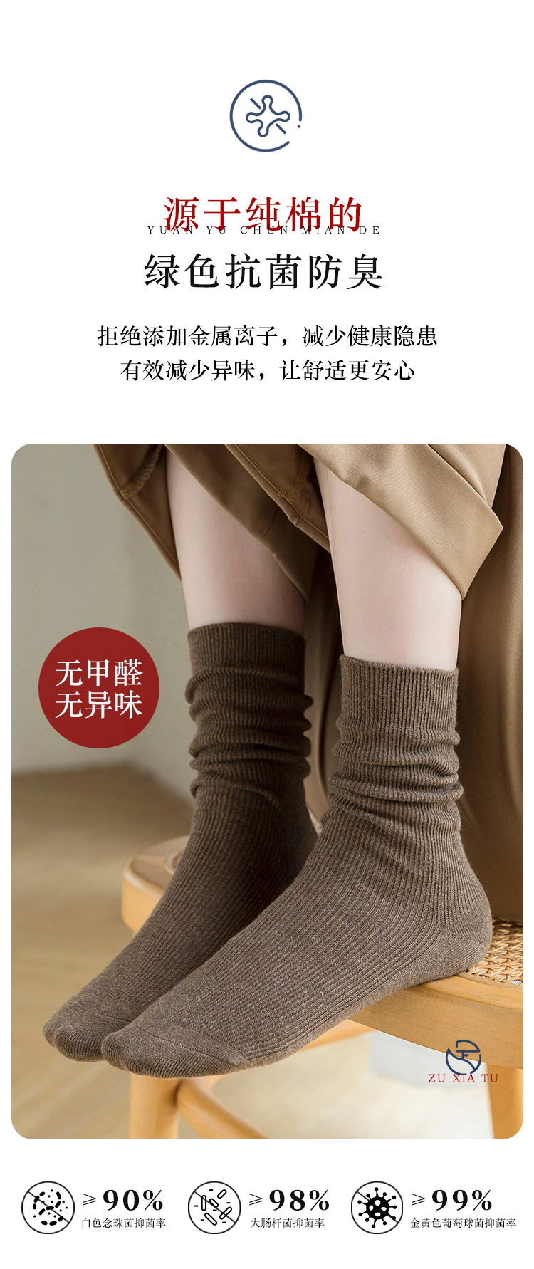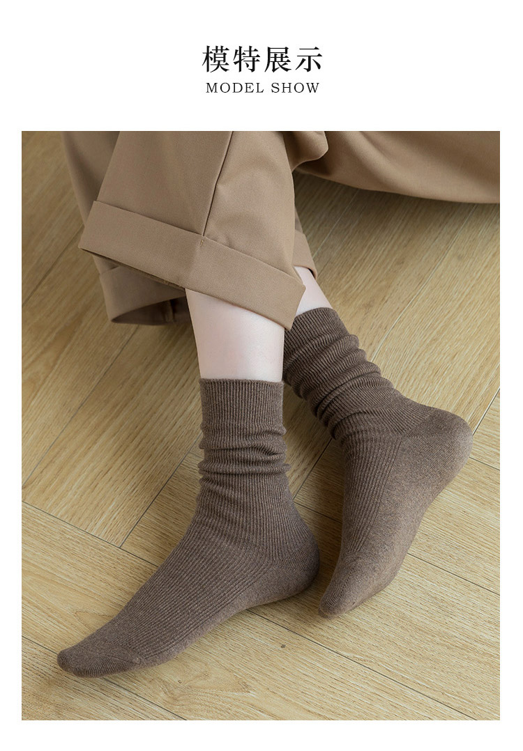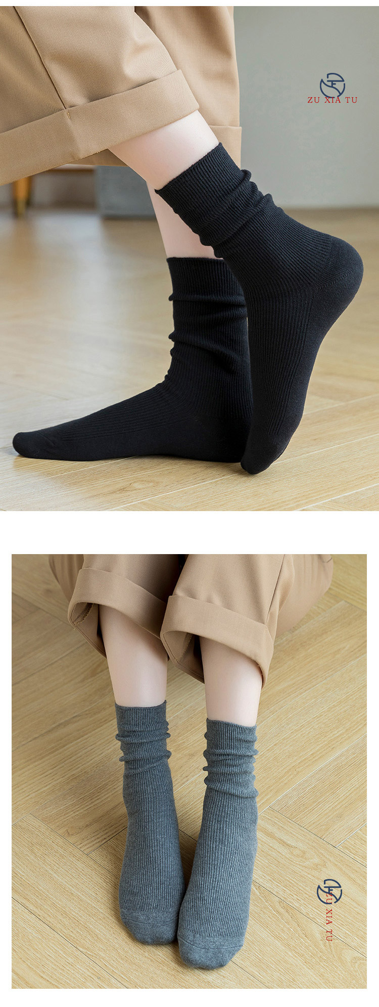 長筒堆堆襪子女黑色100%純棉春秋季條紋搭配小皮鞋潮中筒推推長襪
