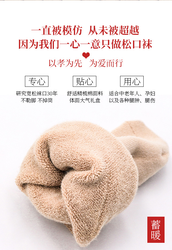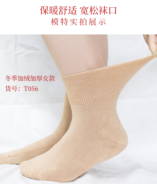 老人襪子松口襪老年純色棉寬口男女寬松中筒秋冬厚加絨款睡覺棉襪