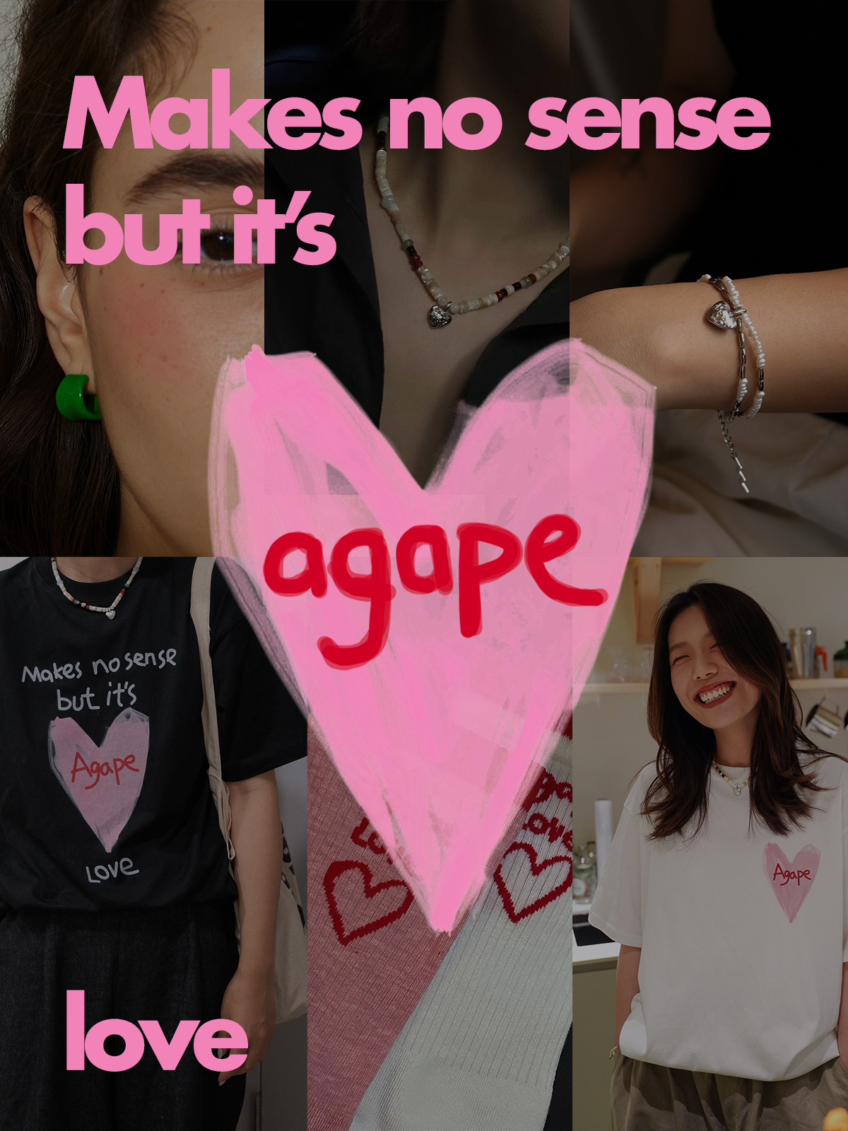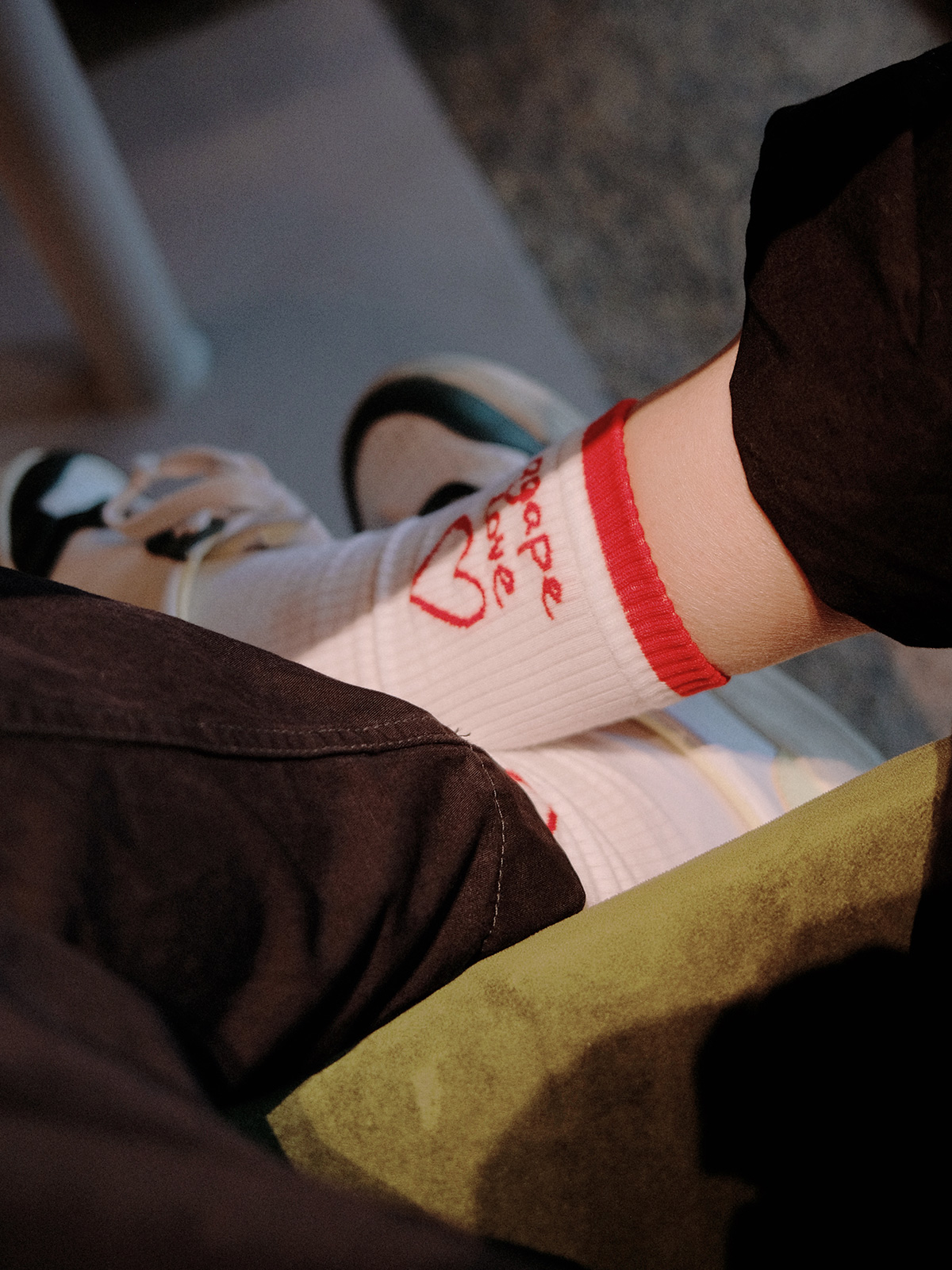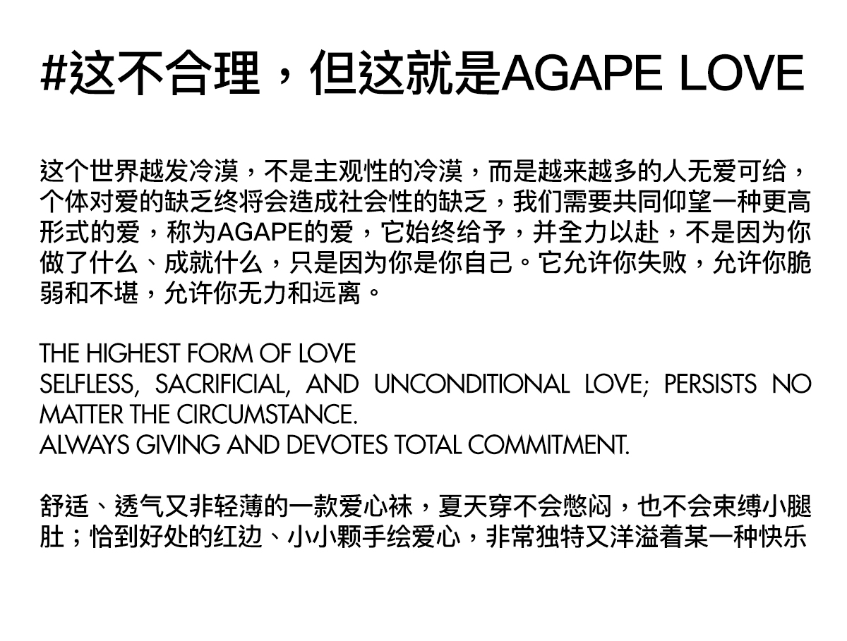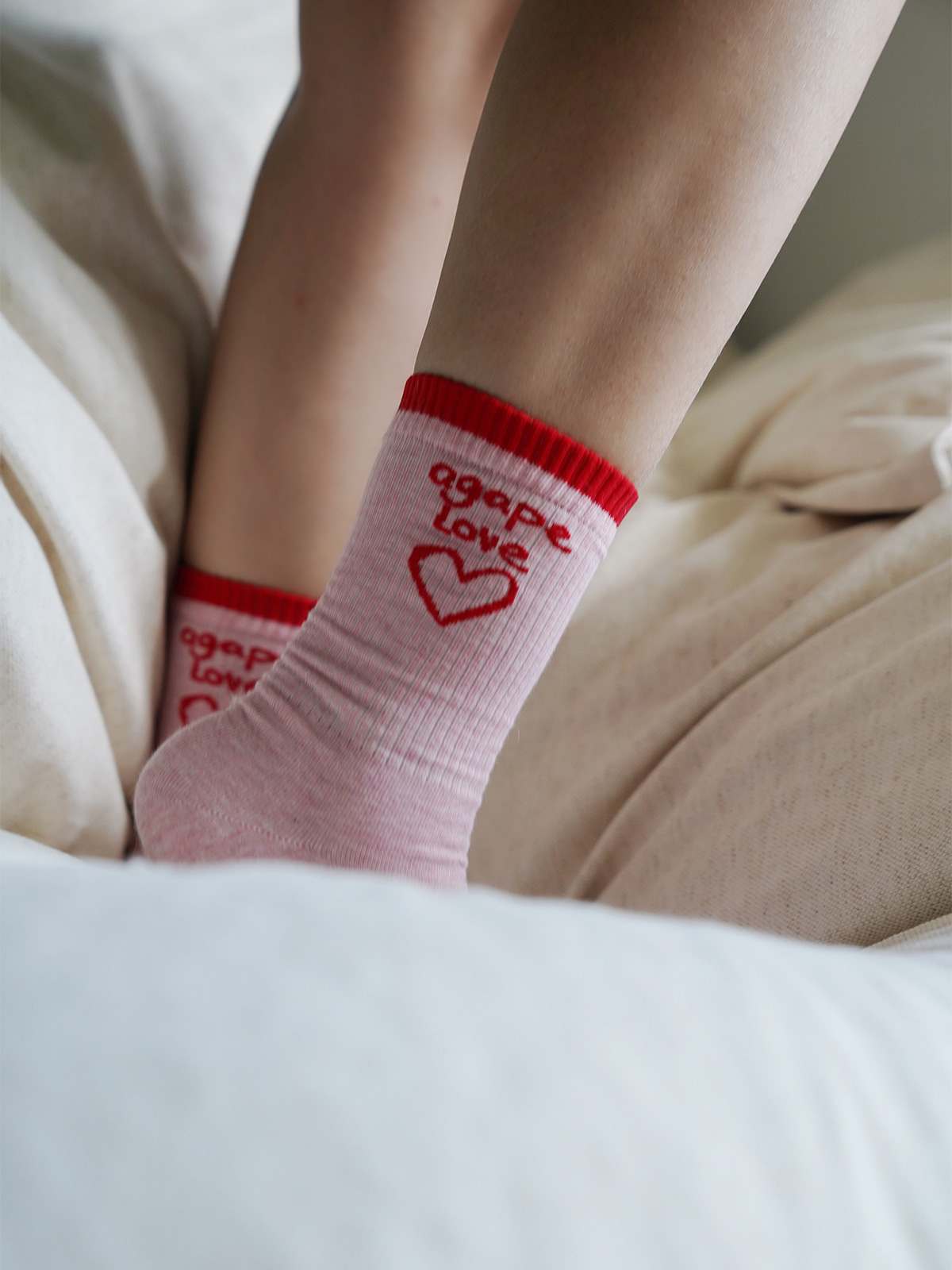 VM香草山. Agape love系列粉紅愛心刺綉中筒襪子男女同款原創設計
