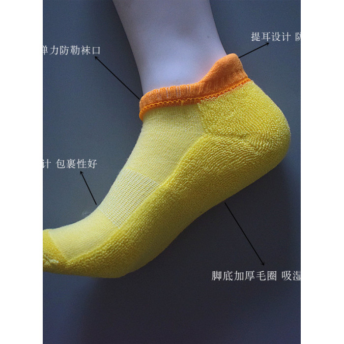 毛巾底運動短襪加厚毛圈黑白男純棉出口日本吸濕跑步船襪子女