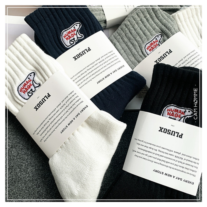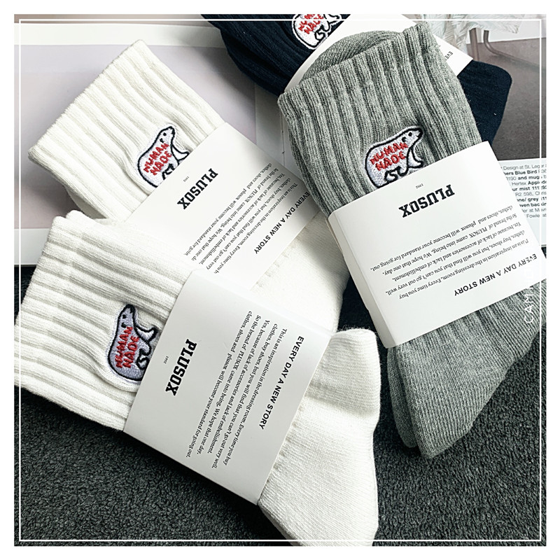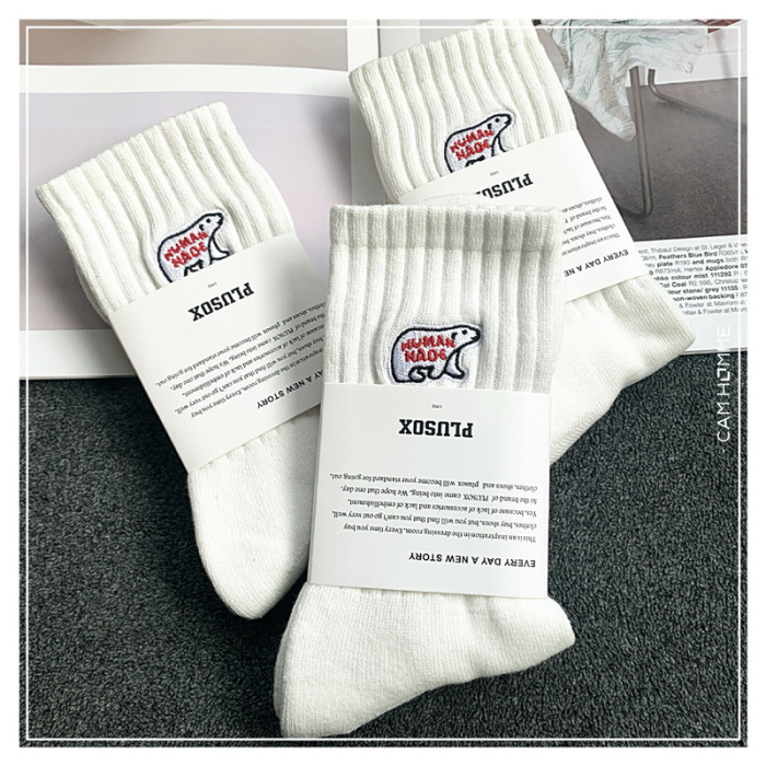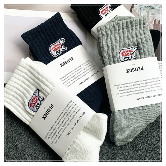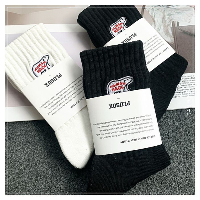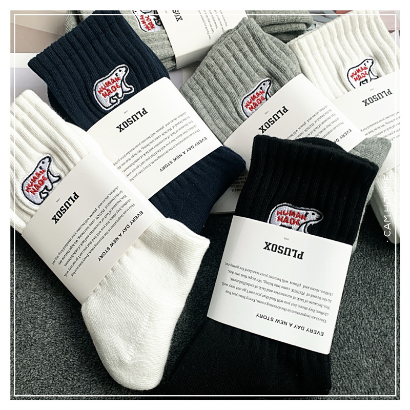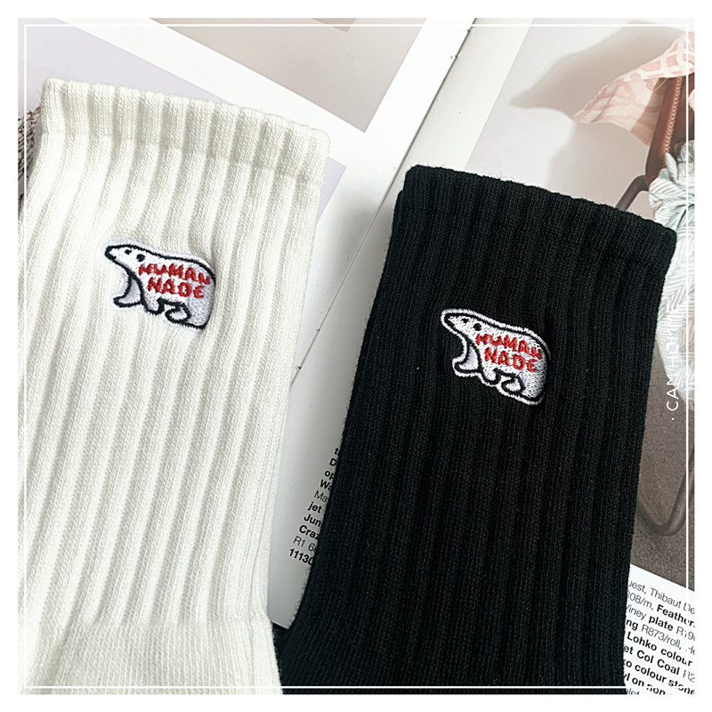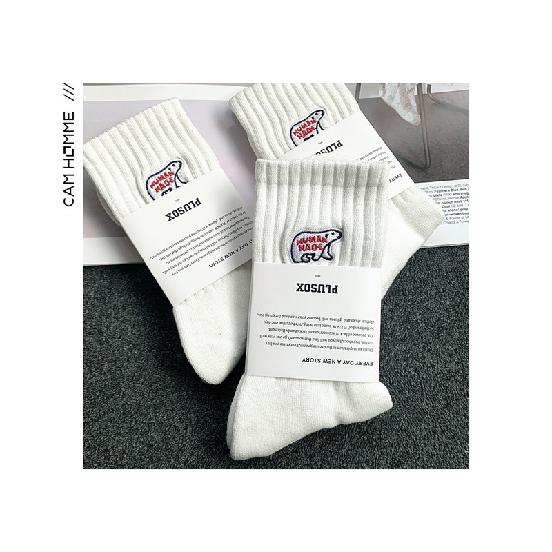 3雙餘文樂潮男中長筒襪純棉北極熊ins男女襪子加厚毛巾足球運動襪