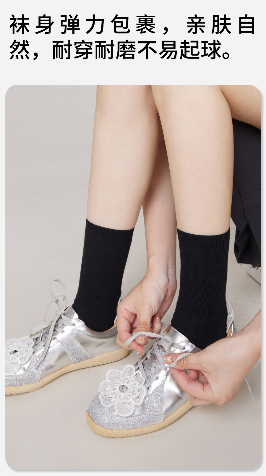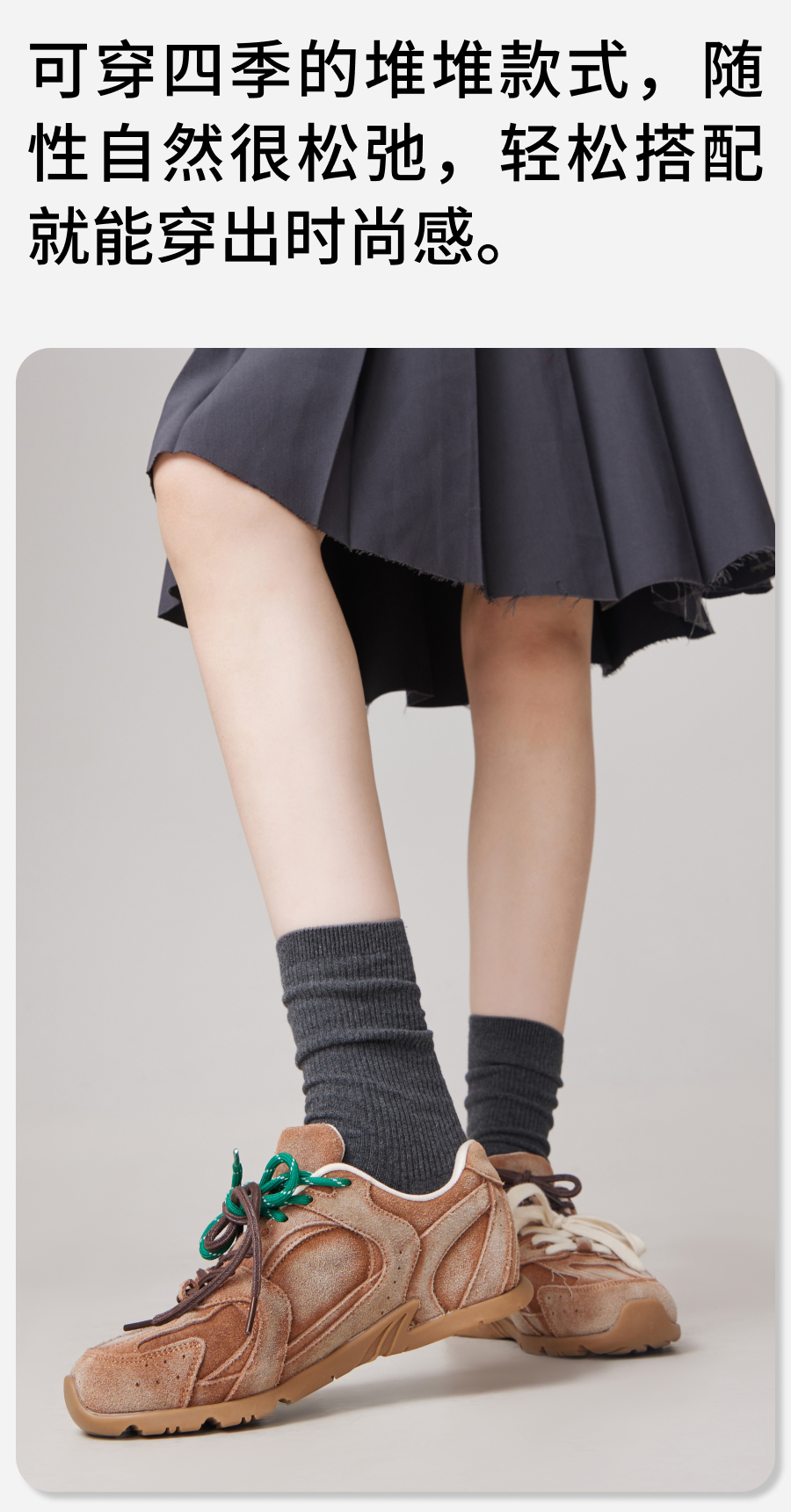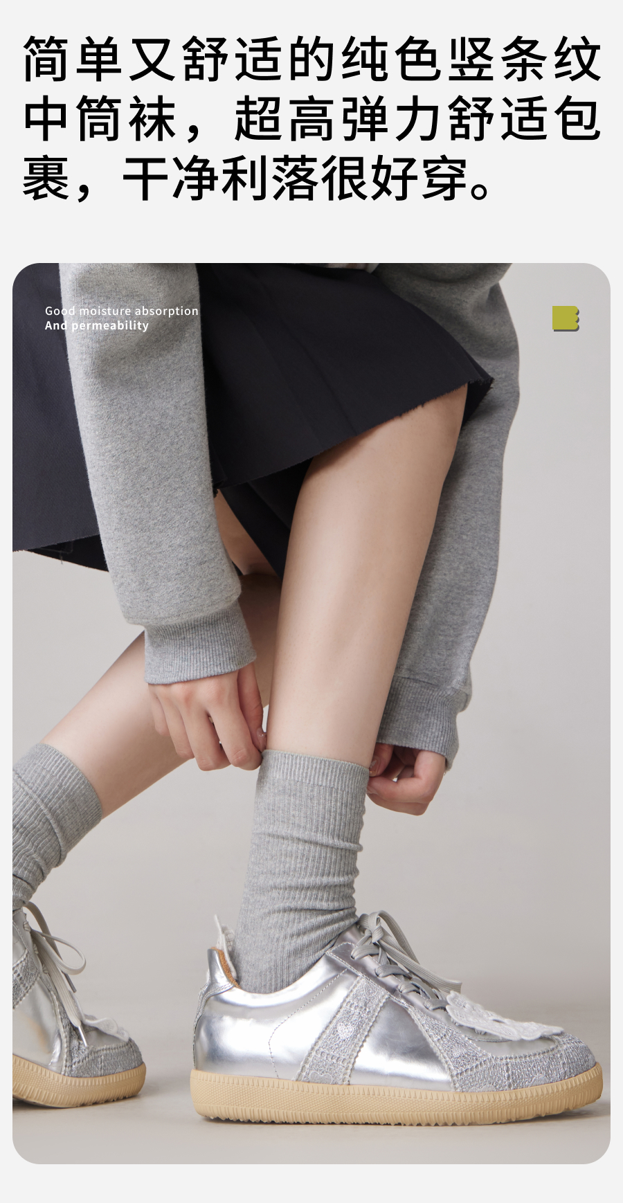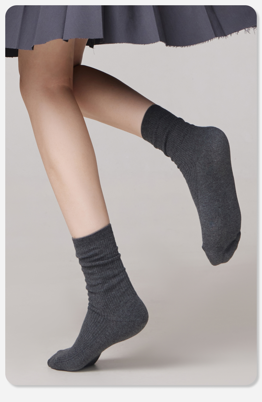 素人工作室襪子女春秋款2025新款爆款中筒襪深灰色堆堆棉襪長襪夏