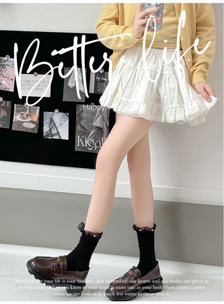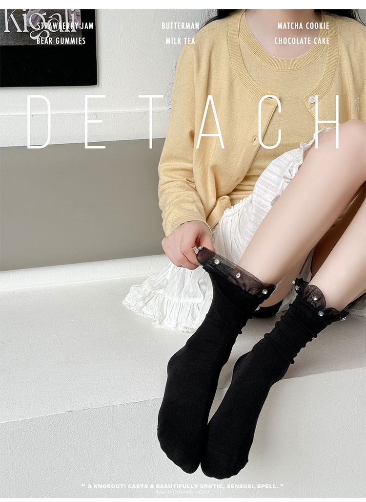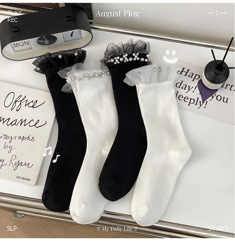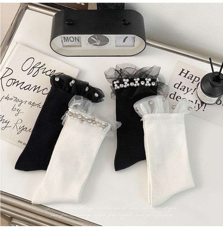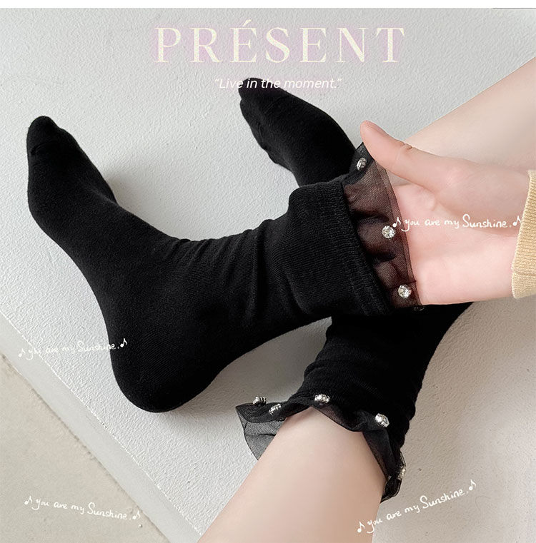 甜酷少女中筒襪網紗花邊堆堆長襪日系jk秋冬個性棉襪水鑽ins潮流