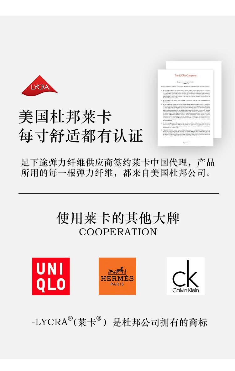 | 面料材質成分 | 棉95.1% 聚醯胺纖維(錦綸)2.6% 聚氨酯彈性纖維(氨綸)2.3% |