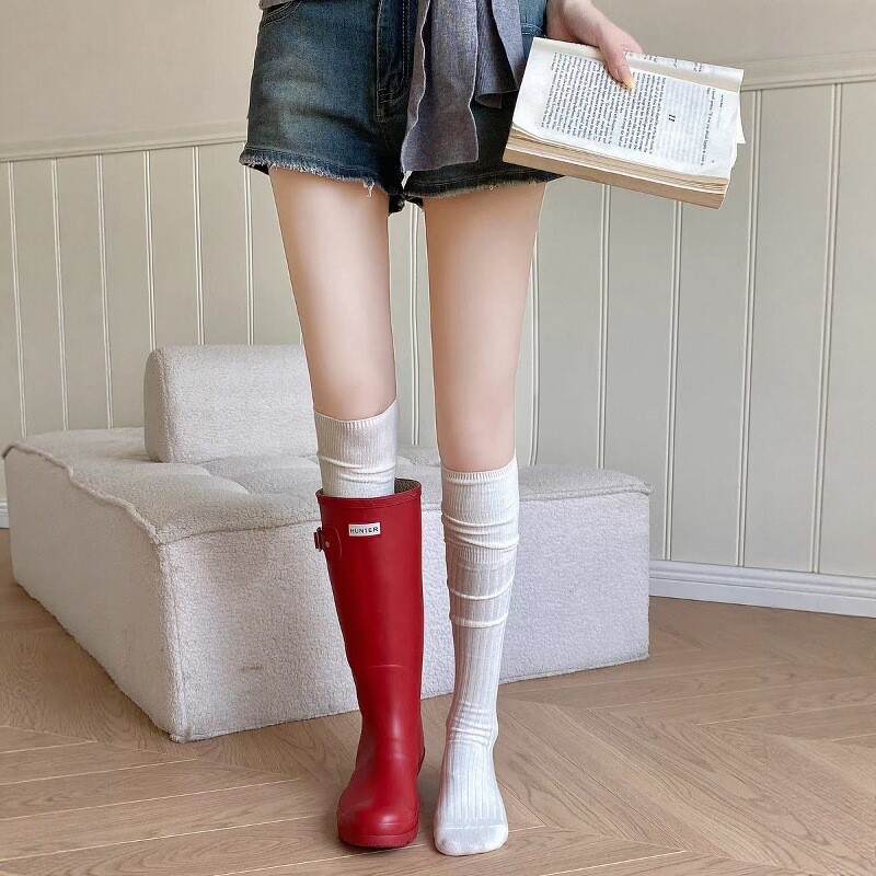 又奶又欲~誰能拒絕~竪紋微壓顯瘦!夏季薄款小腿襪堆堆襪配長靴~
