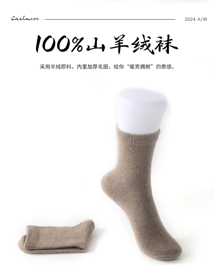 100山羊絨襪  中筒保暖吸汗純色透氣 羊絨襪男女同款
