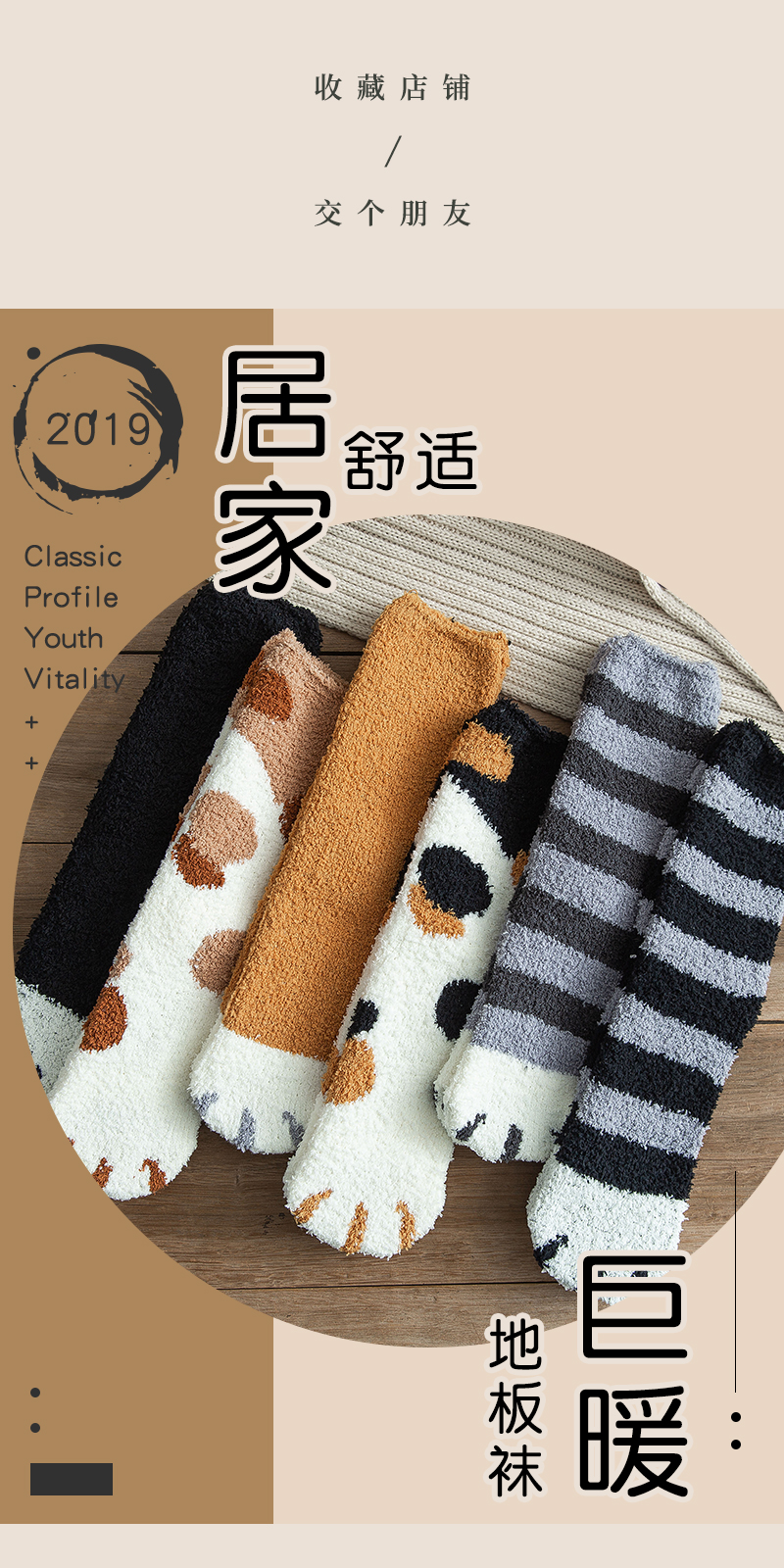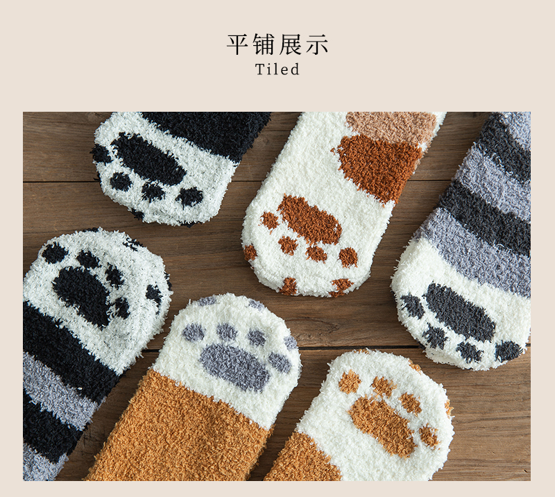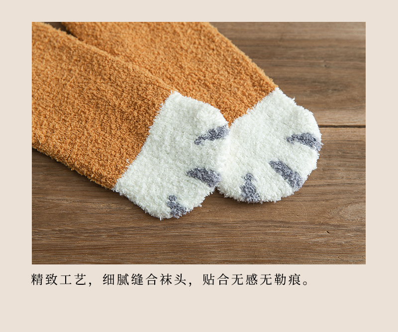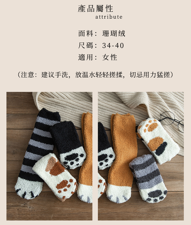 貓爪襪情侶珊瑚絨襪子女秋冬睡眠加厚加絨保暖毛絨家居男士地板襪