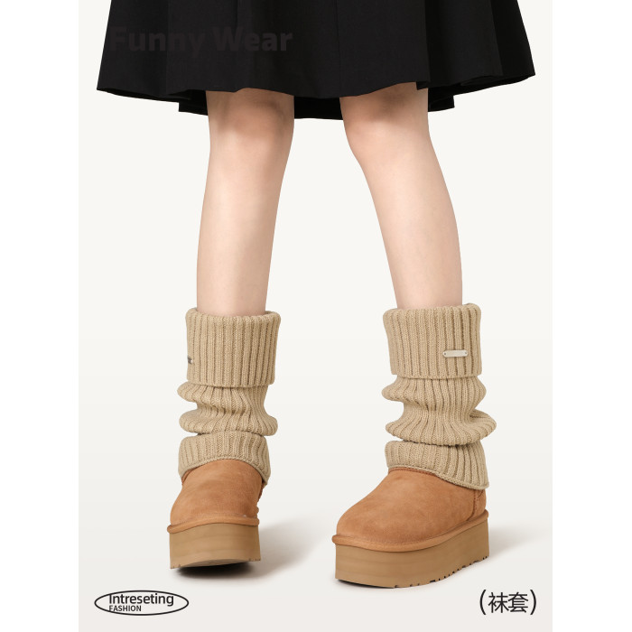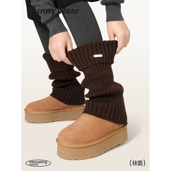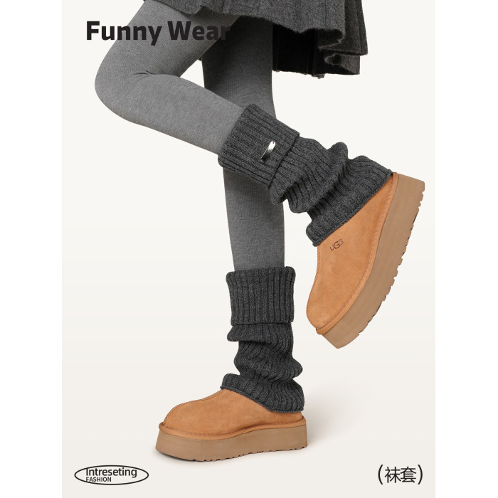 襪套堆堆襪女春秋季格雷系灰色腿套金屬標亞比y2k辣妹雪地靴襪子