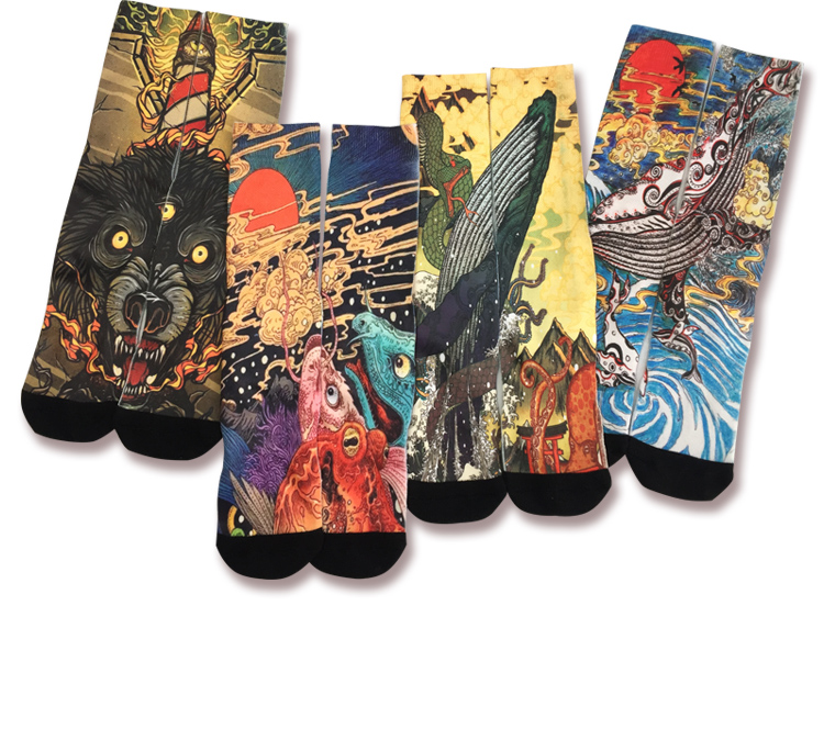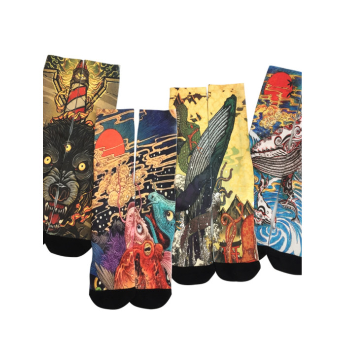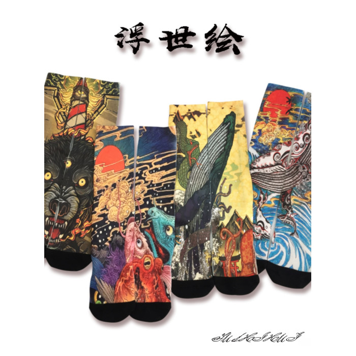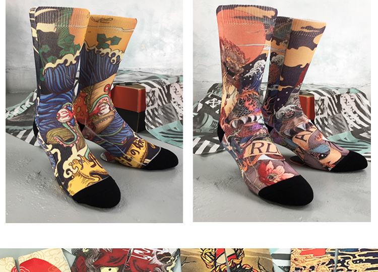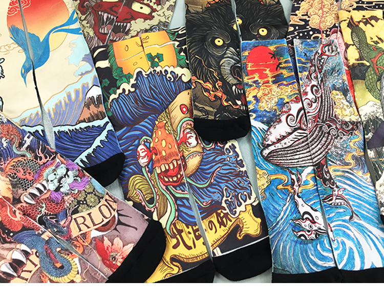 印花襪新品日系浮世繪創意圖案潮流男女情侶潮襪毛巾底運動防臭襪