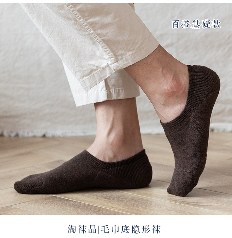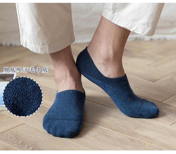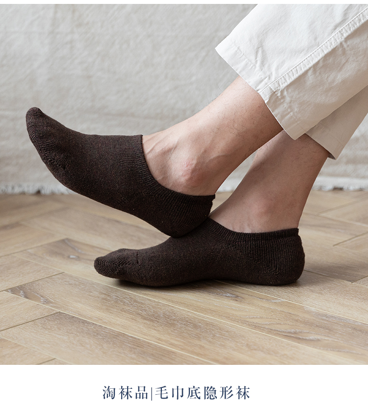 5雙裝男士船襪加厚毛巾底吸汗低幫短襪矽膠防滑隱形淺口襪子春秋
