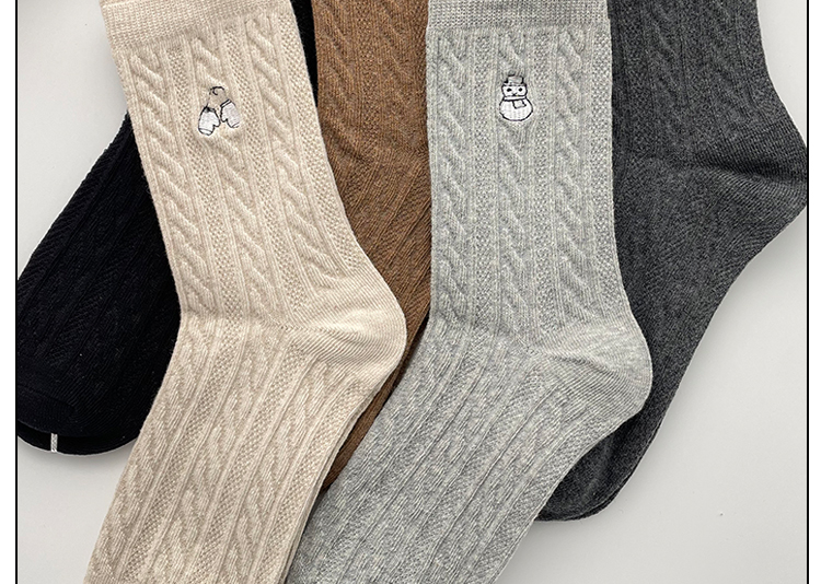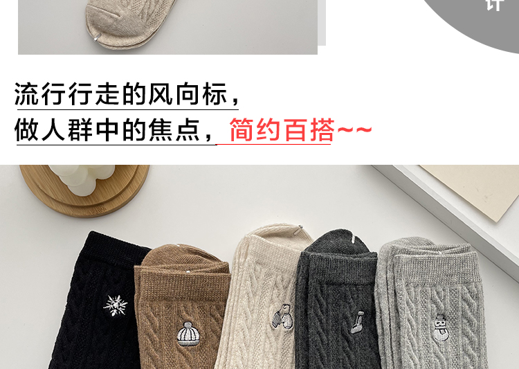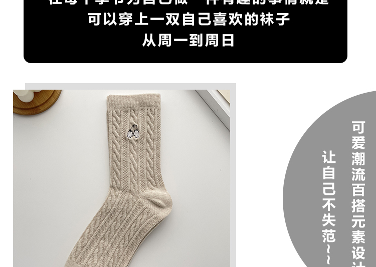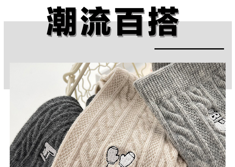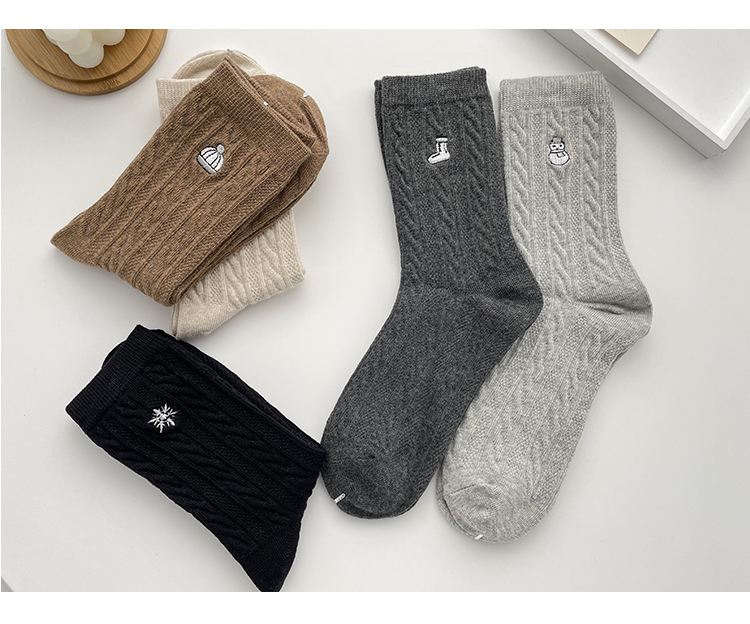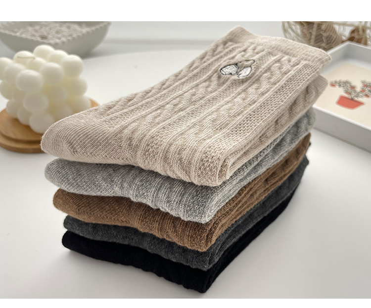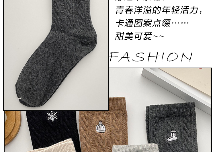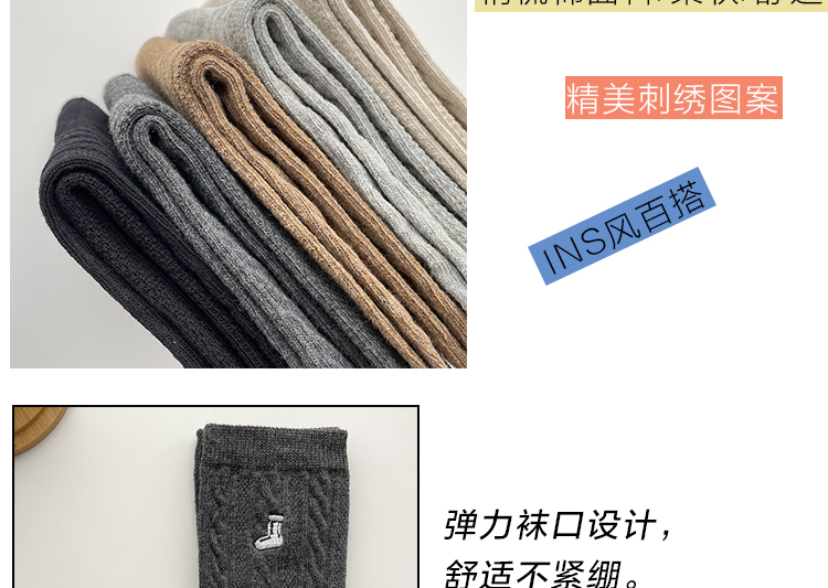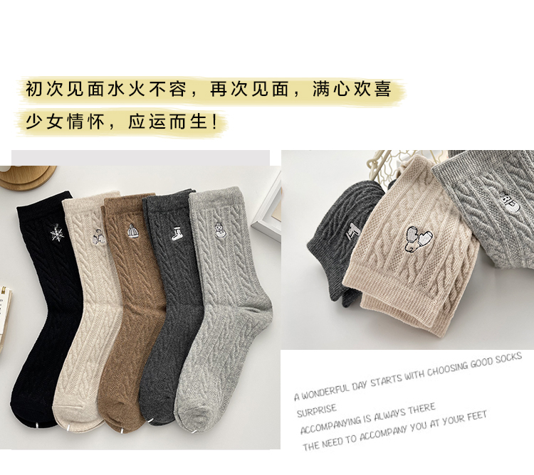 日系襪子女ins潮秋冬款棉襪刺綉中筒襪可愛春秋麻花紋長襪厚百搭