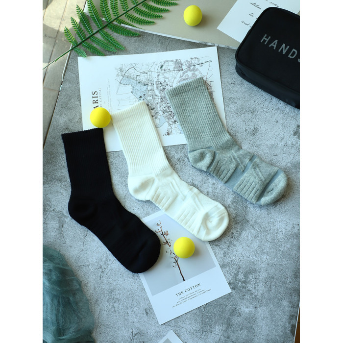 3雙裝巖也男士中筒襪純棉運動襪子男透氣防臭中幫毛圈厚unmadsier
