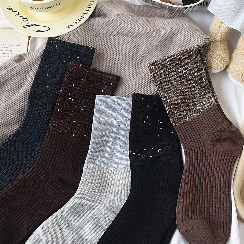 襪子女秋冬中筒襪滿天星亮片百搭洋氣個性中筒純棉外穿堆堆飾品襪