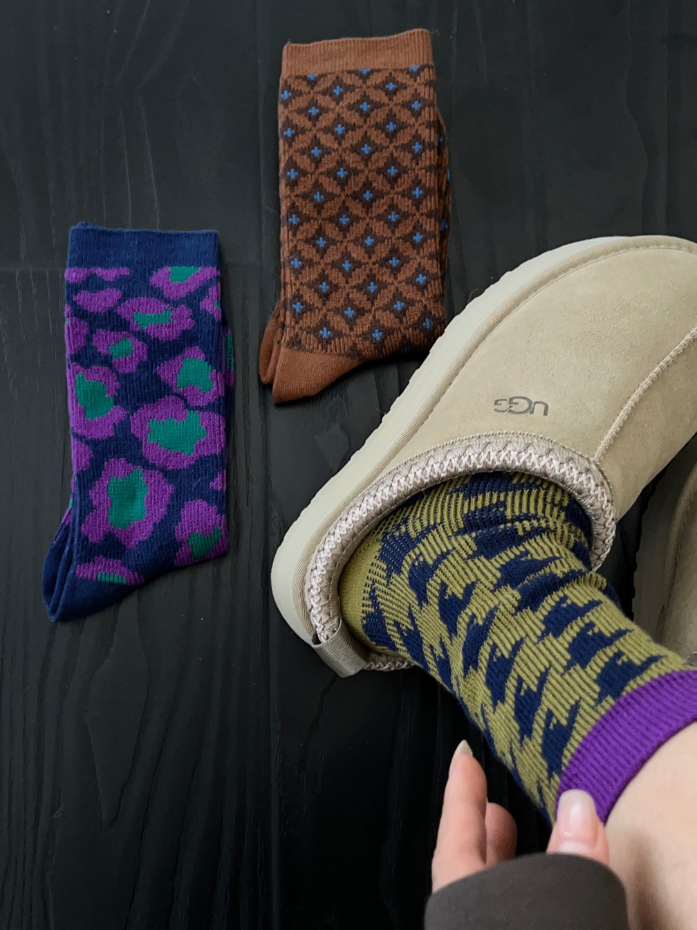 2025秋冬新款千鳥格撞色個性堆堆襪粗針加厚復古中筒女襪吸汗透氣