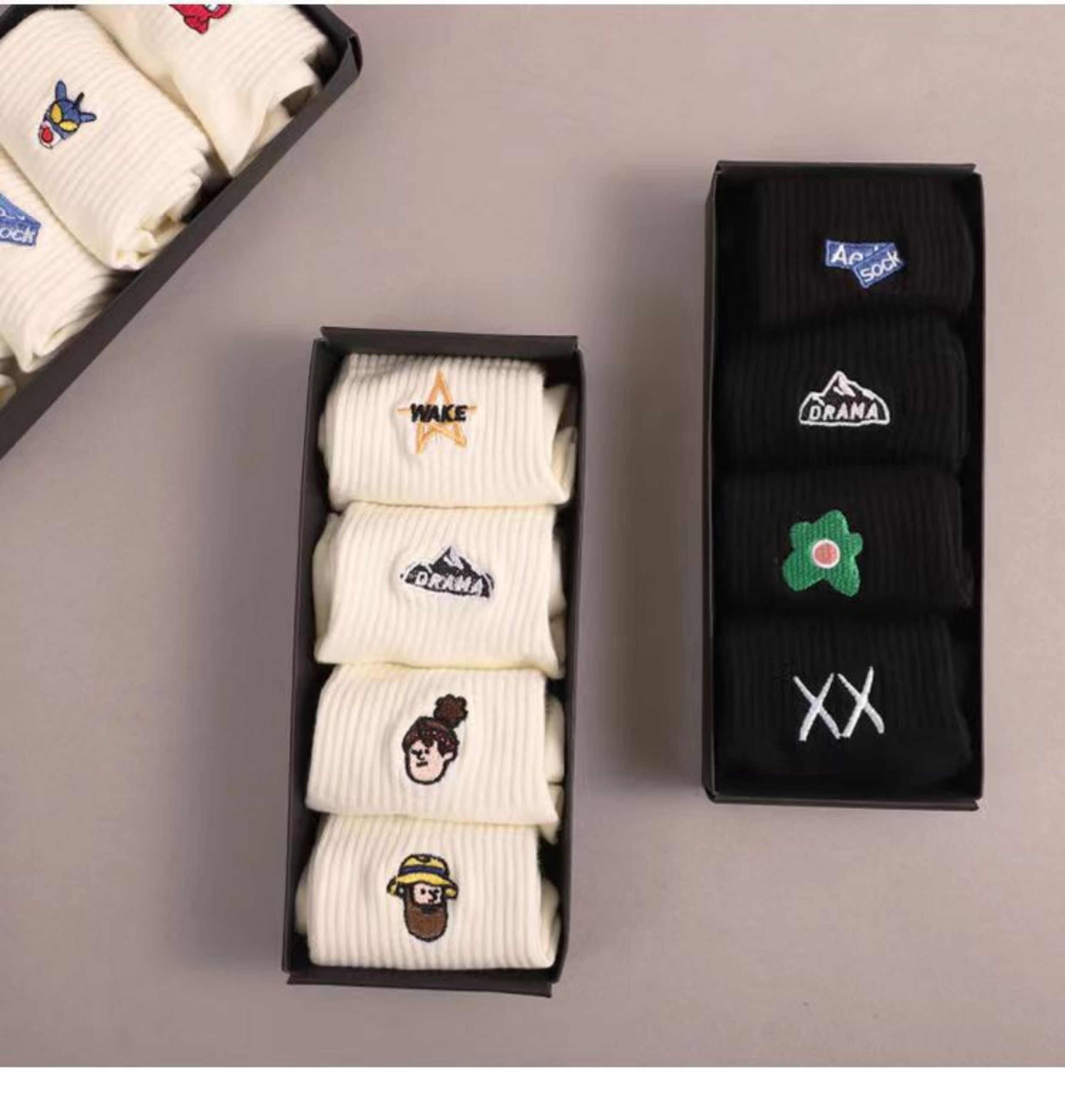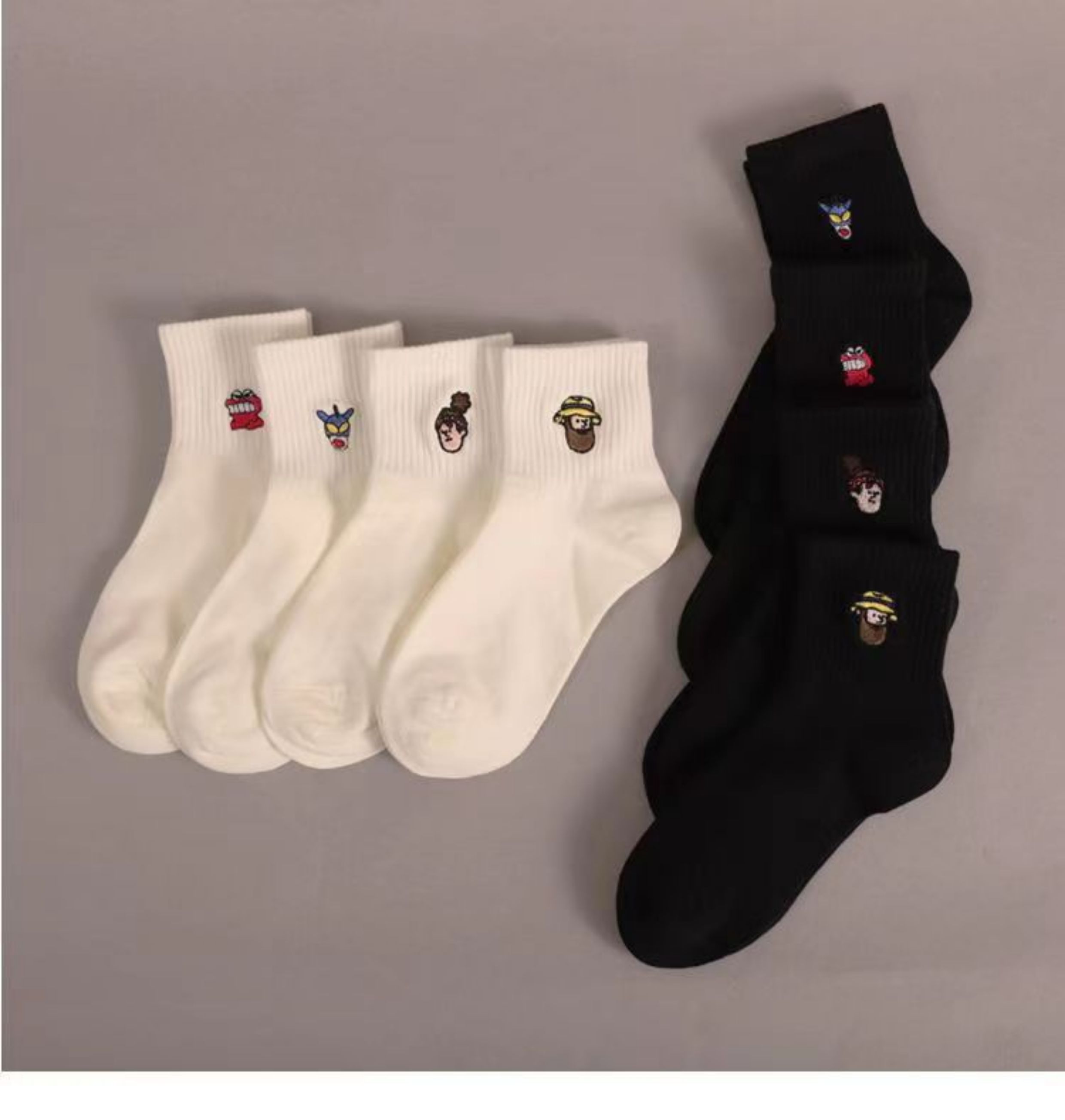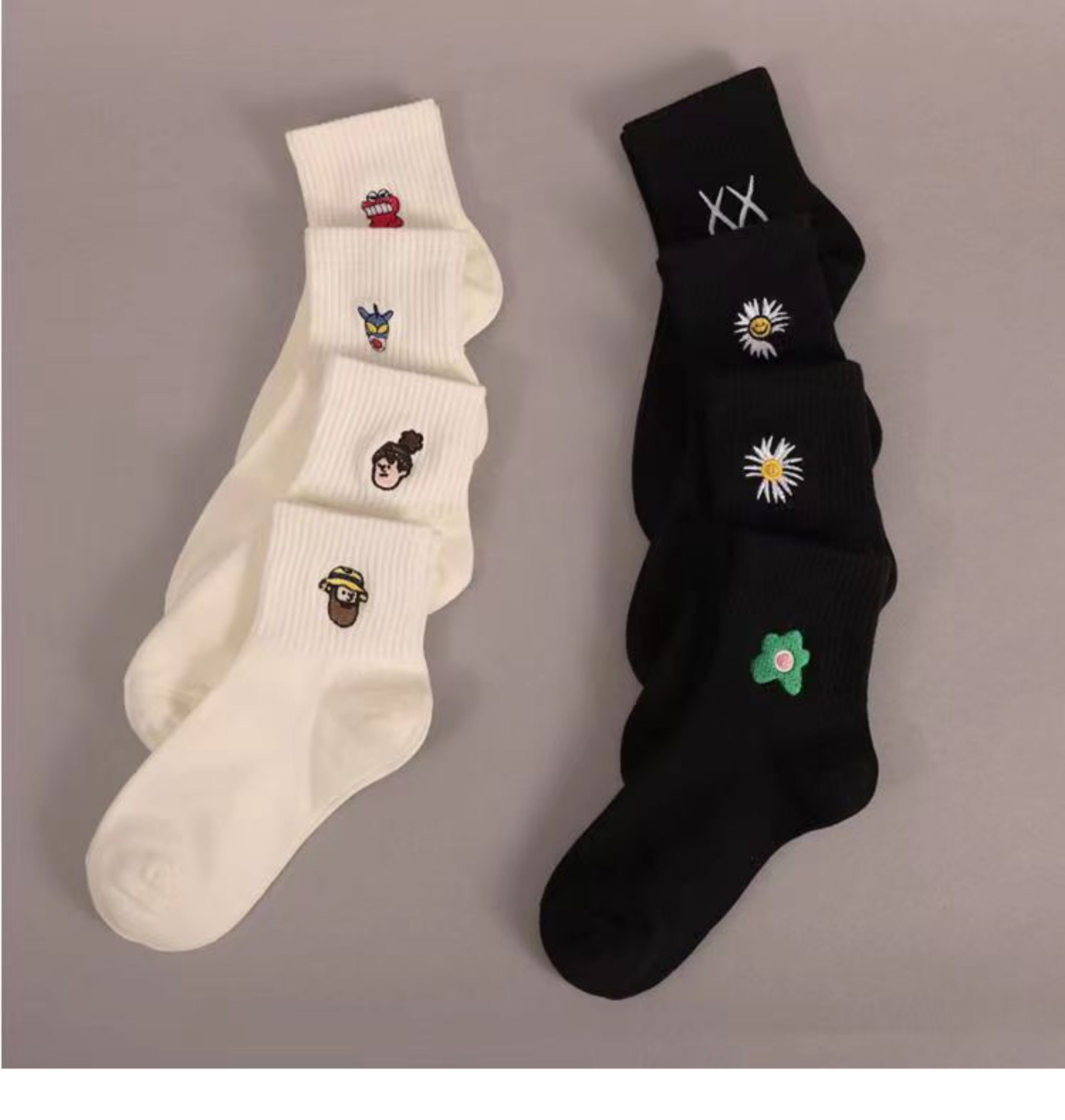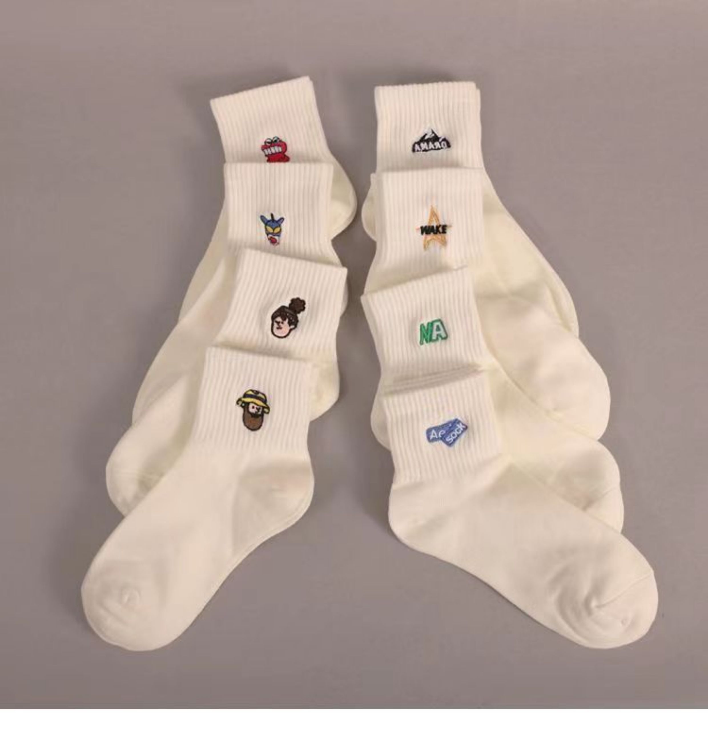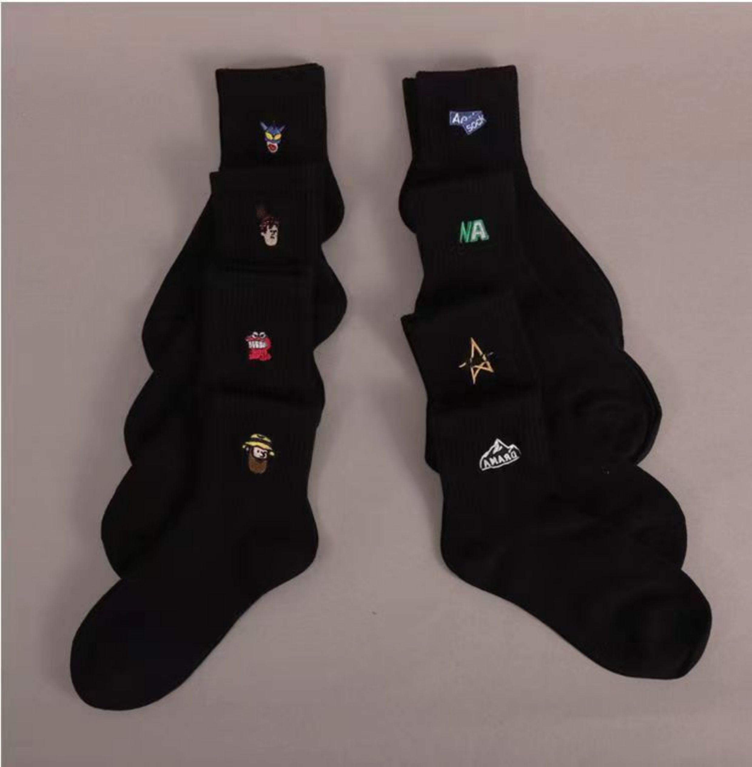 春秋情侶襪子刺綉韓版ins潮男女吸汗防臭中筒運動籃球長襪黑短襪